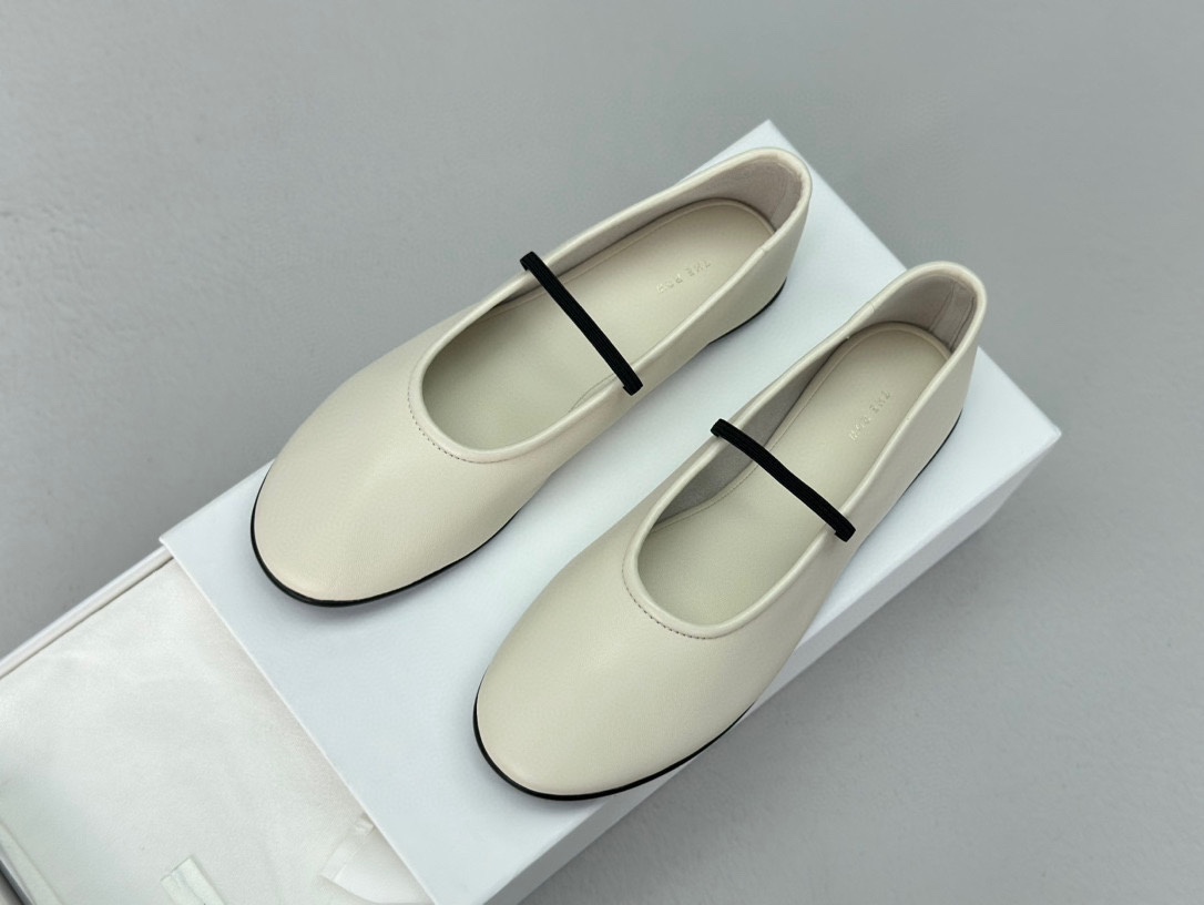 Минималистичные балетки в духе Mary‑Jane с лаконичным дизайном и контрастной эластичной пуговичной лентой. Изысканная, но сдержанная модель для повседневной и офисной капсулы — сочетание чистых линий, мягкой кожи и аккуратной плоской подошвы.