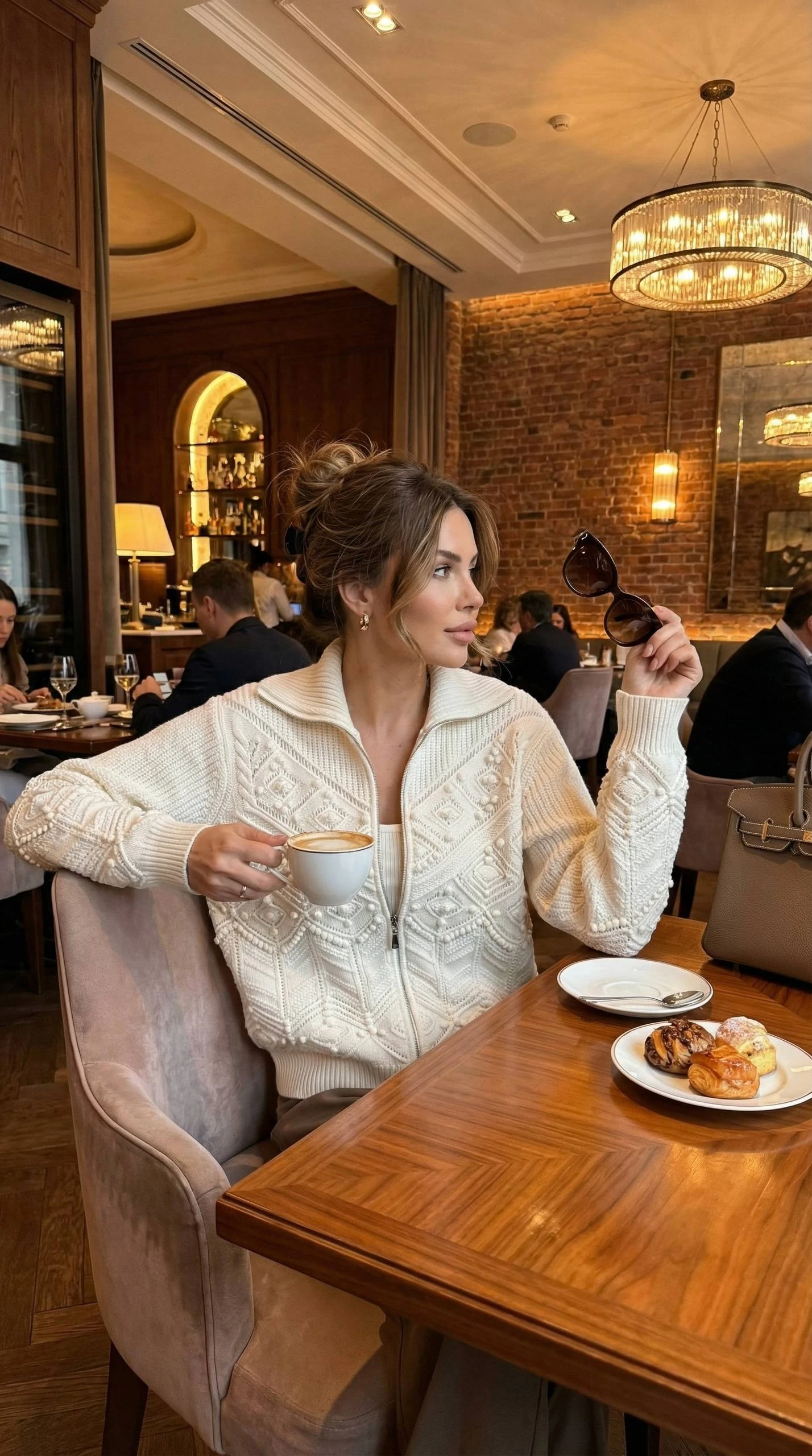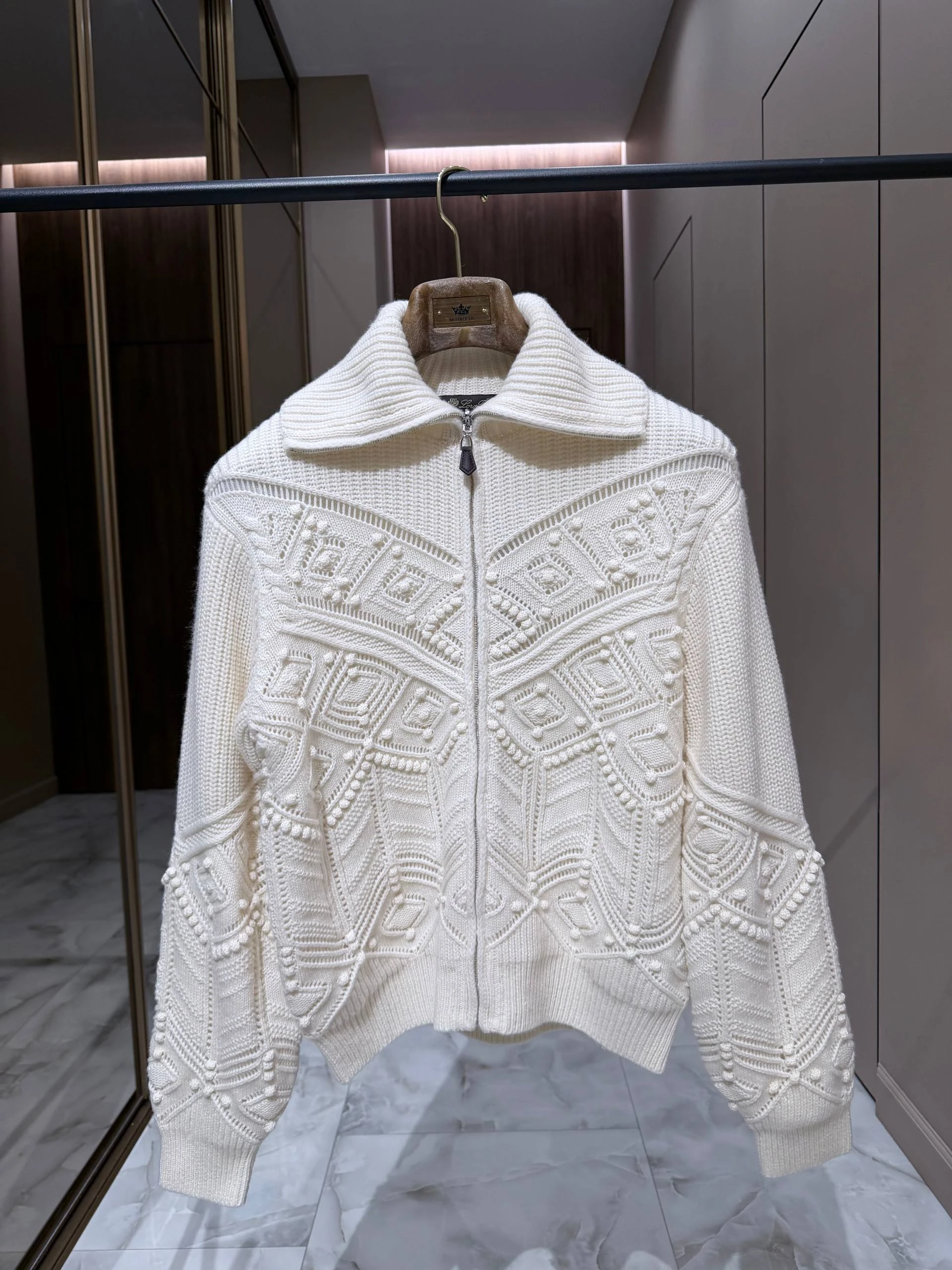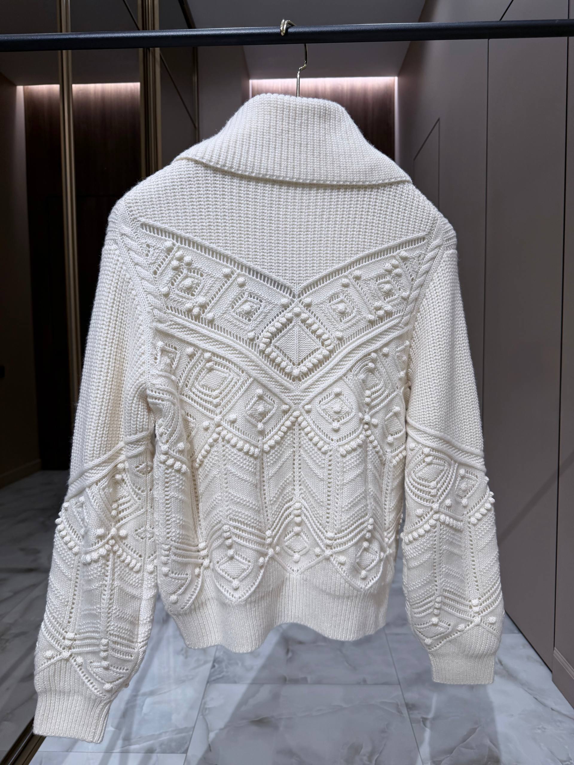 Обратите внимание на тонкие детали: возможно, это будут небольшие украшения, такие как вышивка или логотип бренда, которые добавляют индивидуальности и подчеркивают статус изделия. Манжеты и нижняя часть джемпера выполнены в рубчик, что способствует удобной посадке и сохранению формы.