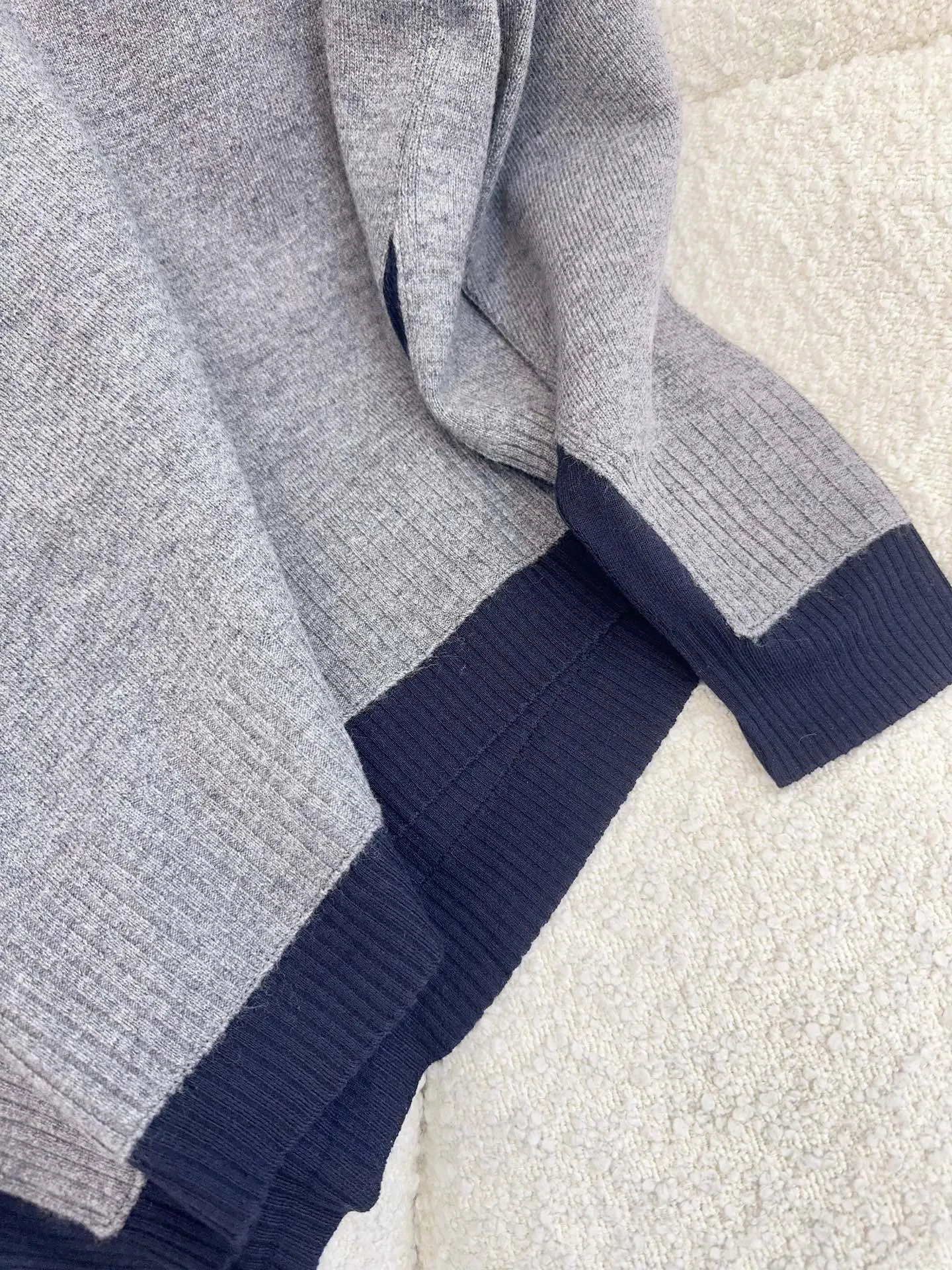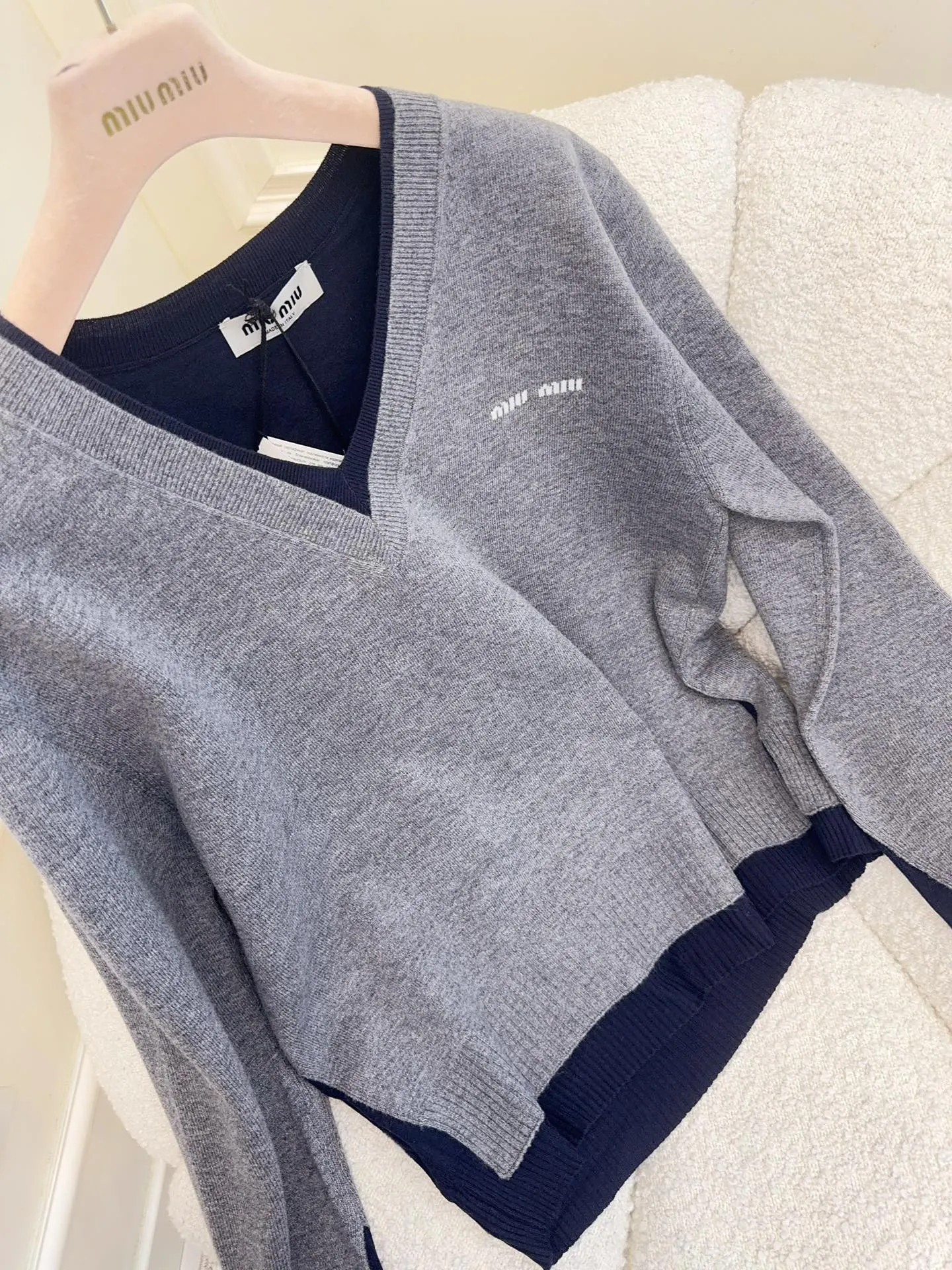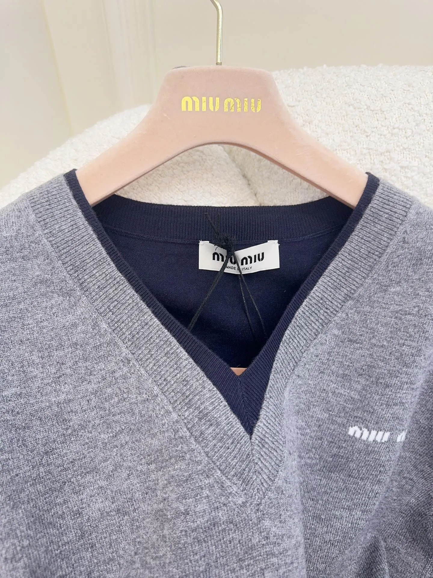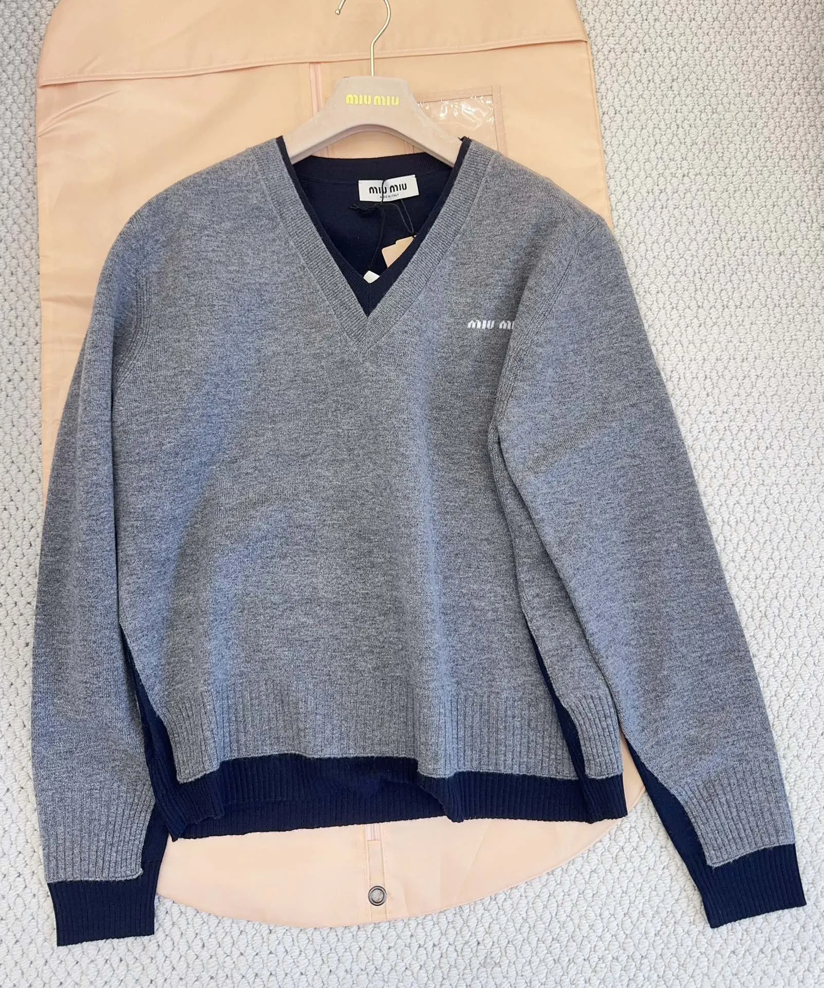 Этот женский пуловер от MIU MIU – воплощение элегантности и изысканности. Его цветная двухслойная конструкция создает уникальный образ, подчеркивая тонкие линии шеи с помощью V-образного выреза. Стиль свитера напоминает классический британский образ, а сочетание тёмно-синего и серого придает ему вид роскоши.