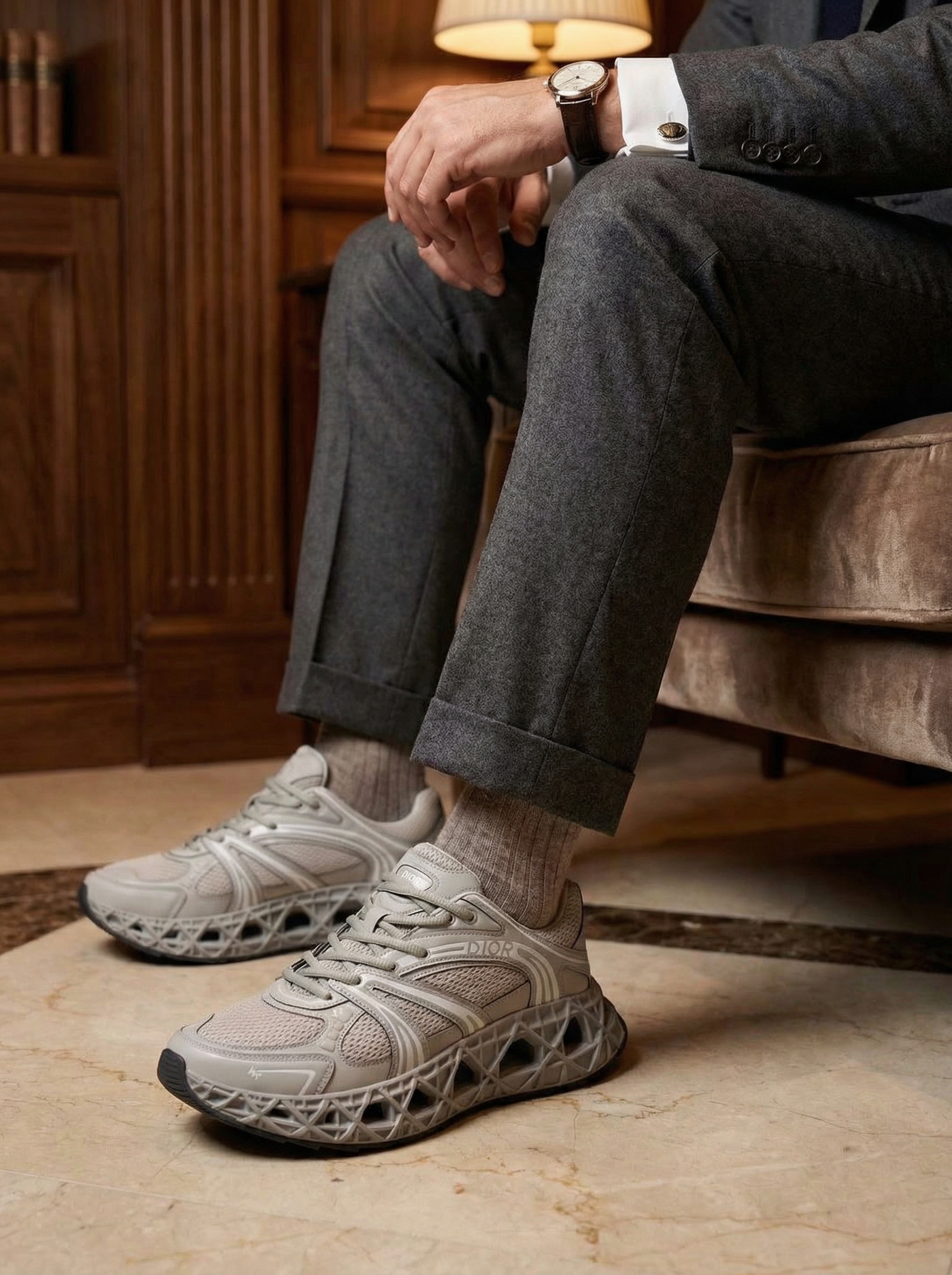 • Брендинговые акценты: аккуратные тиснения/нашивки с надписью DIOR на носке, боковой панели и язычке.