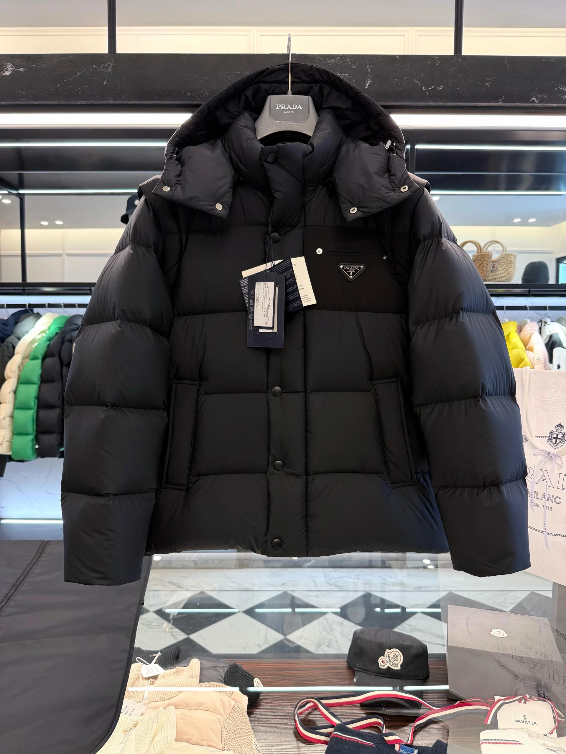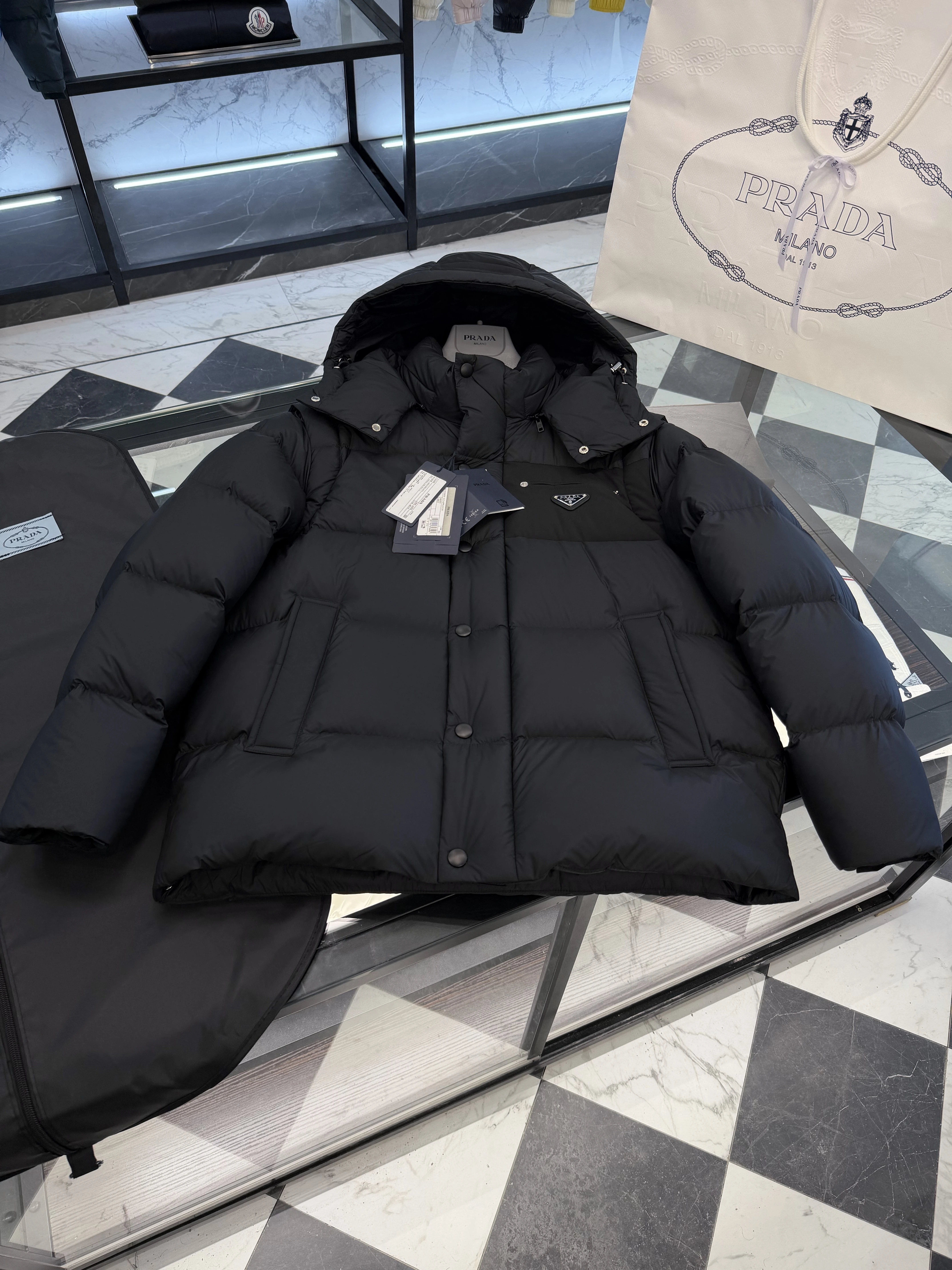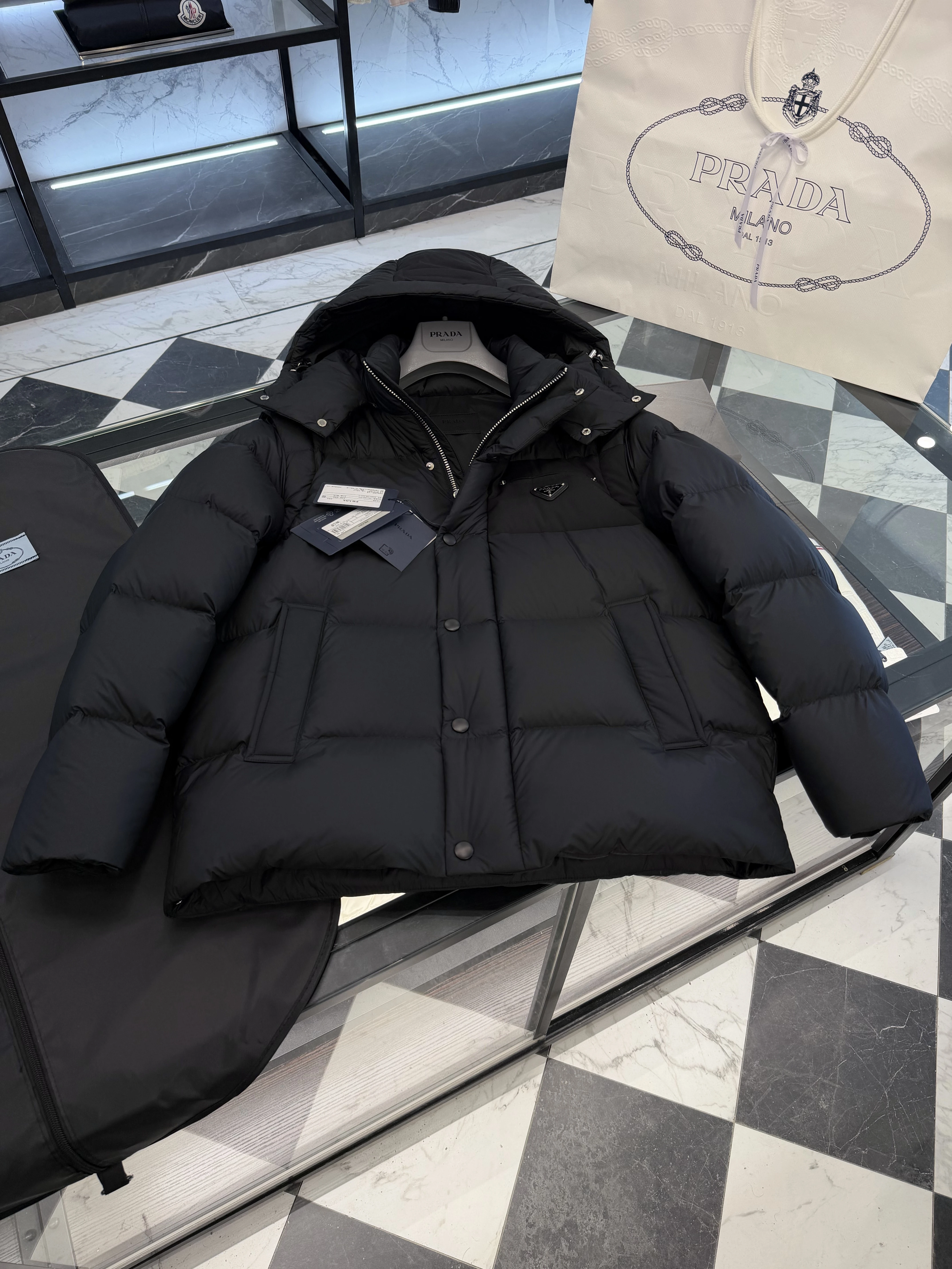 Стильная и тёплая мужская пуховая куртка PRADA в лаконичном чёрном оттенке. Современный «boxy» силуэт с объёмной стёганой фактурой делает модель практичной и актуальной для холодного сезона. Идеальна для городского образа — сочетает в себе функциональность и фирменную элегантность.
