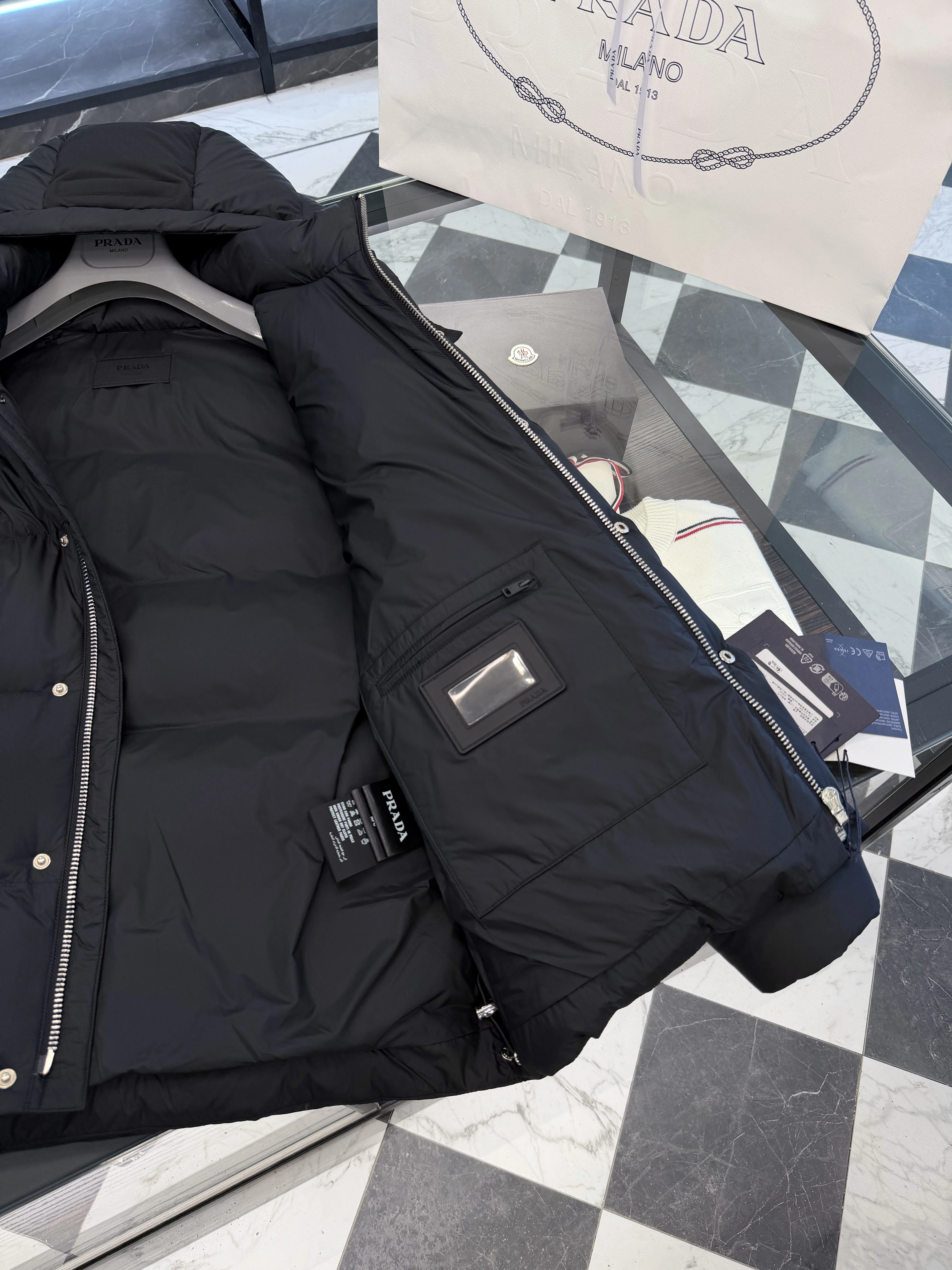 Куртка в фирменной брендовой коробке, с чехлом для хранения и вешалкой. Перед покупкой вы можете запросить видео у нашего менеджера, для этого свяжитесь с нами в мессенджере - контакты указаны на сайте.