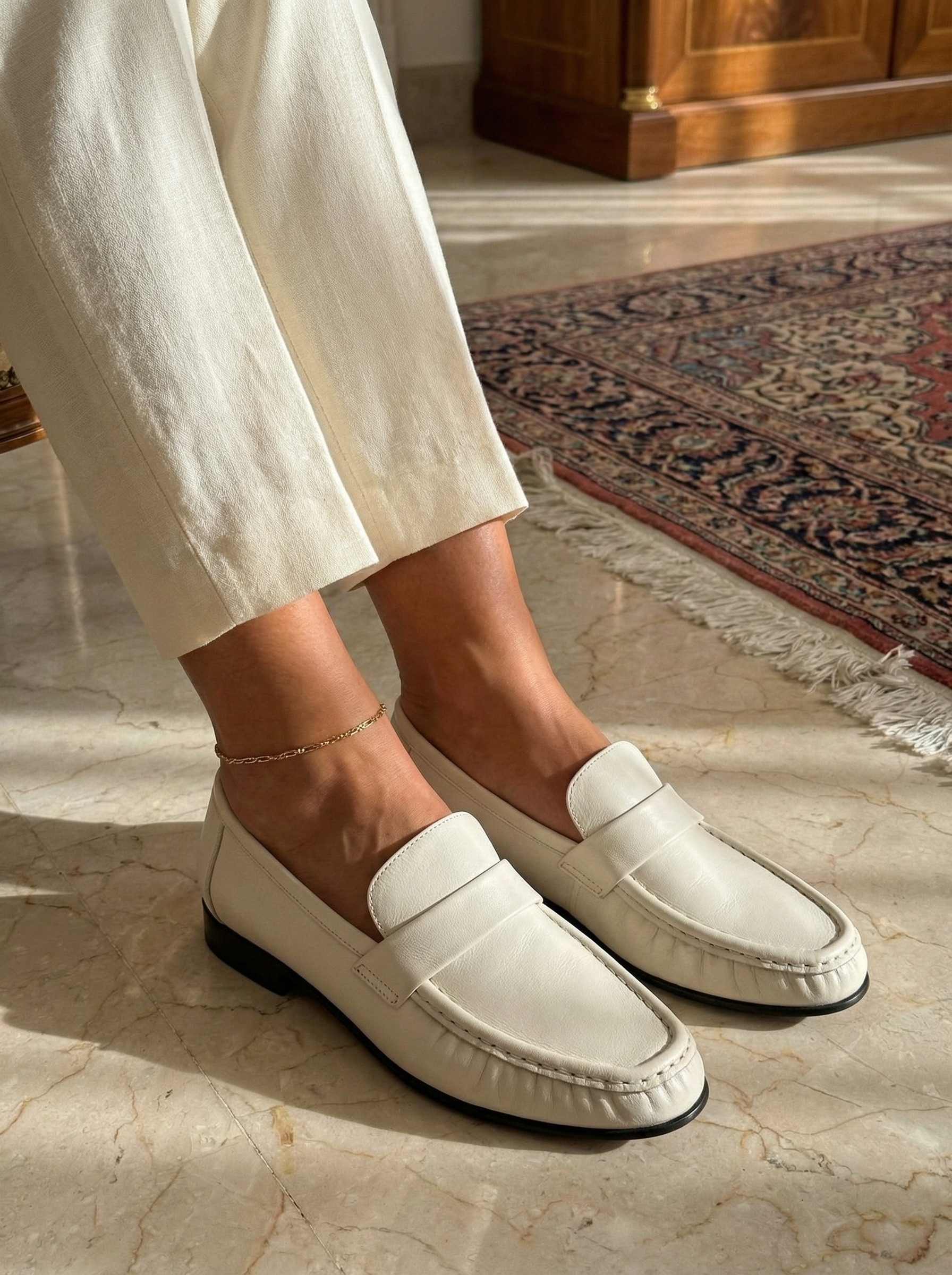 Женские лоферы THE ROW — воплощение современной минималистичной эстетики и безупречного качества исполнения. Модель выполнена из гладкой натуральной кожи премиального качества с деликатной матовой текстурой, которая подчеркивает статус и утончённость обуви. Лаконичный дизайн без лишних деталей делает лоферы универсальным элементом гардероба, идеально подходящим как для делового стиля, так и для повседневных образов.