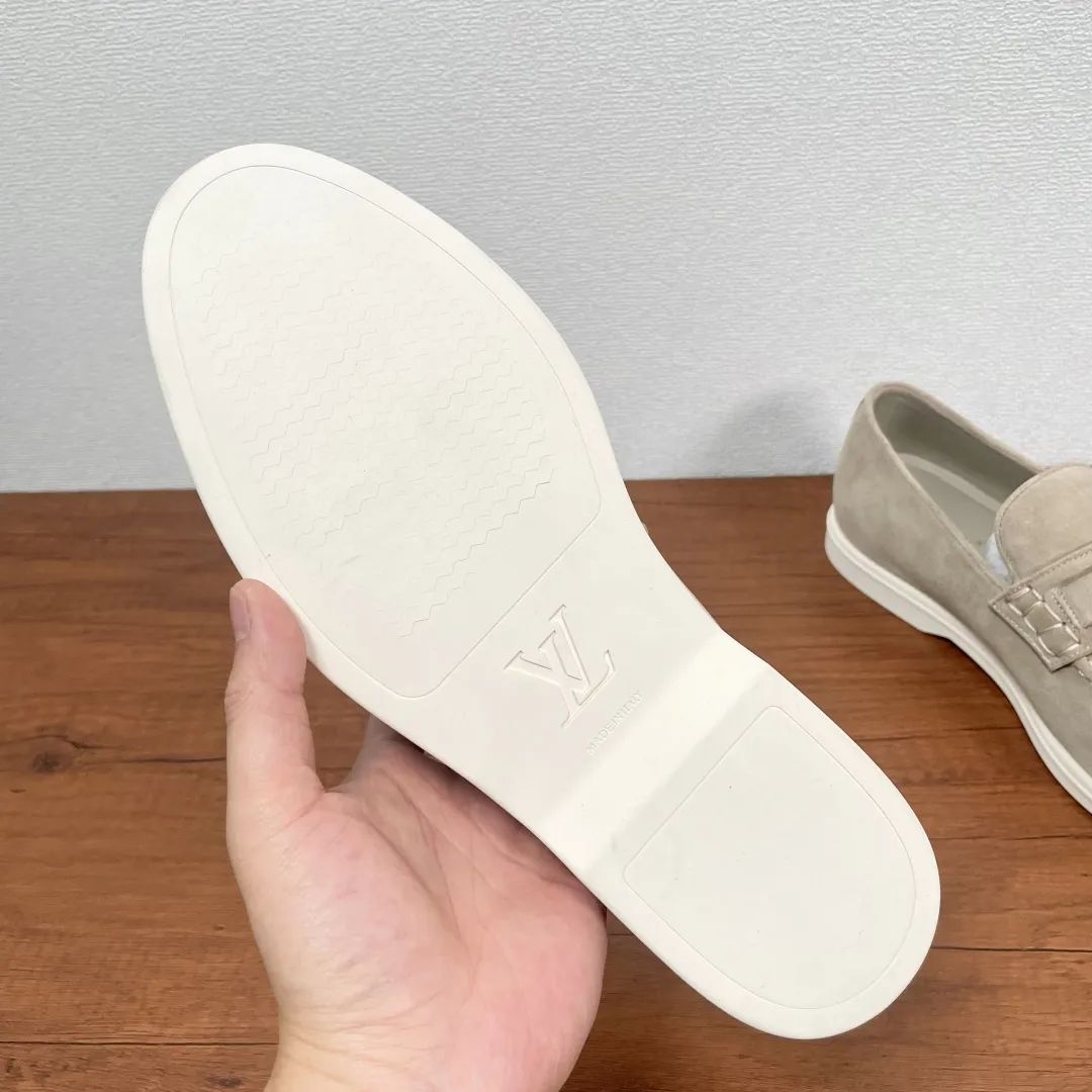 Элегантные и комфортные, мокасины LV Major воплощают в себе непринужденную роскошь. Выполненные из мягкой замшевой телячьей кожи, они дарят ощущение исключительного комфорта и стиля. Оригинальная резиновая подошва обеспечивает надежное сцепление, а ручная прошивка верха подчеркивает мастерство исполнения. Особый акцент – двухслойный горизонтальный ремешок с узнаваемым металлическим логотипом LV, ненавязчиво демонстрирующим принадлежность к легендарному бренду. Подкладка из натуральной коровьей кожи гарантирует комфорт в течение всего дня.