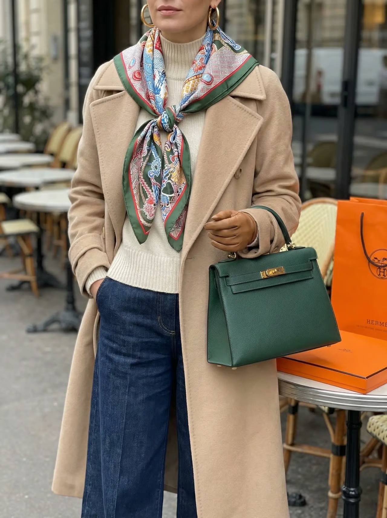 Богатая палитра сочетает насыщённые оттенки красного, синего, зелёного и золотого, что придаёт аксессуару особую живость и динамику.