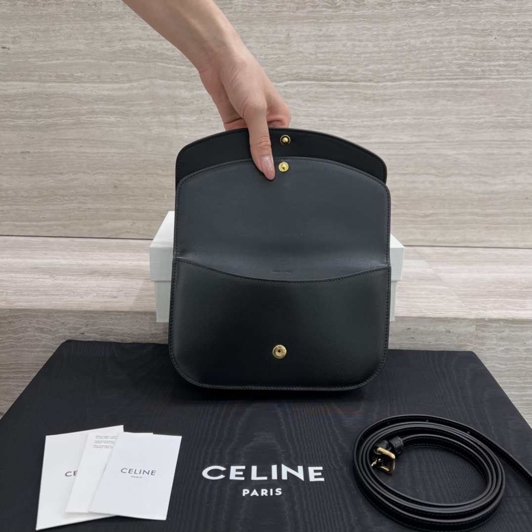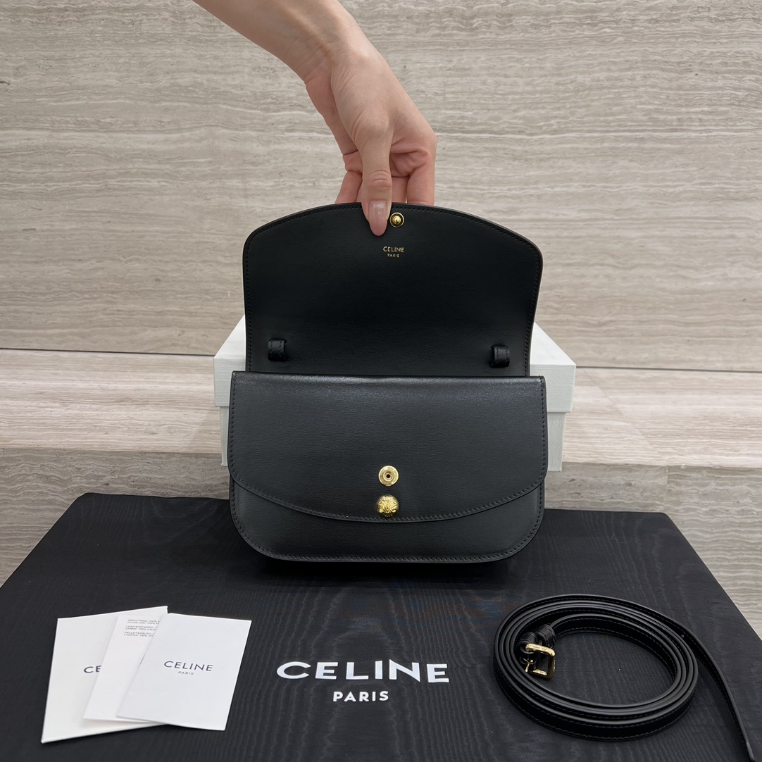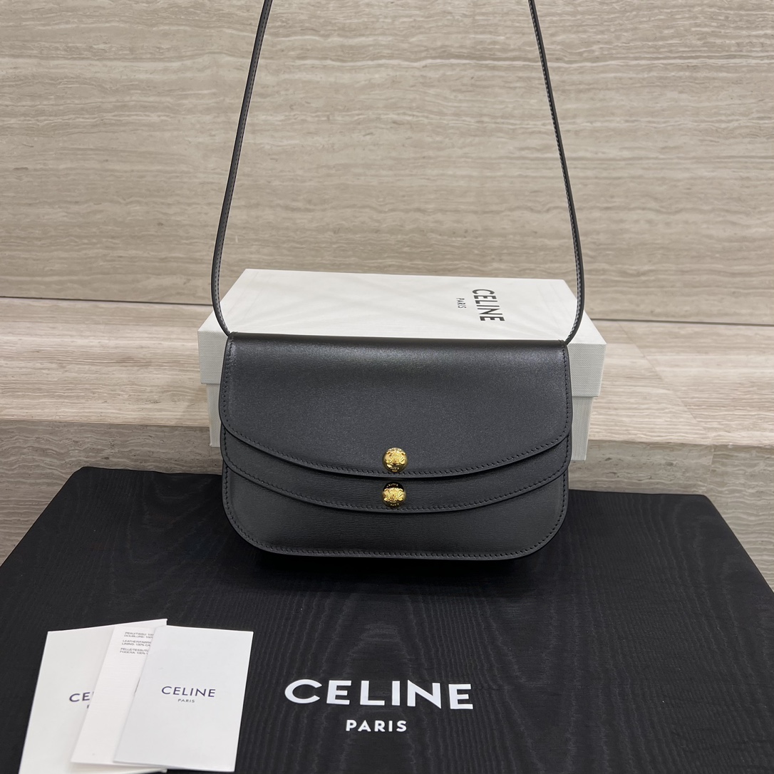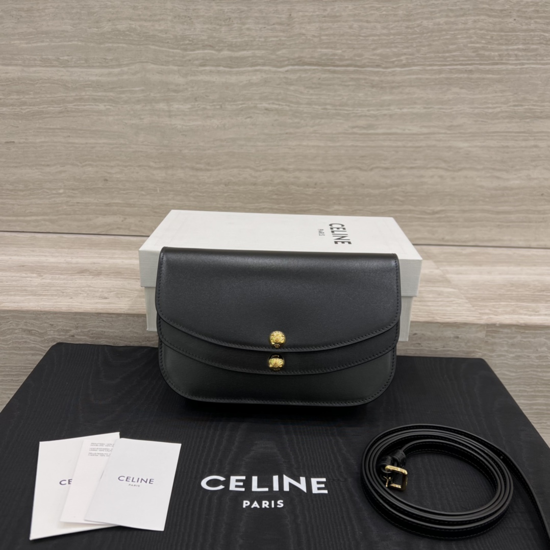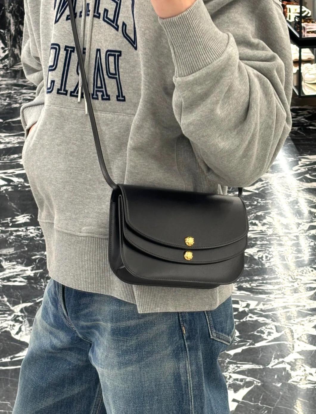 • Дизайн: классическая форма Duo с закруглённым клапаном и декоративной кожаной полосой на лицевой части, украшенной двумя золотистыми застежками-кнопками.