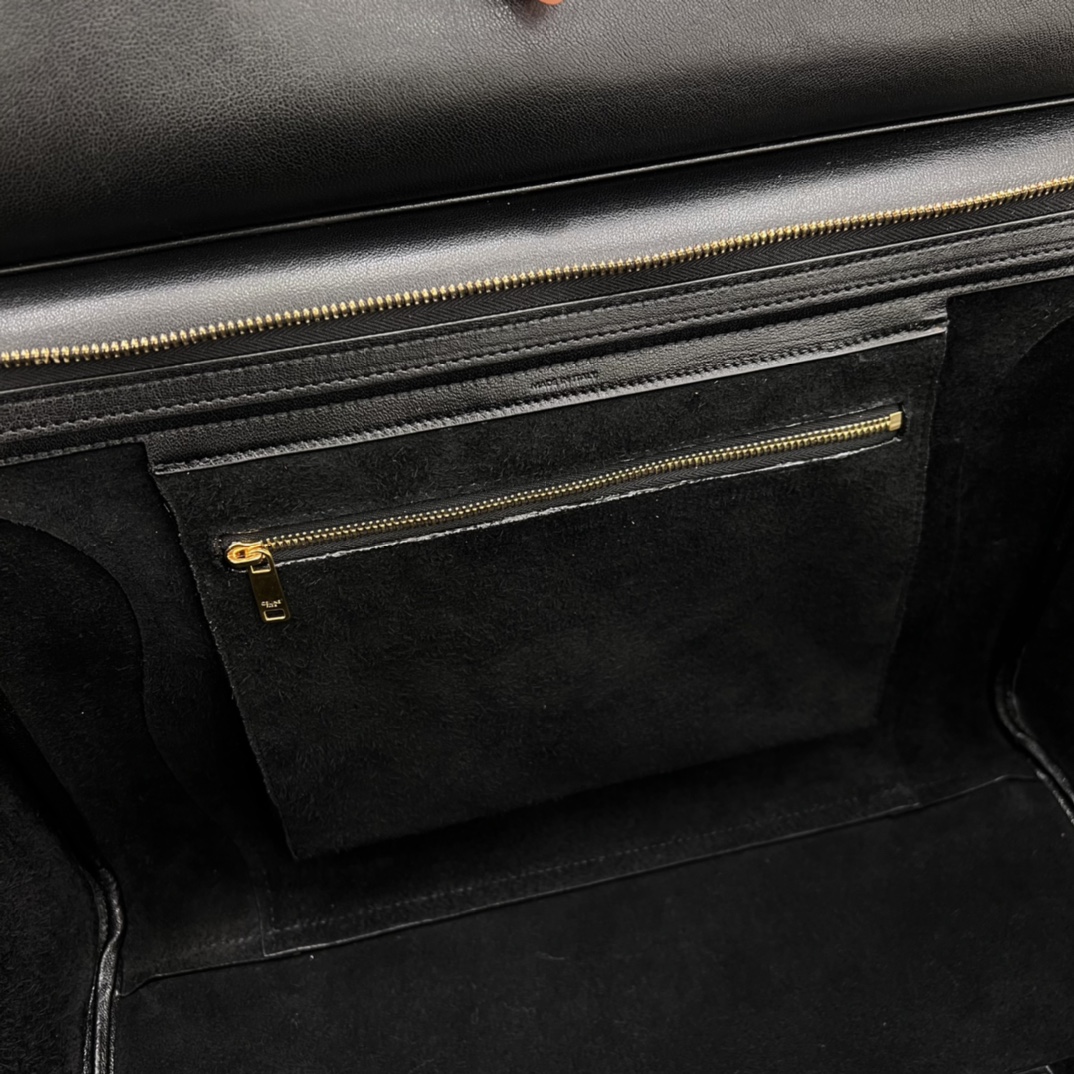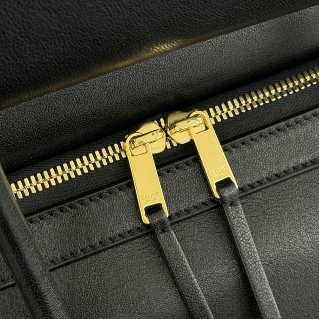 Иконическая сумка Luggage от CELINE в строгом черном исполнении — идеальный выбор для тех, кто ценит сочетание элегантности и практичности. Плавные линии, «крылья» по бокам и выразительный передний карман на молнии формируют узнаваемый силуэт, который легко адаптируется к деловому и повседневному образу.