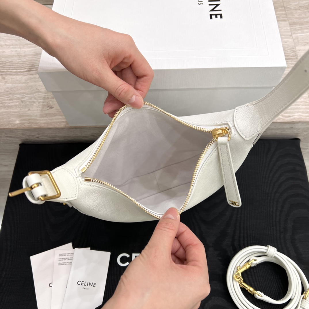 • Логотип: тонкая золотая печать CELINE Paris на лицевой стороне сумки.