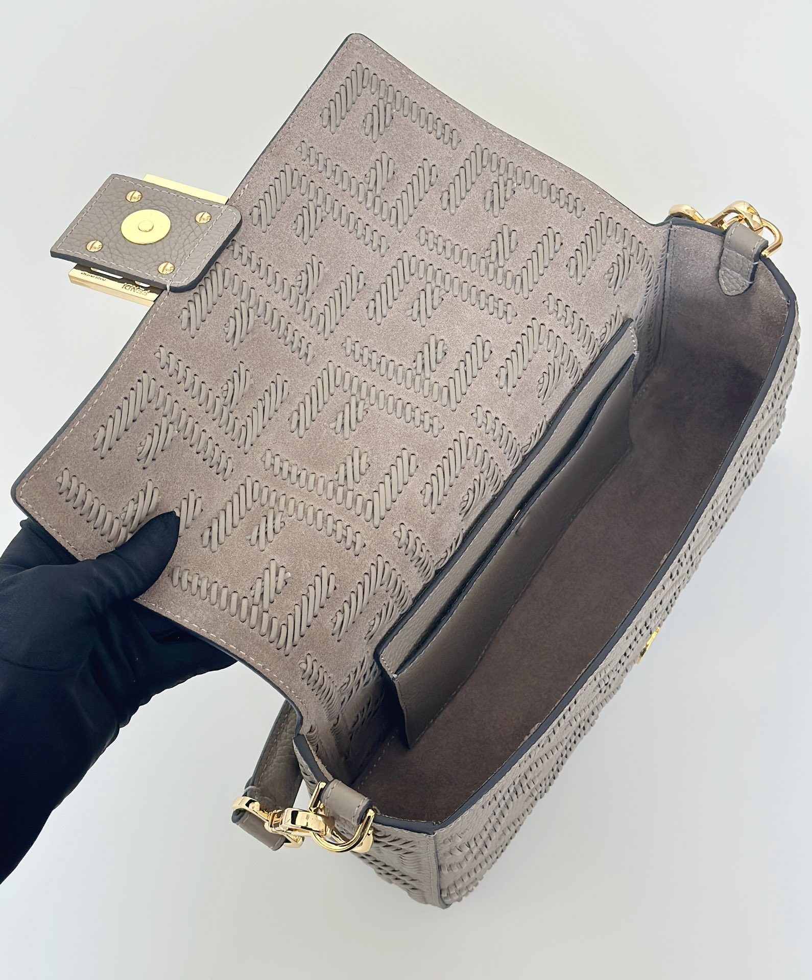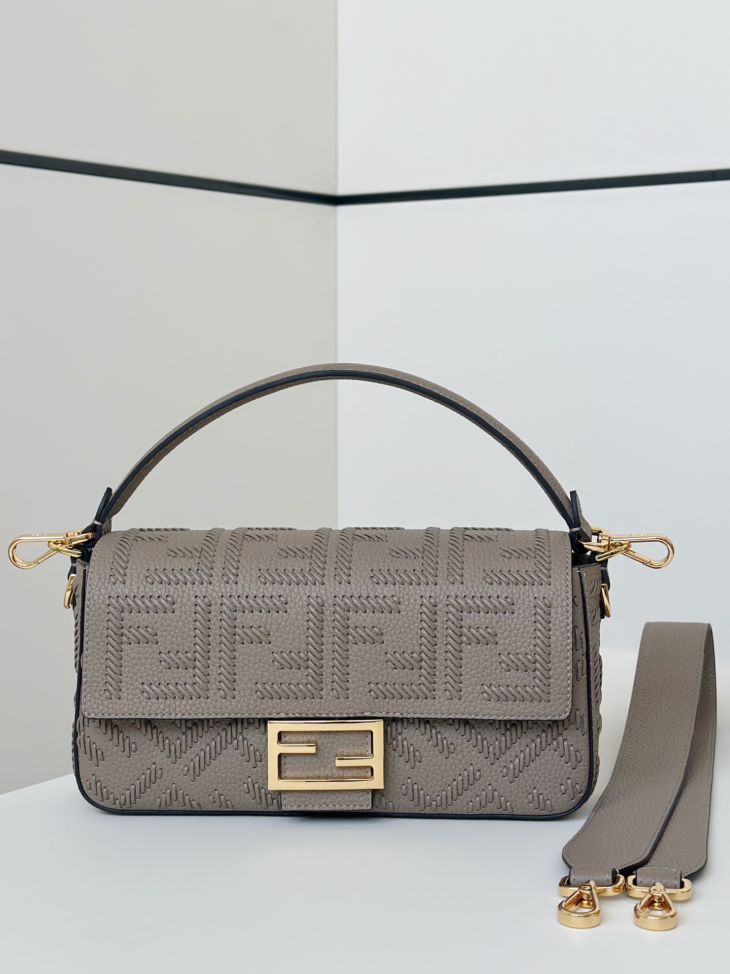 Элегантная Fendi Baguette из натуральной кожи — идеальное сочетание узнаваемого силуэта и продуманной функциональности. Эта компактная, но вместительная модель станет идеальным аксессуаром как для дневных образов, так и для вечерних выходов: строгая линия, аккуратная крышка с фирменной застёжкой и благородная текстура кожи подчёркивают статус и безупречный вкус.