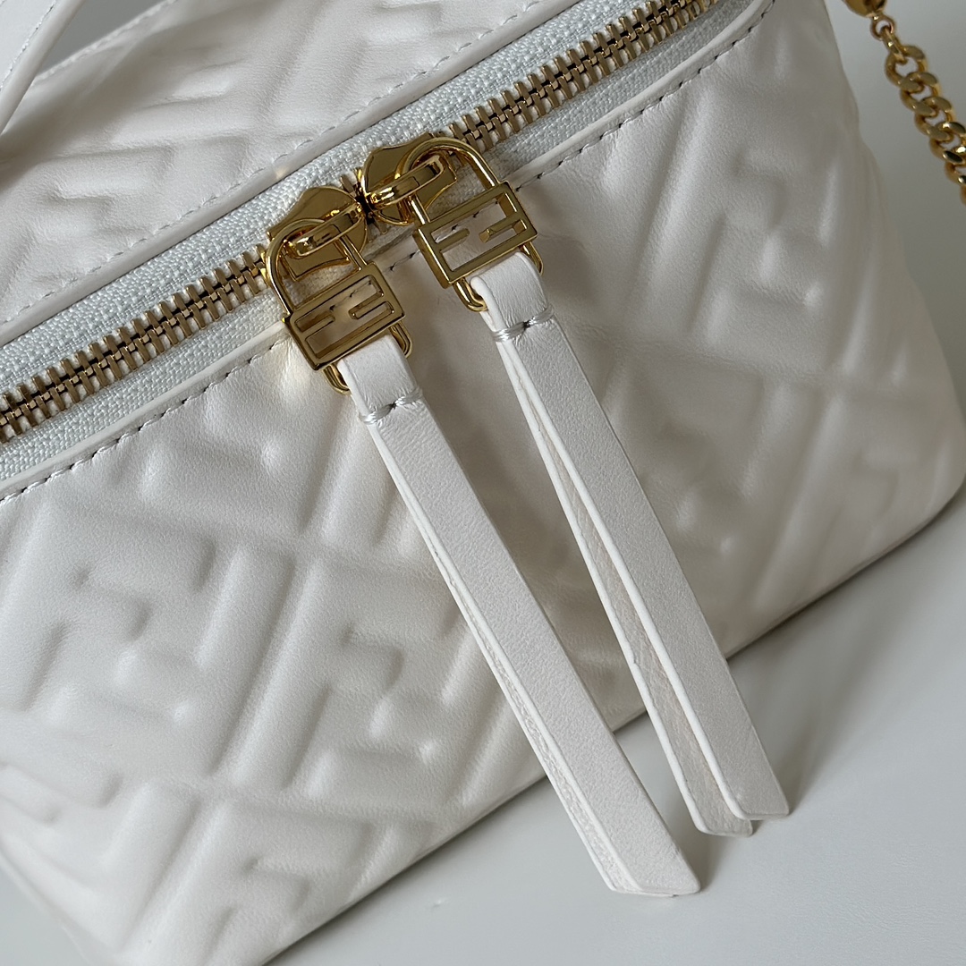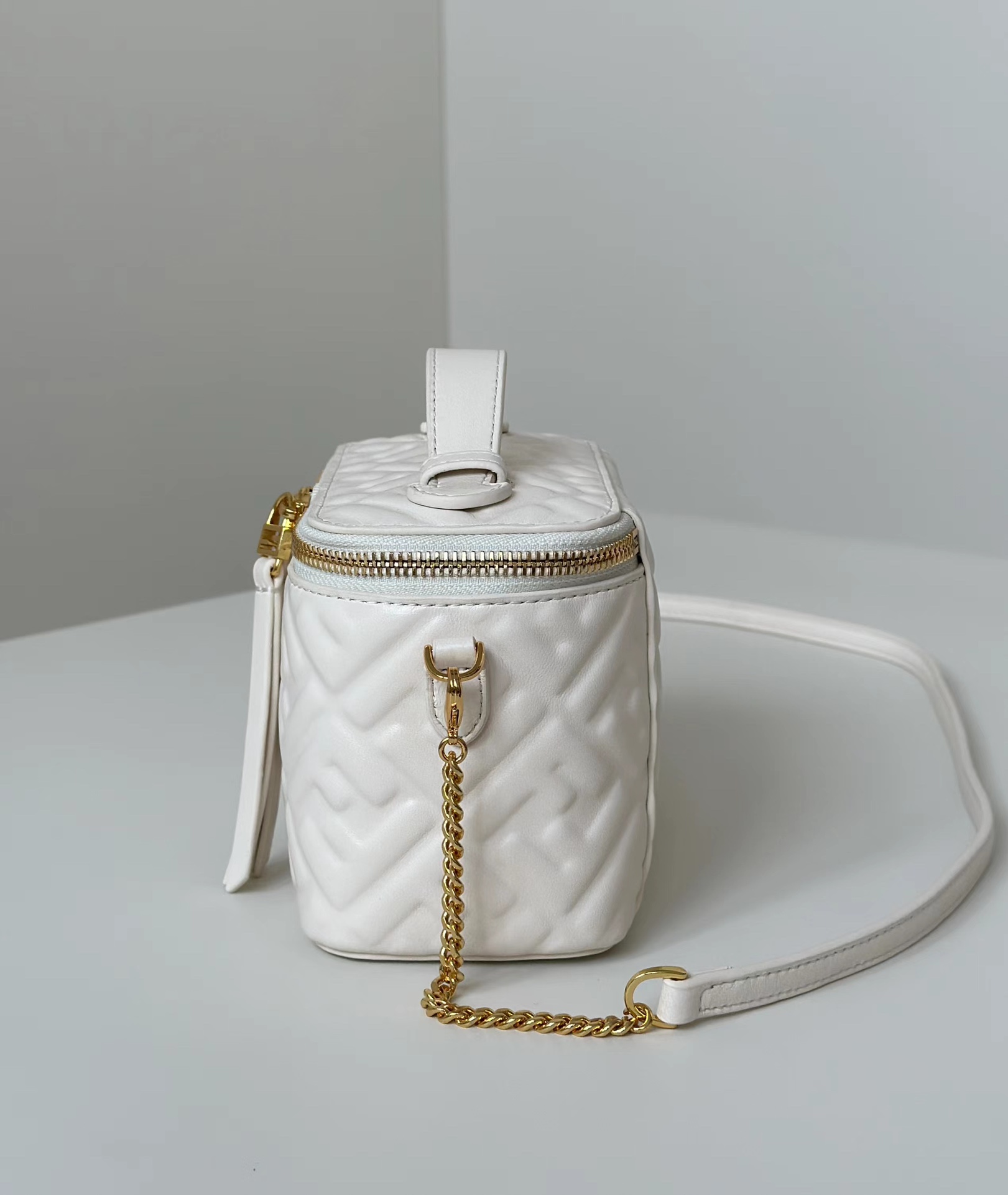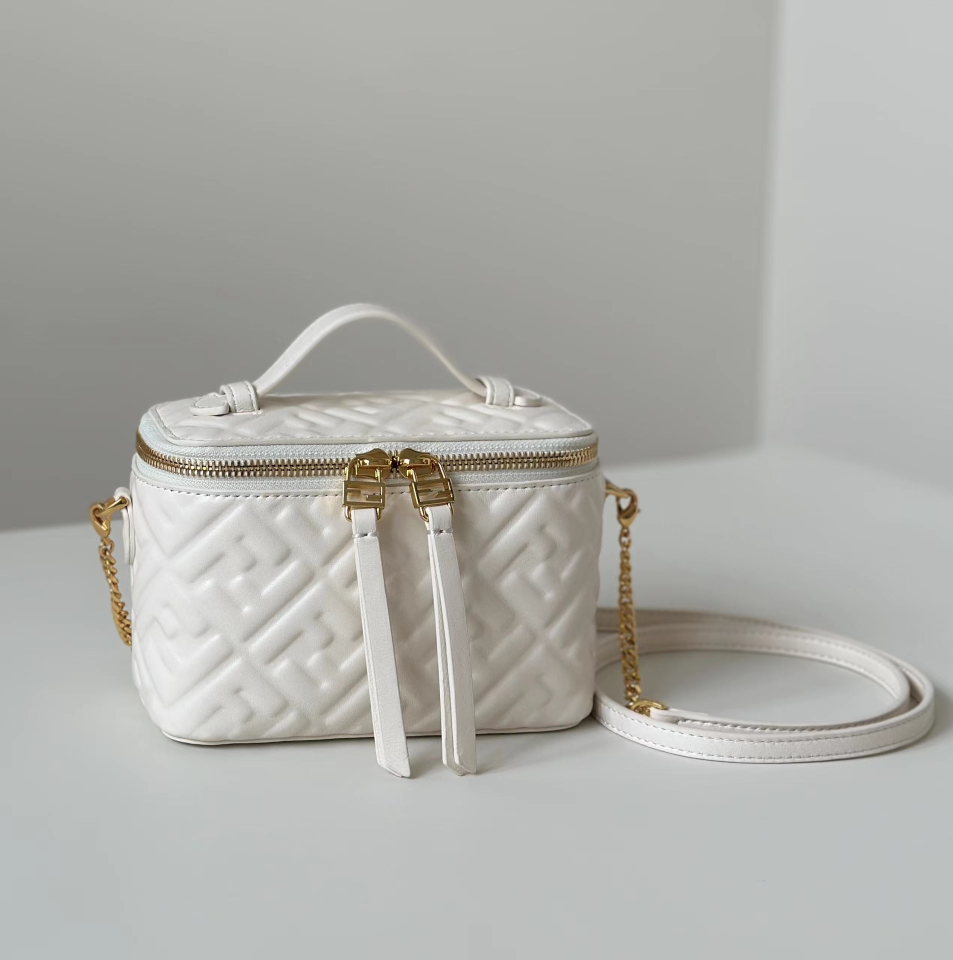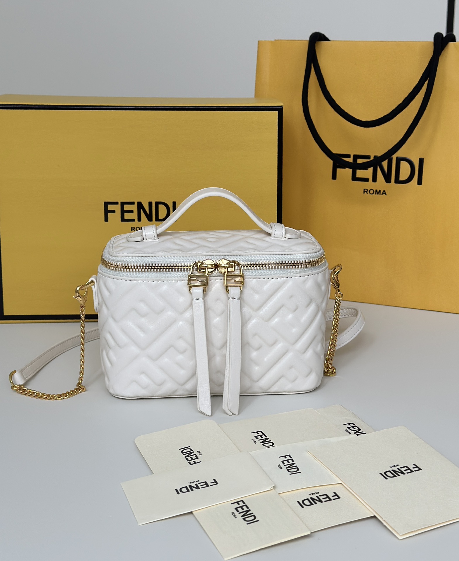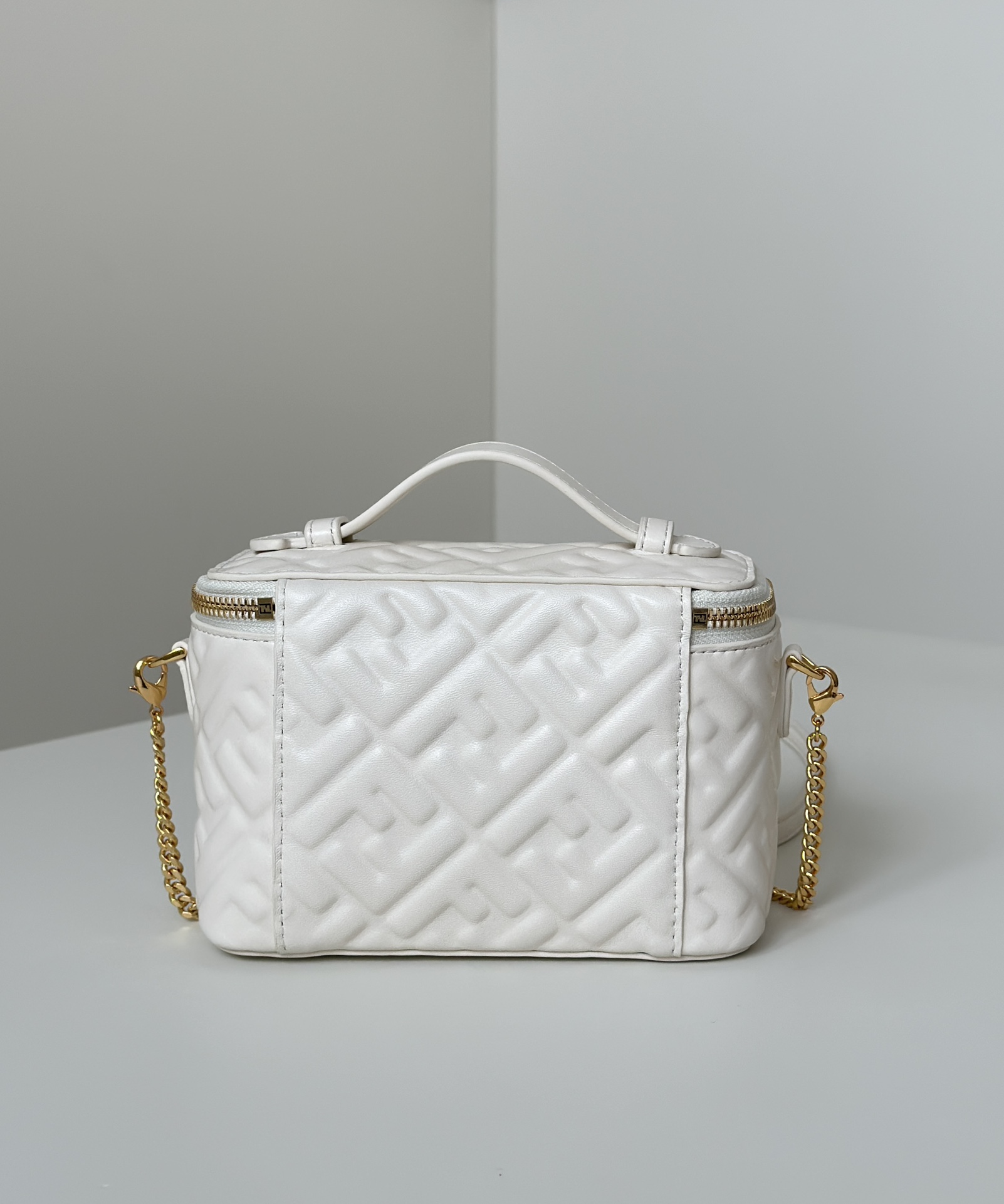 Иконическая сумка Vanity Fendi — идеальный аксессуар для тех, кто ценит элегантность и функциональность. Строгий структурированный силуэт, удобная верхняя ручка и съемный плечевой ремень позволяют носить модель как в руке, так и через плечо. Двойная молния и продуманное внутреннее пространство обеспечивают порядок и безопасность ваших вещей.