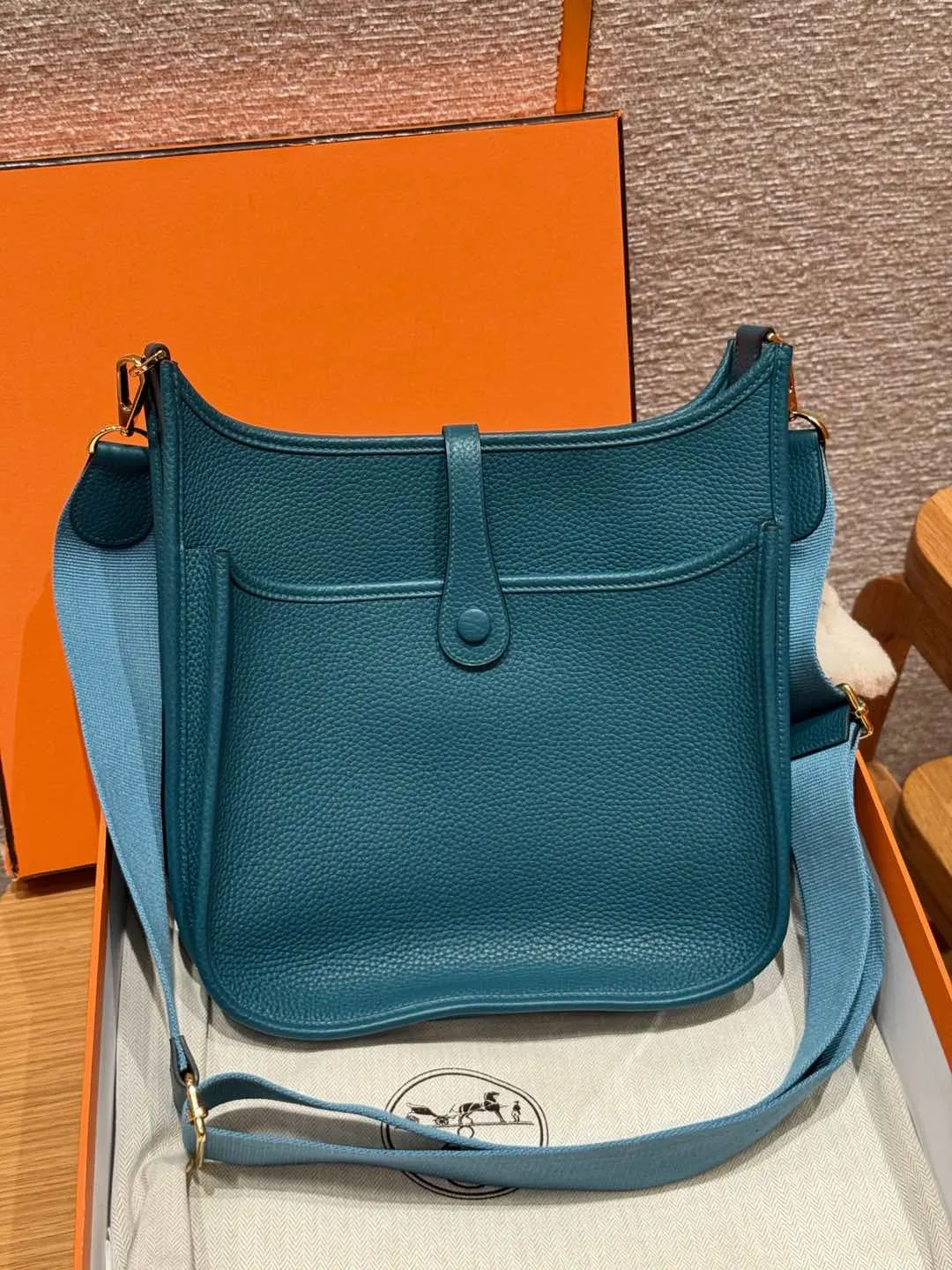 Hermes Женская сумка Evelyne 29 см W0/Vert Bosphore кожа Clemence.