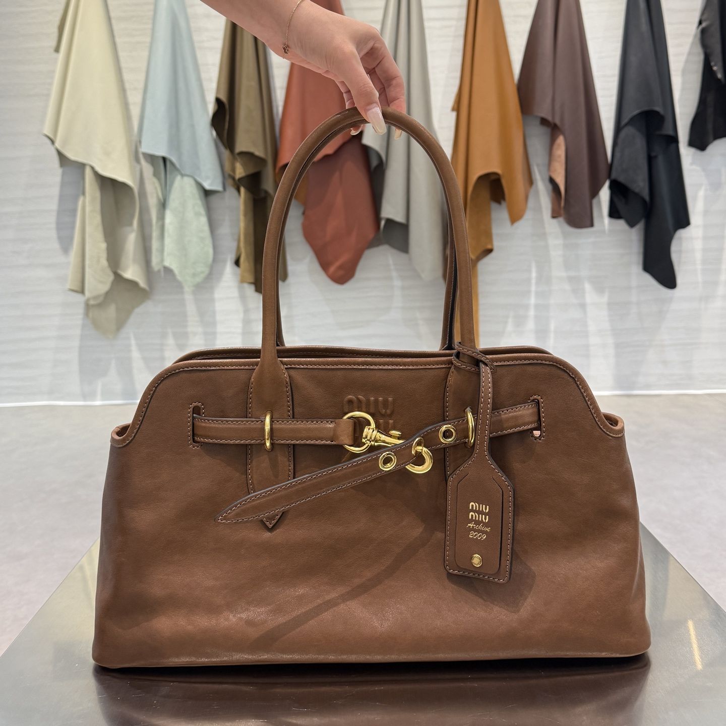 Эта модель сочетает функциональность и фирменную женственность Miu Miu: классические линии, мягкая кожа и изысканные детали создают универсальный аксессуар, который легко вписывается как в повседневные, так и в более элегантные образы.