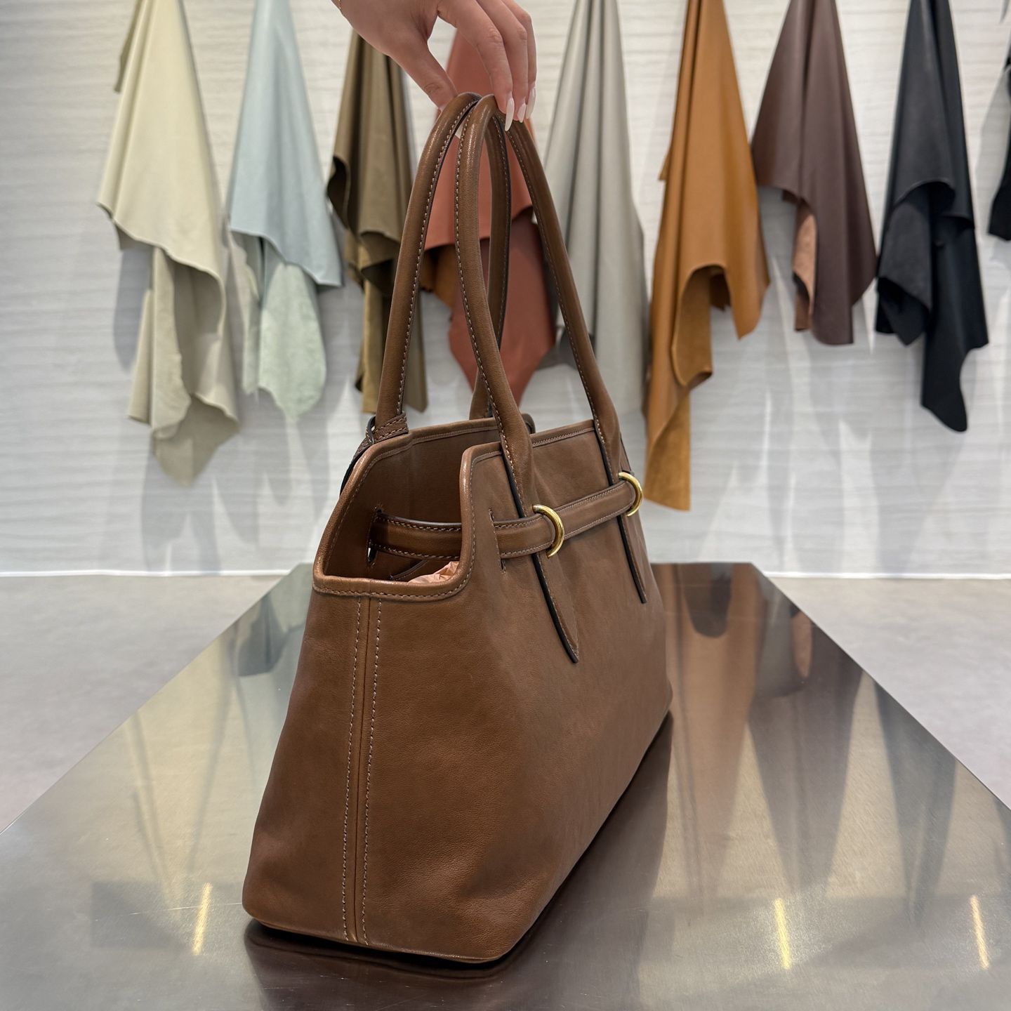 Сумка Aventure из кожи наппа от Miu Miu — элегантная модель с мягким, слегка структурированным силуэтом, вдохновлённым архивными дизайнами бренда. Она выполнена из роскошной кожи, которая отличается нежной фактурой и подчёркивает премиальный характер аксессуара.