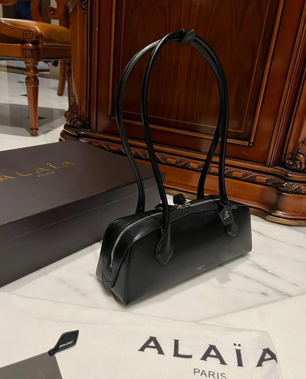 Женская сумка Alaia — это не просто аксессуар, а настоящая находка для тех, кто ценит стиль и качество. Изготовленная из первоклассной козьей кожи, она сочетает в себе не только роскошь, но и практичность. Удлиненная форма модели через плечо обеспечивает комфорт при ношении, позволяя легко сочетать сумку с различными нарядами — от повседневных до вечерних. Трубчатые ручки с элегантными декоративными завязками подчеркивают утонченность дизайна, добавляя изысканный акцент к любому образу.