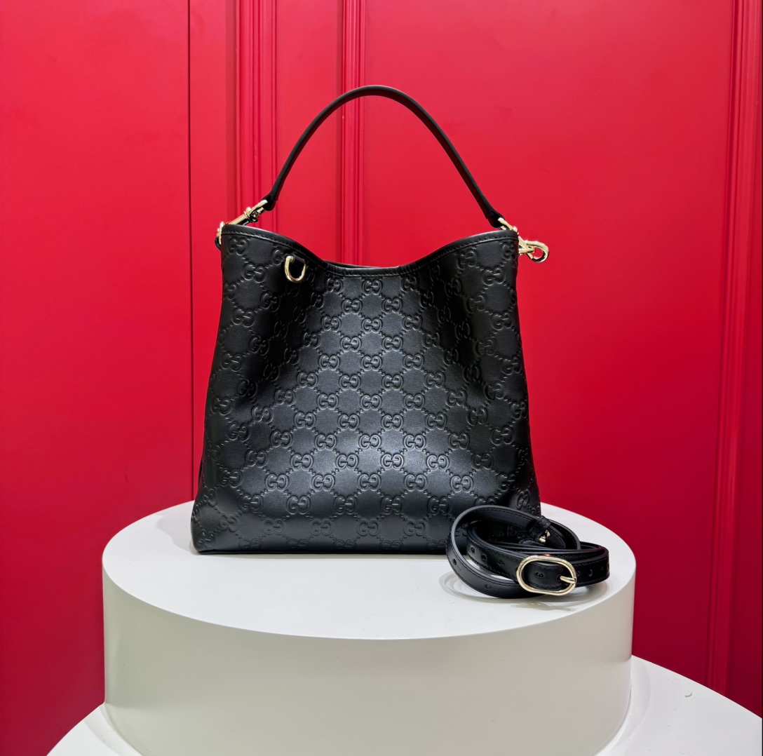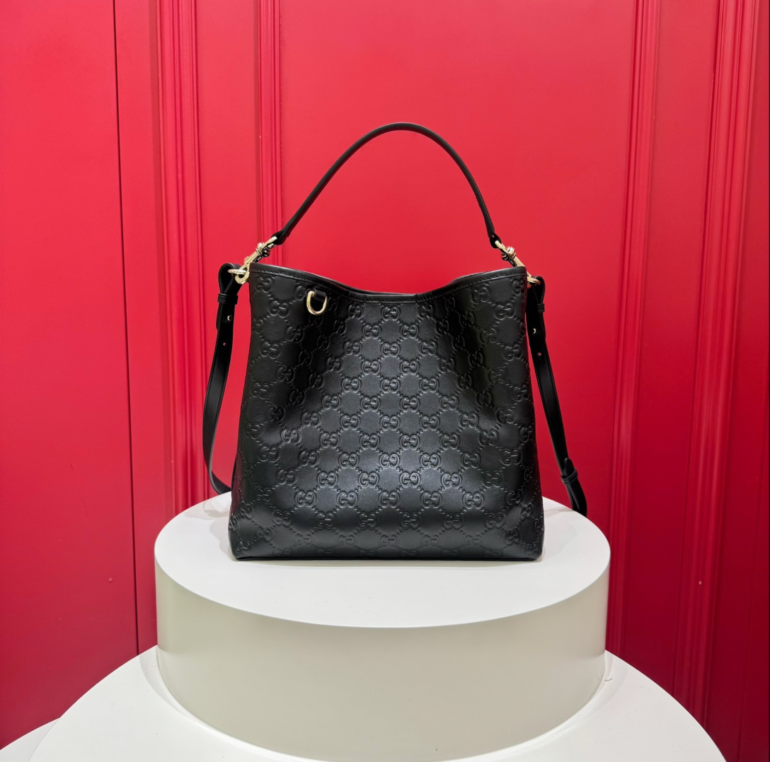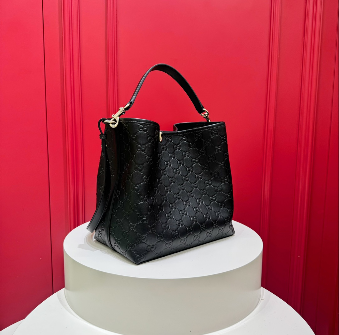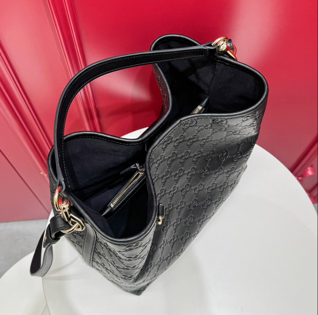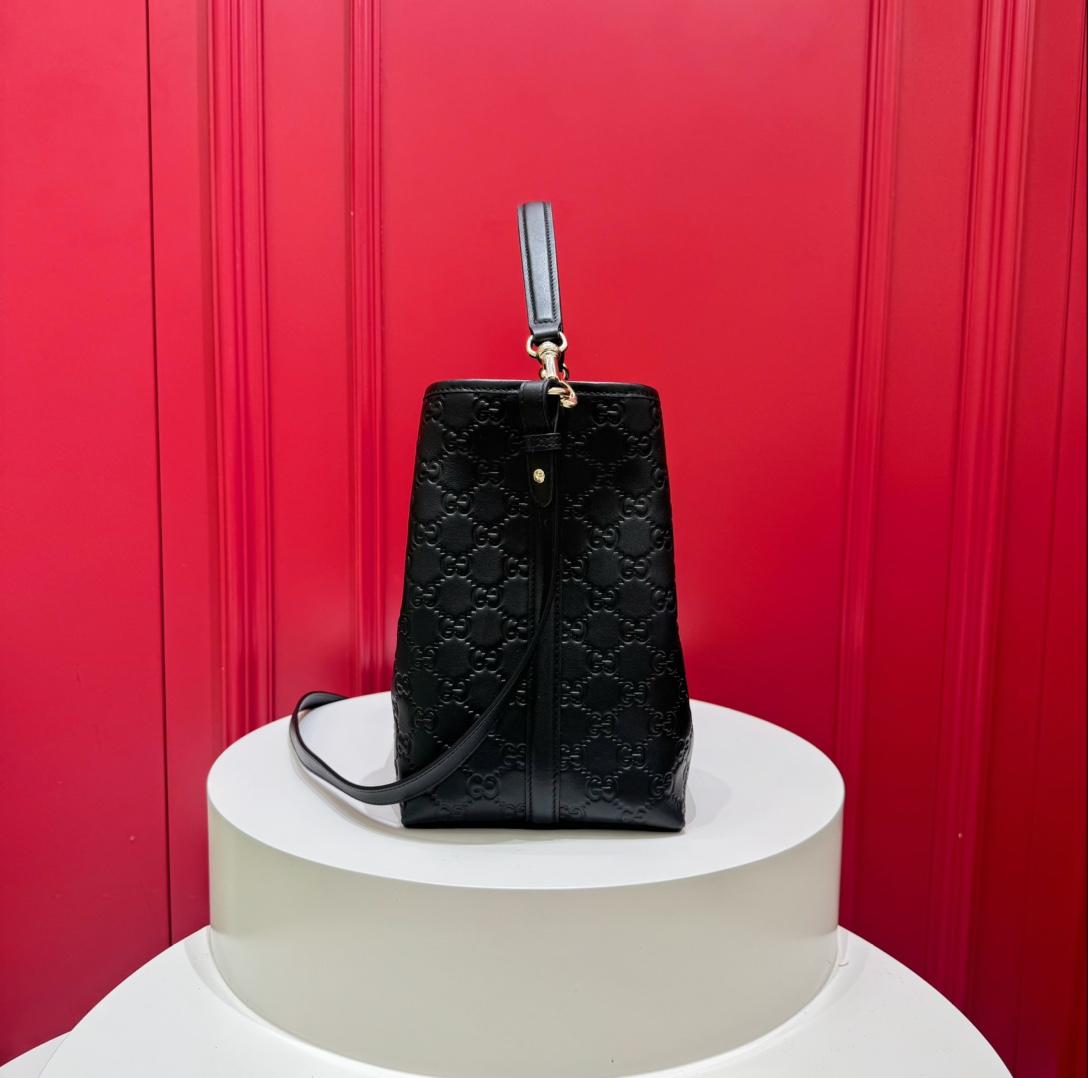 Gucci GG Emblem Small Bucket Bag — изящная и современная сумка, в которой фирменное наследие Дома сочетается с практичным повседневным дизайном. Модель выполнена из тиснёной кожи с культовым узором GG и дополнена светло-золотистой фурнитурой, создающей утончённый акцент.Компактная форма скрывает продуманное внутреннее пространство: два отделения и центральный карман на кнопке помогают удобно организовать вещи, а съёмный регулируемый ремень позволяет носить сумку и в руке, и через плечо.