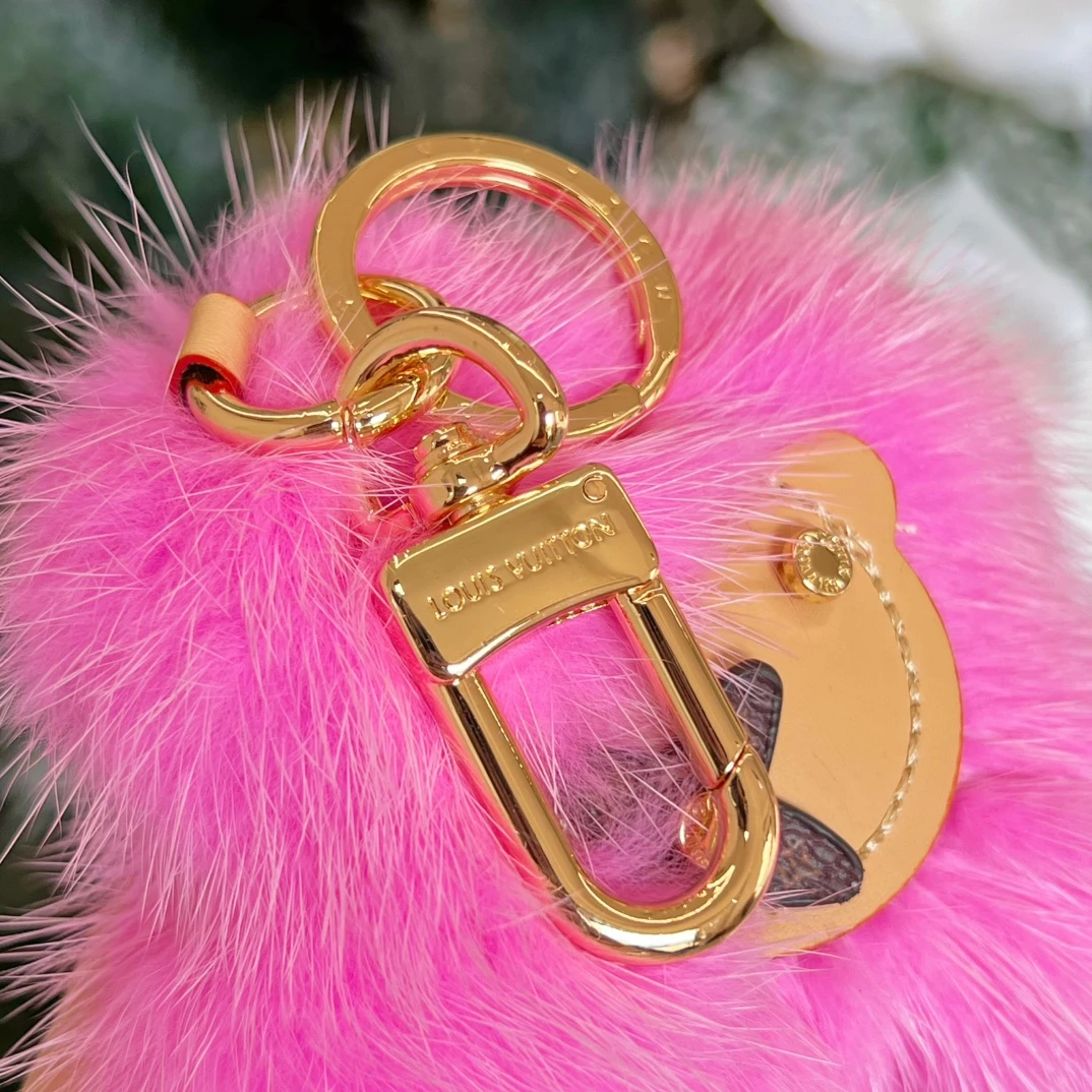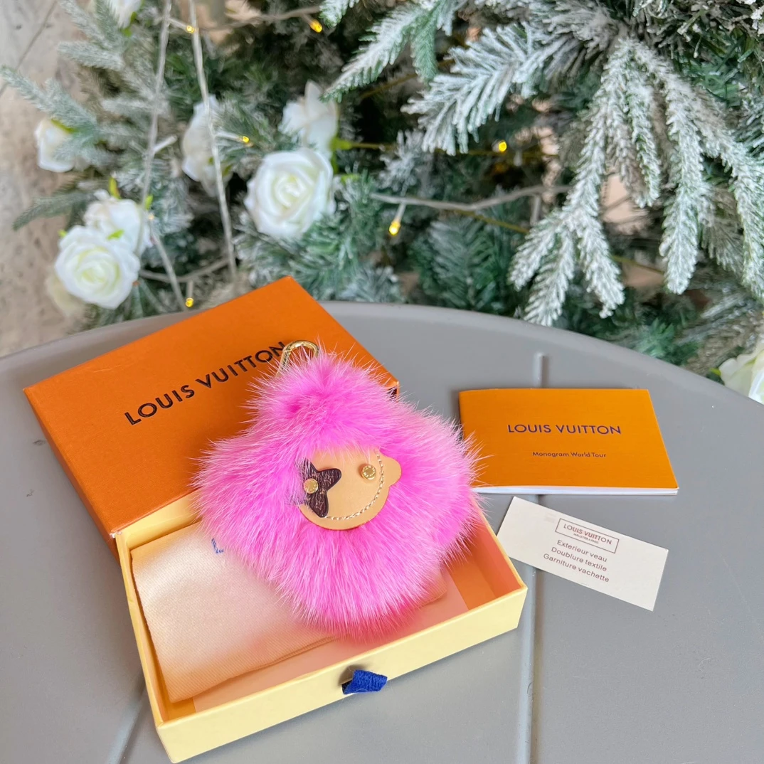 Брелок LV это не только стильный аксессуар, но и уникальный элемент, который добавляет изюминку к вашим сумкам. Изготовленный из высококачественного меха норки, он отличается мягкостью и приятной текстурой на ощупь. Дизайн брелка включает в себя узнаваемый образ талисмана, одетого в зимнюю одежду, что делает его особенно привлекательным в холодное время года. Кожа, использованная для создания лицевой стороны, придаёт брелку элегантный и невинный вид, в то время как цветы Monogram добавляют яркие акценты, подчеркивающие индивидуальность аксессуара. Мягкий и объемный мех вокруг создает атмосферу уюта и тепла, а также служит напоминанием о роскоши, свойственной бренду.