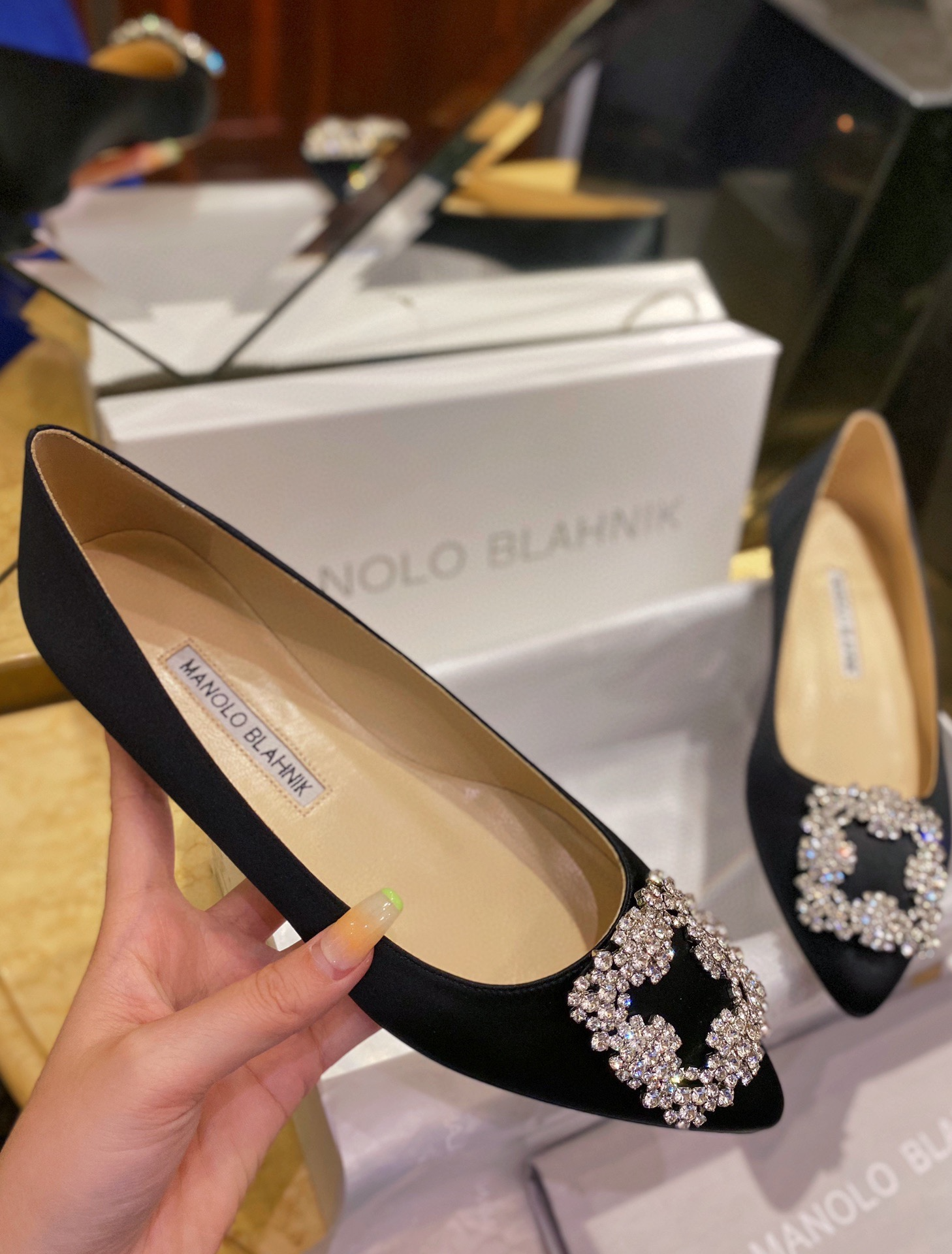 Туфли Manolo Blahnik из черного шелка с ромбовидными узорами – это стильная и элегантная обувь, которая прекрасно дополняет как повседневный, так и вечерний наряд. Модели этого бренда известны своим высоким качеством материалов и изысканным дизайном.