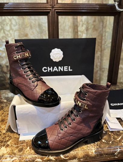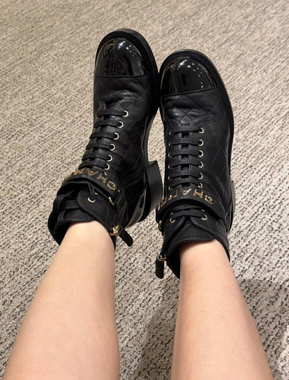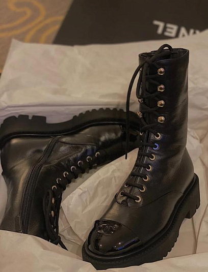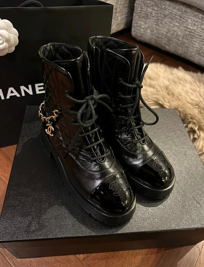 CHANEL Женские лакированные ботинки на шнуровке 23b