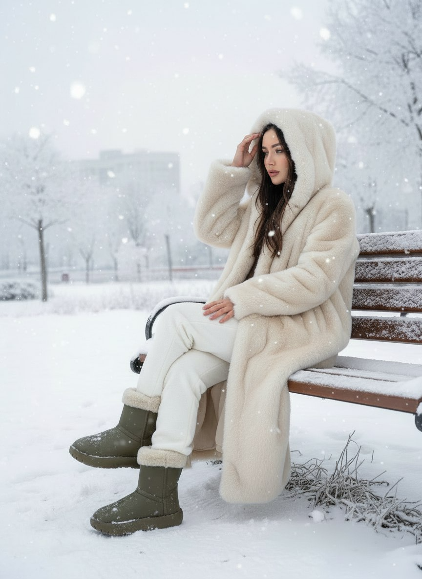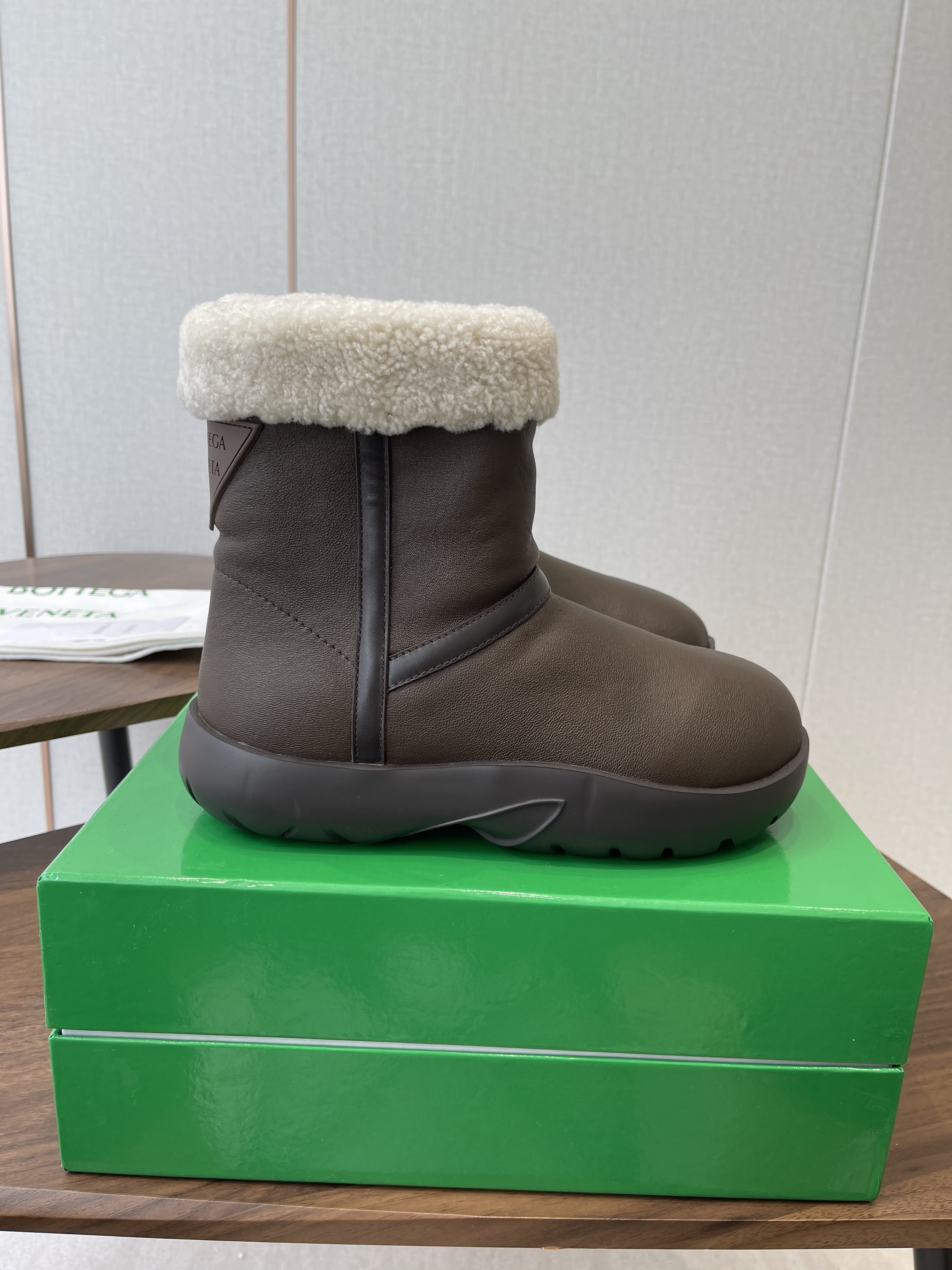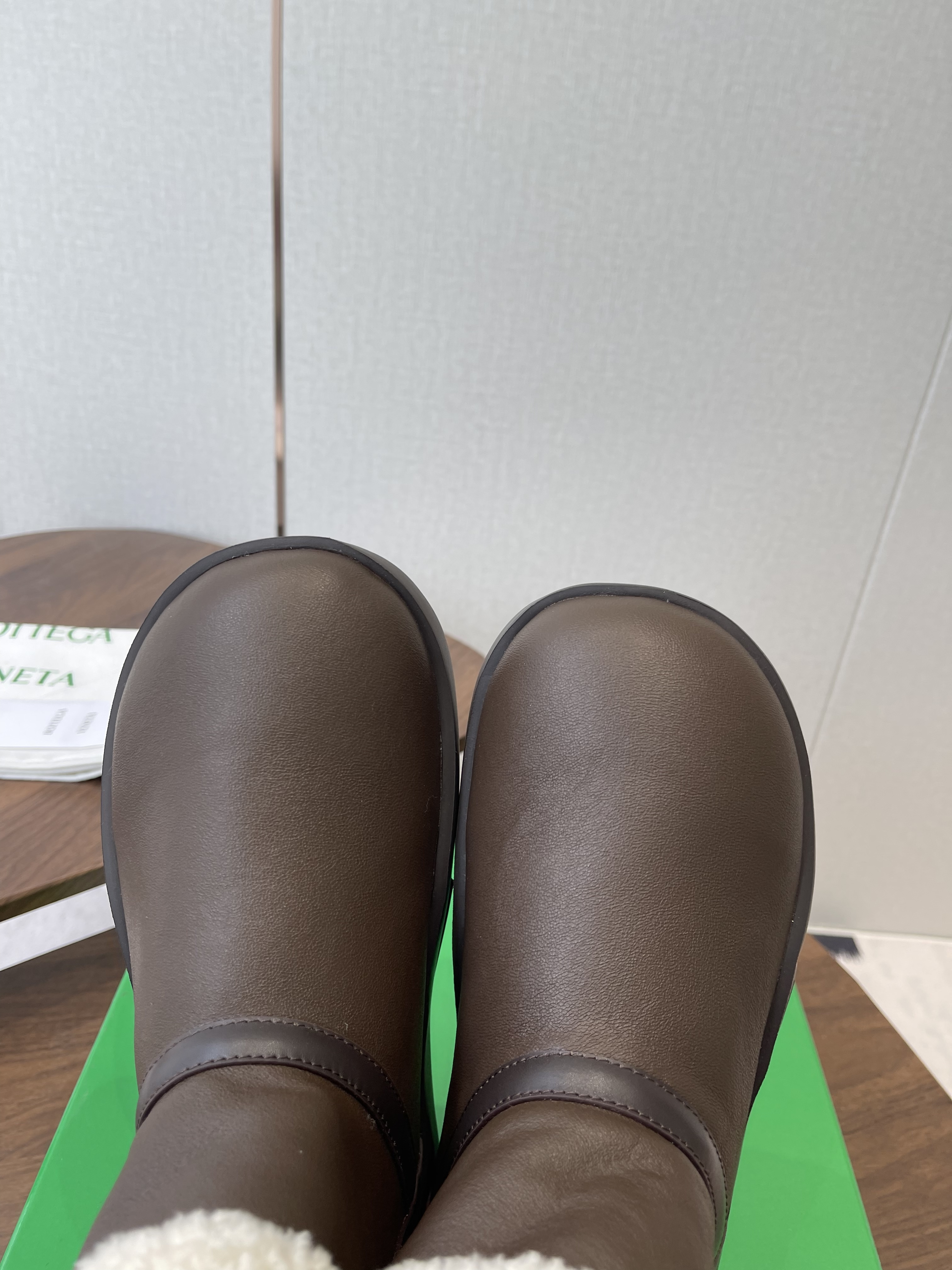 Верхняя часть выполнена из высококачественной телячьей кожи с тонкой естественной текстурой — кожа мягко облегает стопу, при этом сохраняет форму и устойчивость к заломам. Внутренняя утеплённая подкладка с мягким мехом обеспечивает комфорт и сохранение тепла в холодную погоду. Рельефная резиновая подошва с невысокой платформой даёт надёжное сцепление и амортизацию при ходьбе, придавая обуви лёгкий спортивный характер. Округлый носок и лаконичные швы подчёркивают сдержанную элегантность модели. Ботинки легко надеваются — модель без видимых застёжек, что делает их удобными для ежедневного использования.