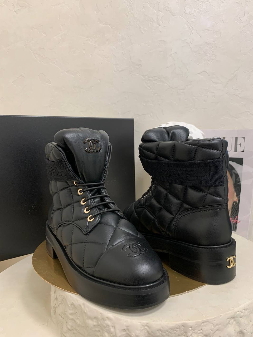 Кожаные женские ботинки Chanel с логотипом и шнуровкой являются выдающимся элементом гардероба, который сочетает в себе элегантность и современность. Качественная натуральная кожа не только обеспечивает комфорт, но и придает ботинкам роскошный внешний вид. Шнуровка не только позволяет индивидуально регулировать посадку, но и добавляет спортивный шарм, что делает эти ботинки универсальными для различных стилевых решений. Логотип Chanel, мастерски интегрированный в дизайн, демонстрирует приверженность бренда к качеству и эксклюзивности.