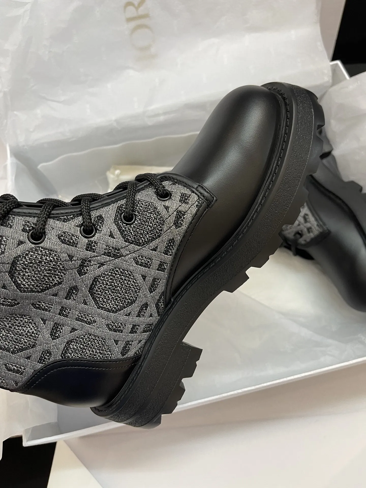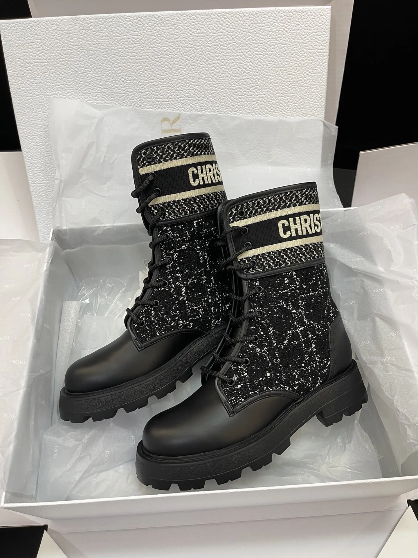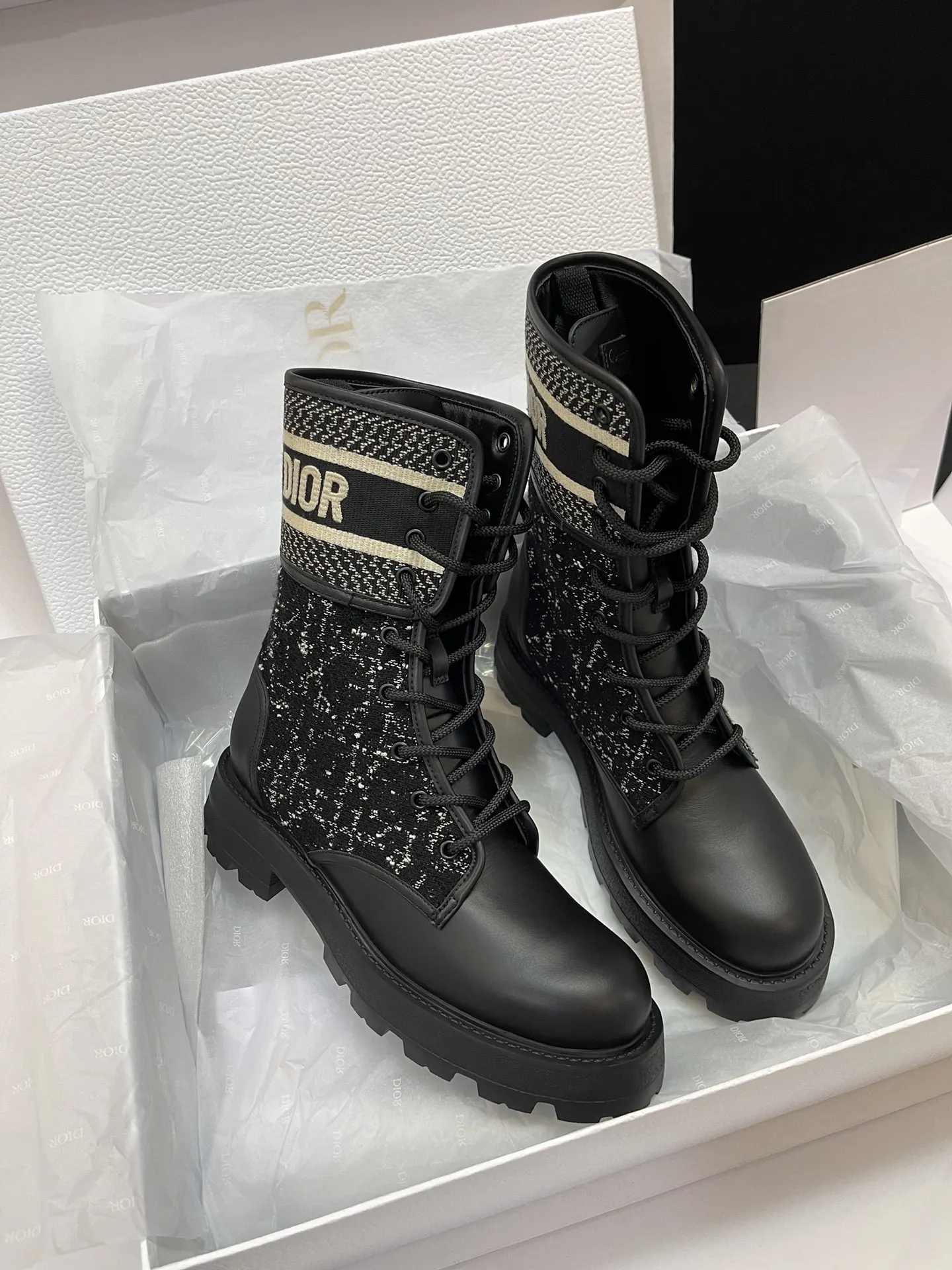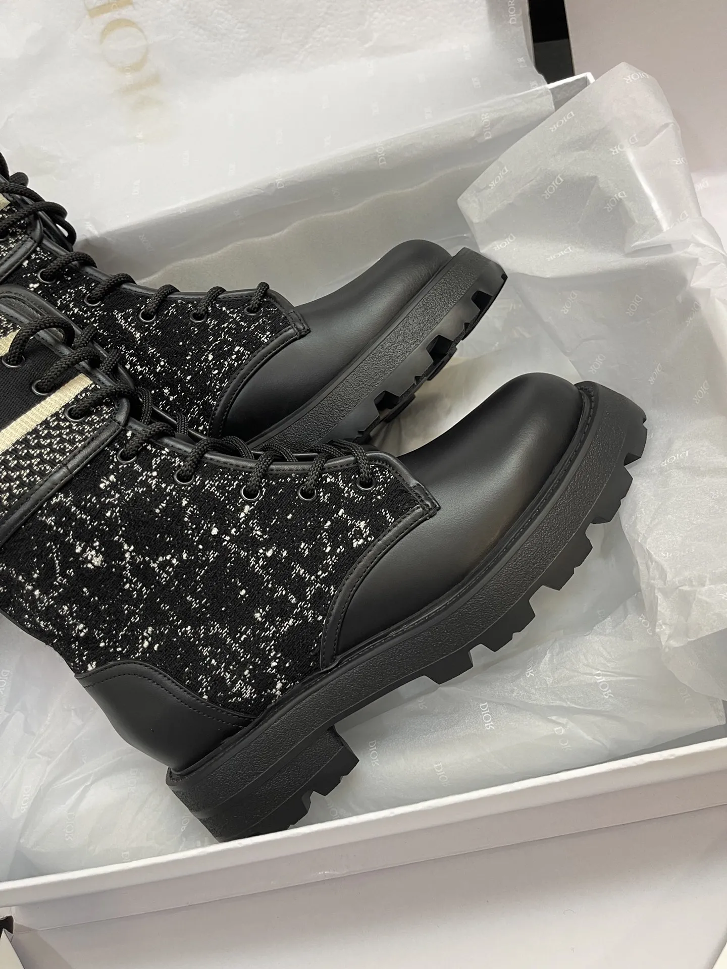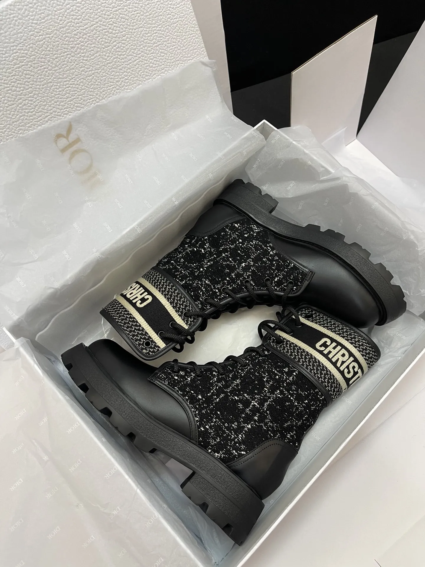 Ботинки D-Major — это смелое и стильное решение для тех, кто хочет выделиться. Их уникальный дизайн сочетает черно-белый твид каннаж с черной телячьей кожей, создавая элегантный и современный образ. Внешняя отделка выполнена из высококачественного черно-белого твида каннаж, который гармонично сочетается с роскошной телячьей кожей. Ботинки украшены вышитым фирменным узором в виде полосок Christian Dior Paris, вдохновленным культовой сумкой Book Tote. Удобные регулируемые ремешки подчеркивают лодыжку, обеспечивая идеальную посадку и дополнительный комфорт.