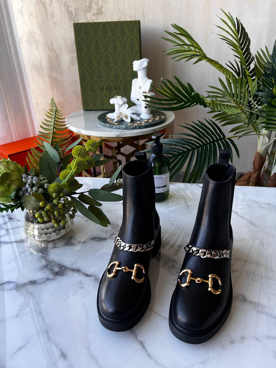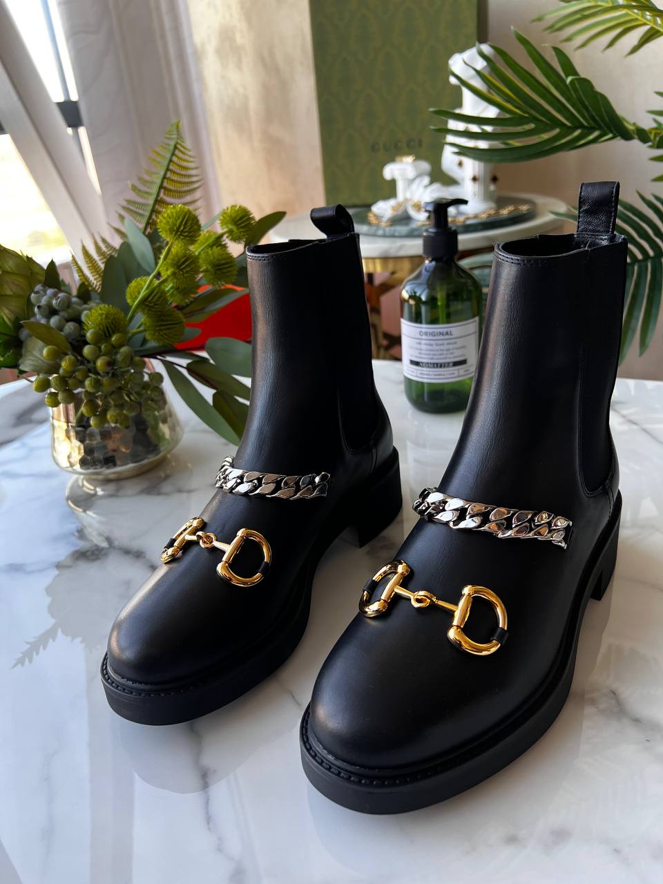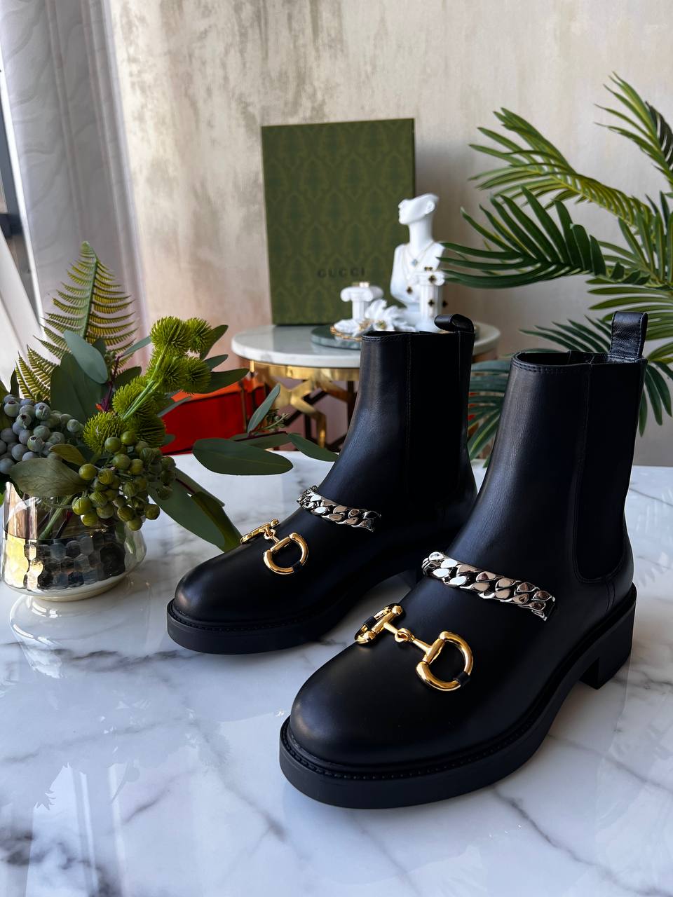 Ботинки Gucci — это отпечаток стиля и элегантности, которые находят свое место в любой коллекции обуви. Эти ботинки, выполненные из черной кожи, идеально сочетают в себе классические и современные элементы.