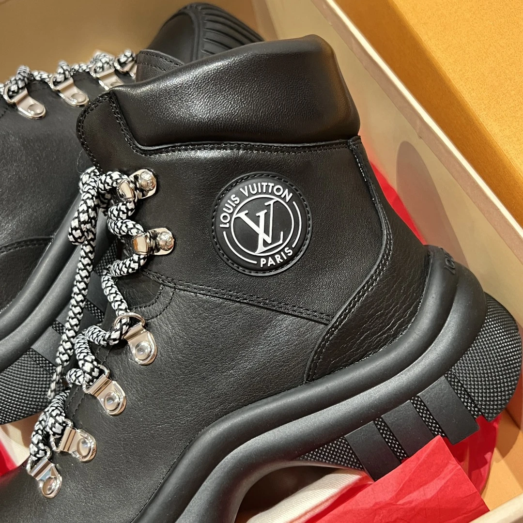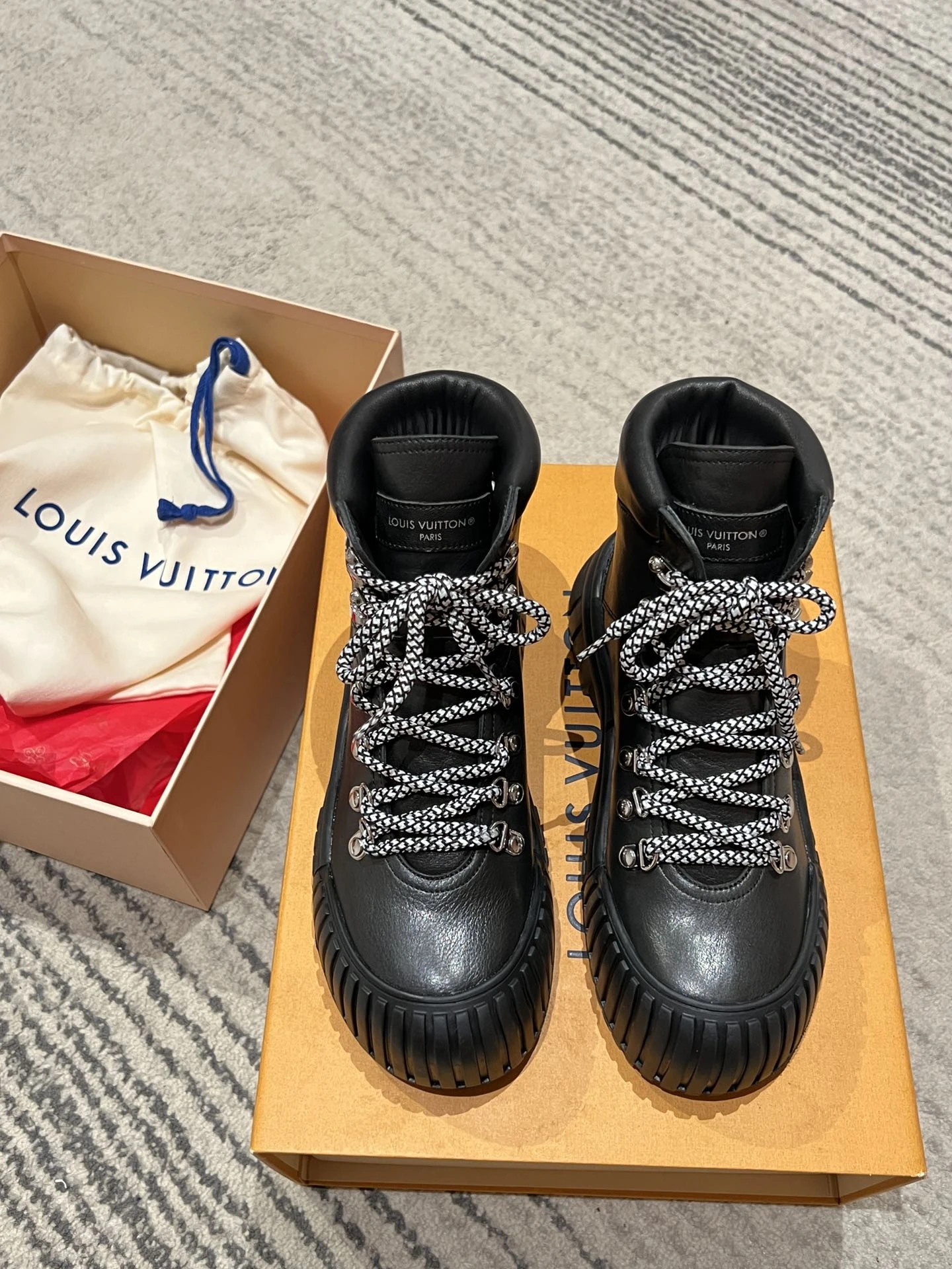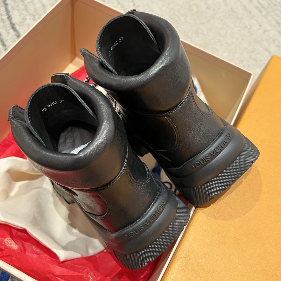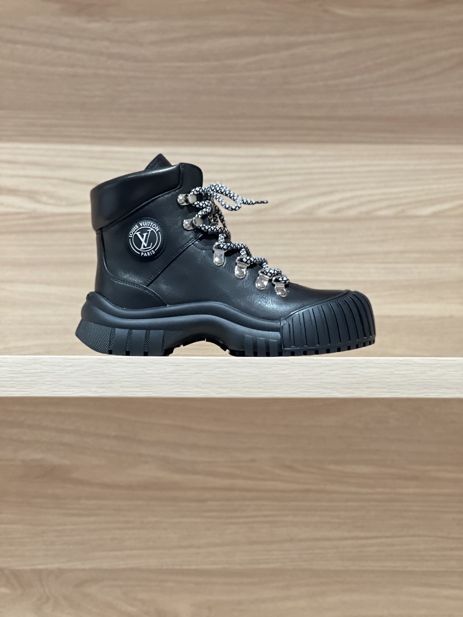 Стильные ботинки Louis Vuitton Ruby — это сочетание роскоши и современного дизайна. Модель выполнена из высококачественной кожи с культовым монограммным принтом LV. Особое внимание к деталям: массивная ребристая подошва из резины и удобная шнуровка на металлических петлях обеспечивают надежную фиксацию и комфорт при носке. Высокая посадка защищает в сезоны дождей и прохлады, подходит для города и активного отдыха.