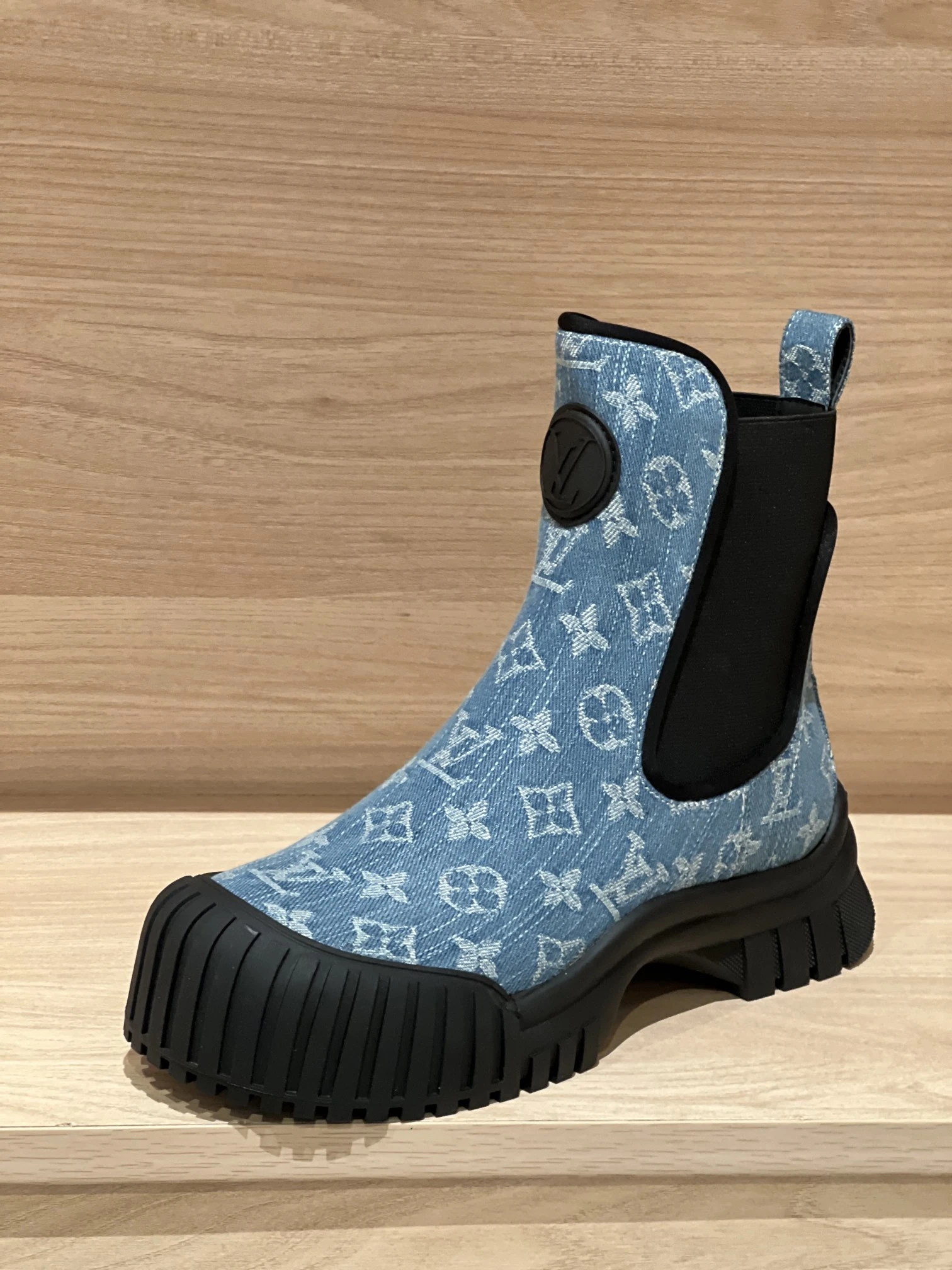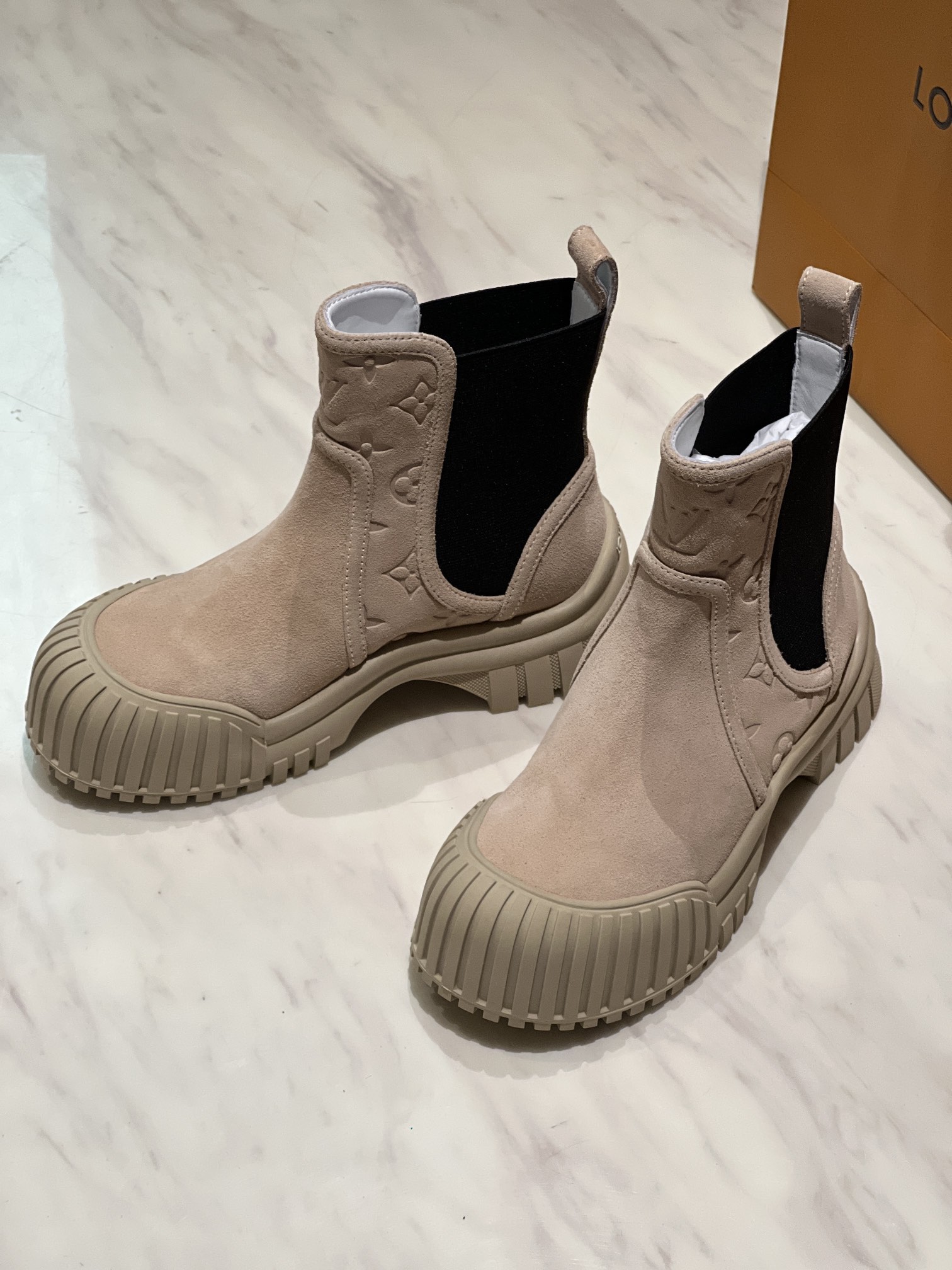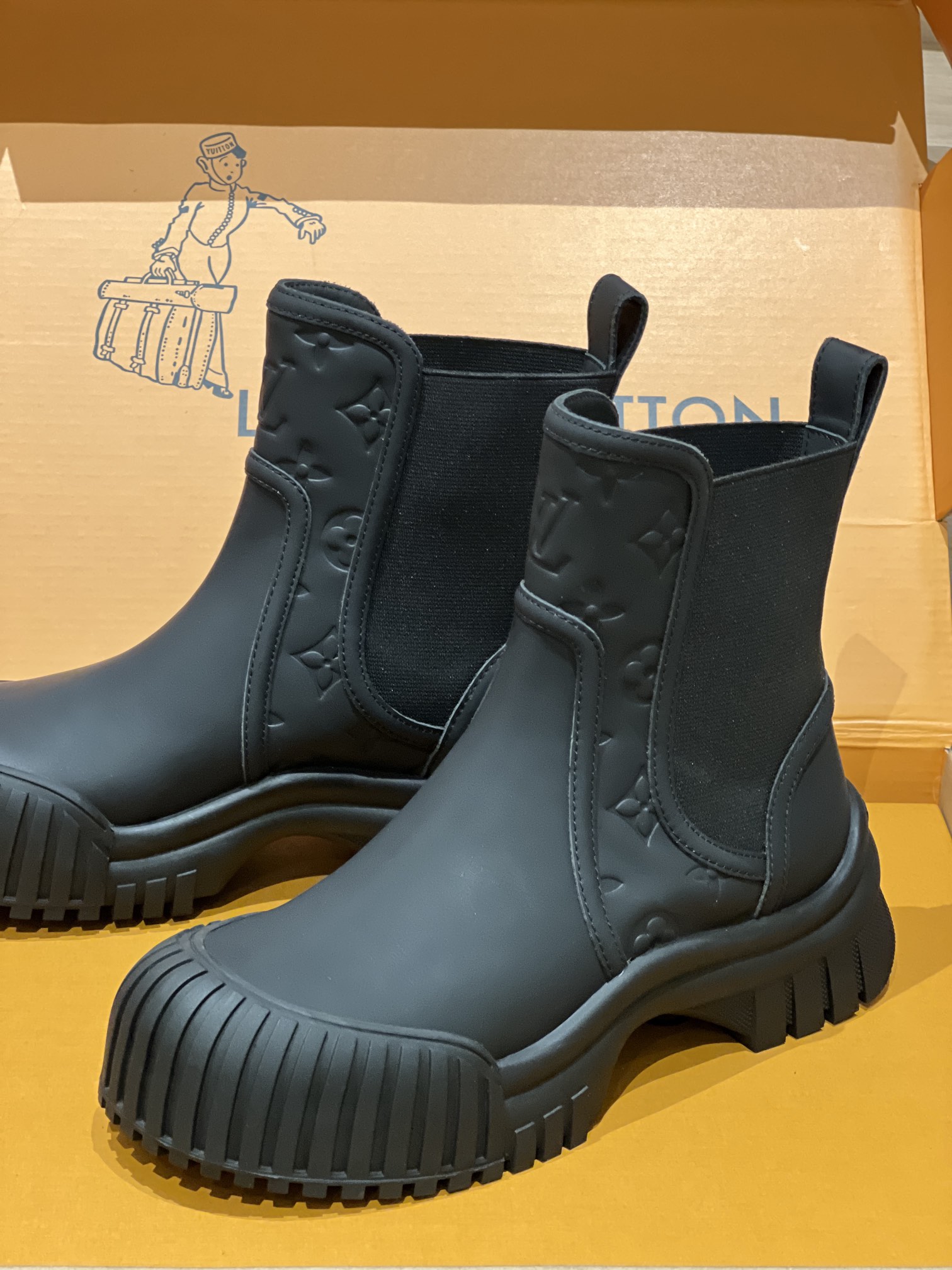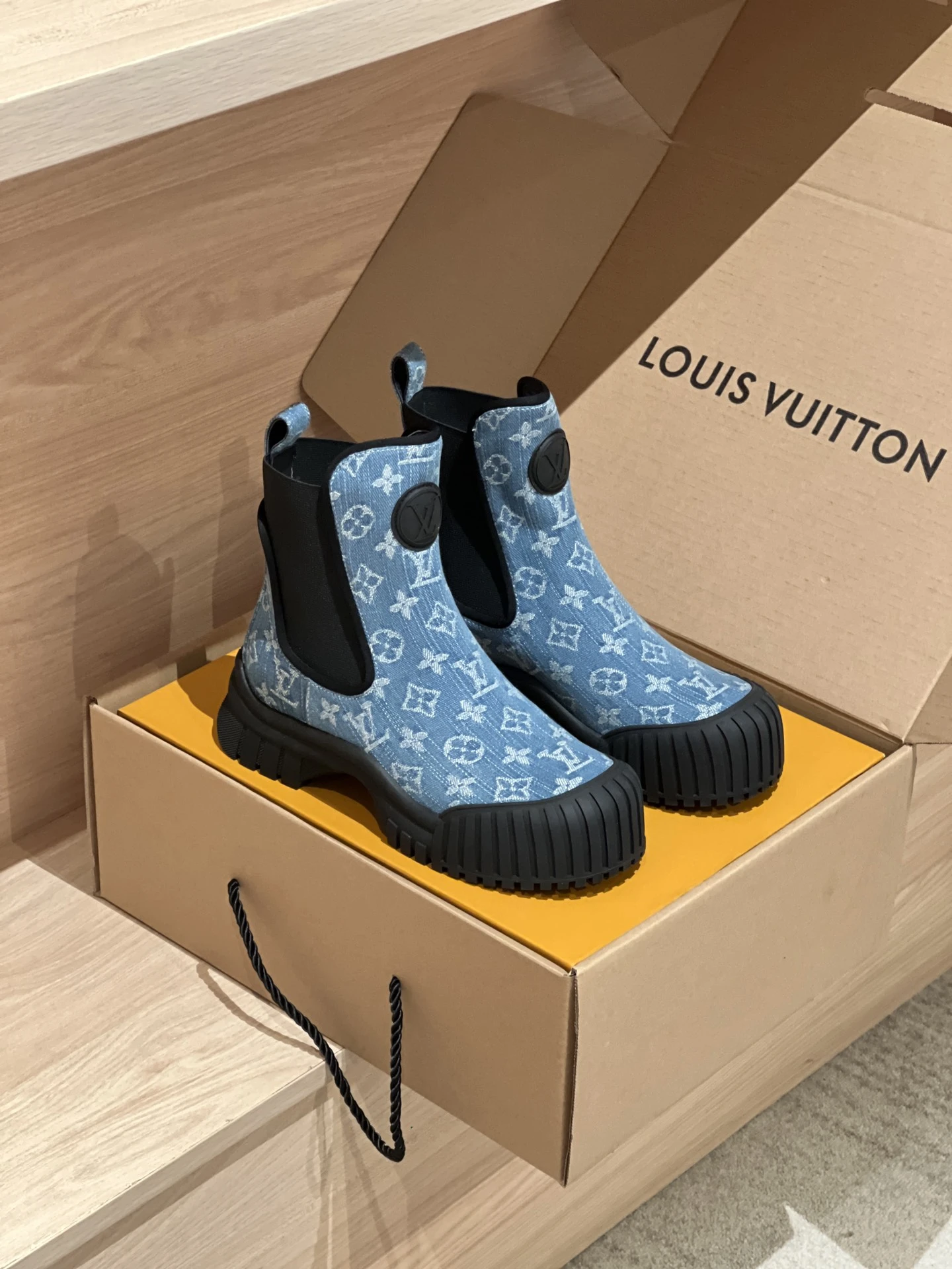 Стильные и современные ботинки Louis Vuitton Ruby — идеальный выбор для создания яркого образа в любое время года. Модель выполнена из натуральной кожи, украшенной тиснением фирменного монограмного узора Louis Vuitton. Контрастная черная эластичная вставка по бокам гарантирует комфортную посадку и легкость надевания.