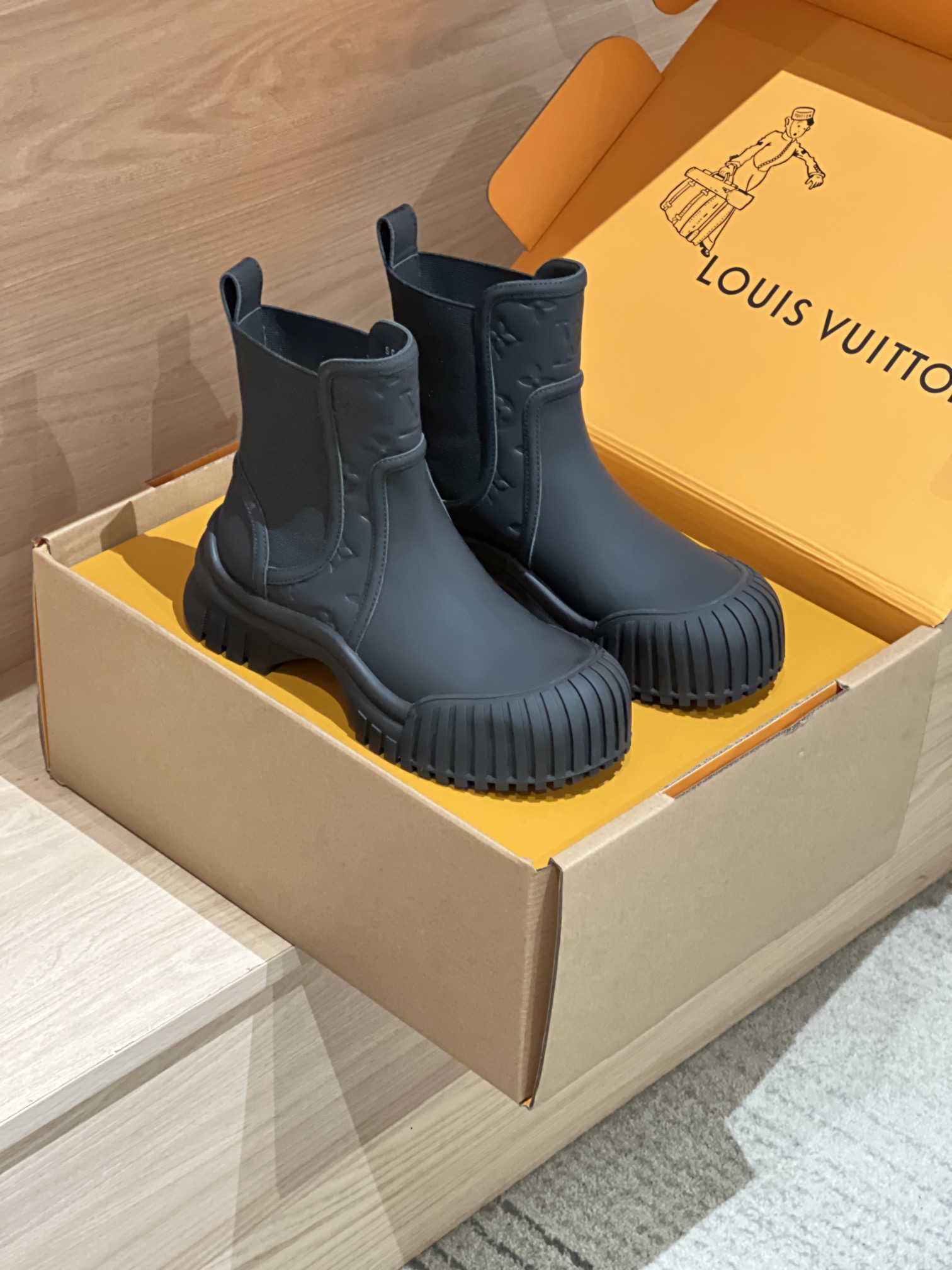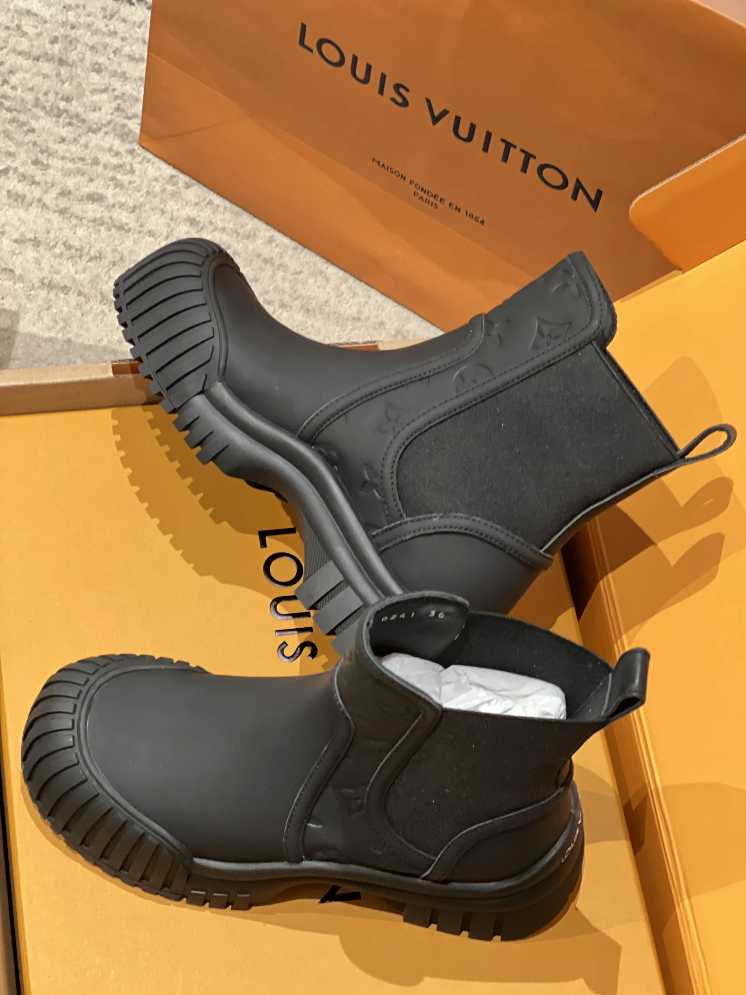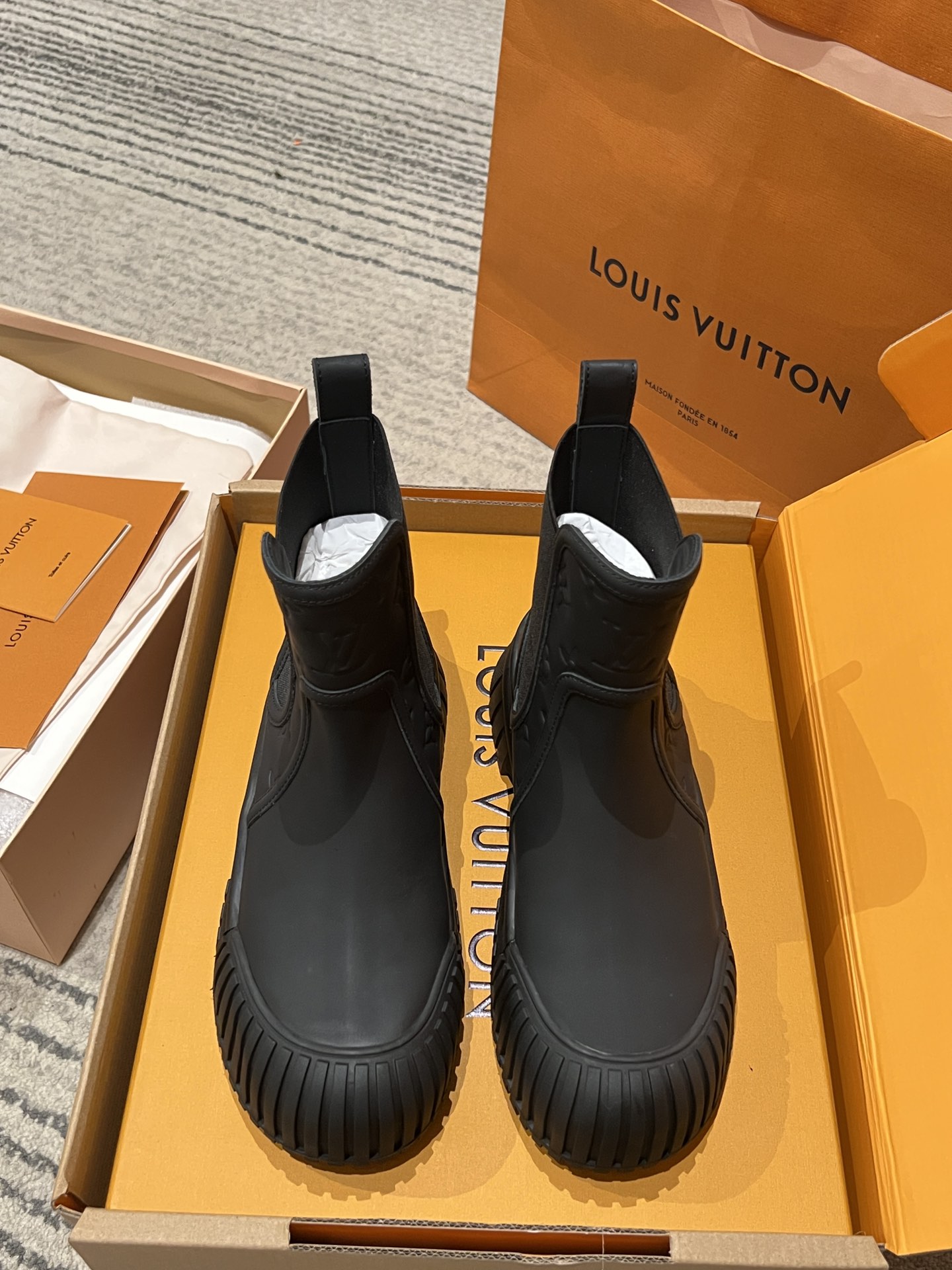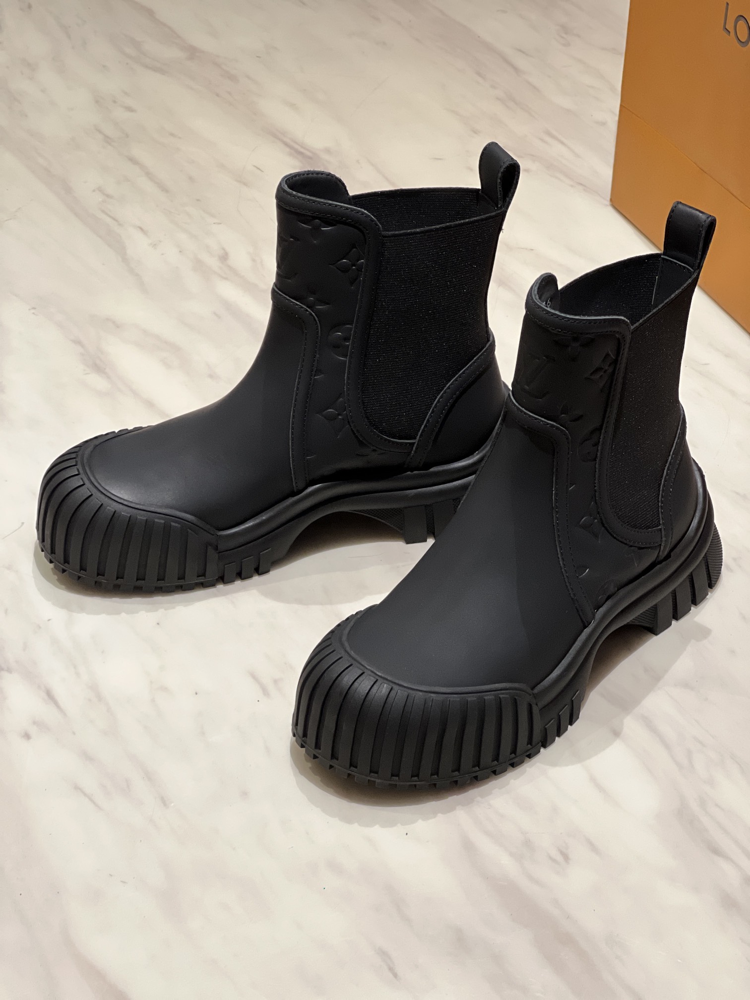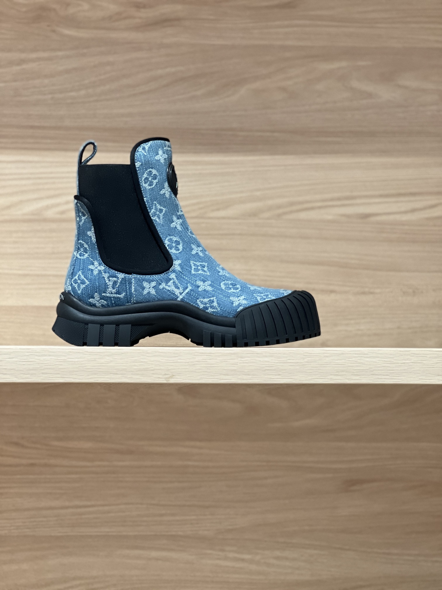 Стильные и современные ботинки Louis Vuitton Ruby — идеальный выбор для создания яркого образа в любое время года. Модель выполнена из натуральной кожи, украшенной тиснением фирменного монограмного узора Louis Vuitton. Контрастная черная эластичная вставка по бокам гарантирует комфортную посадку и легкость надевания.