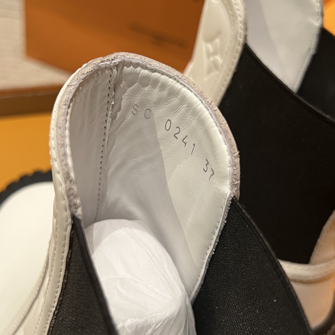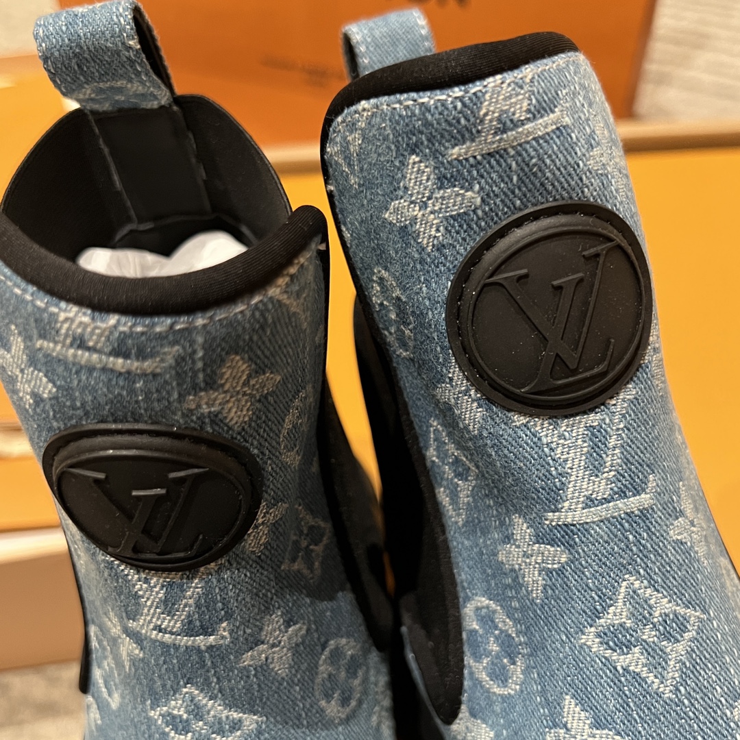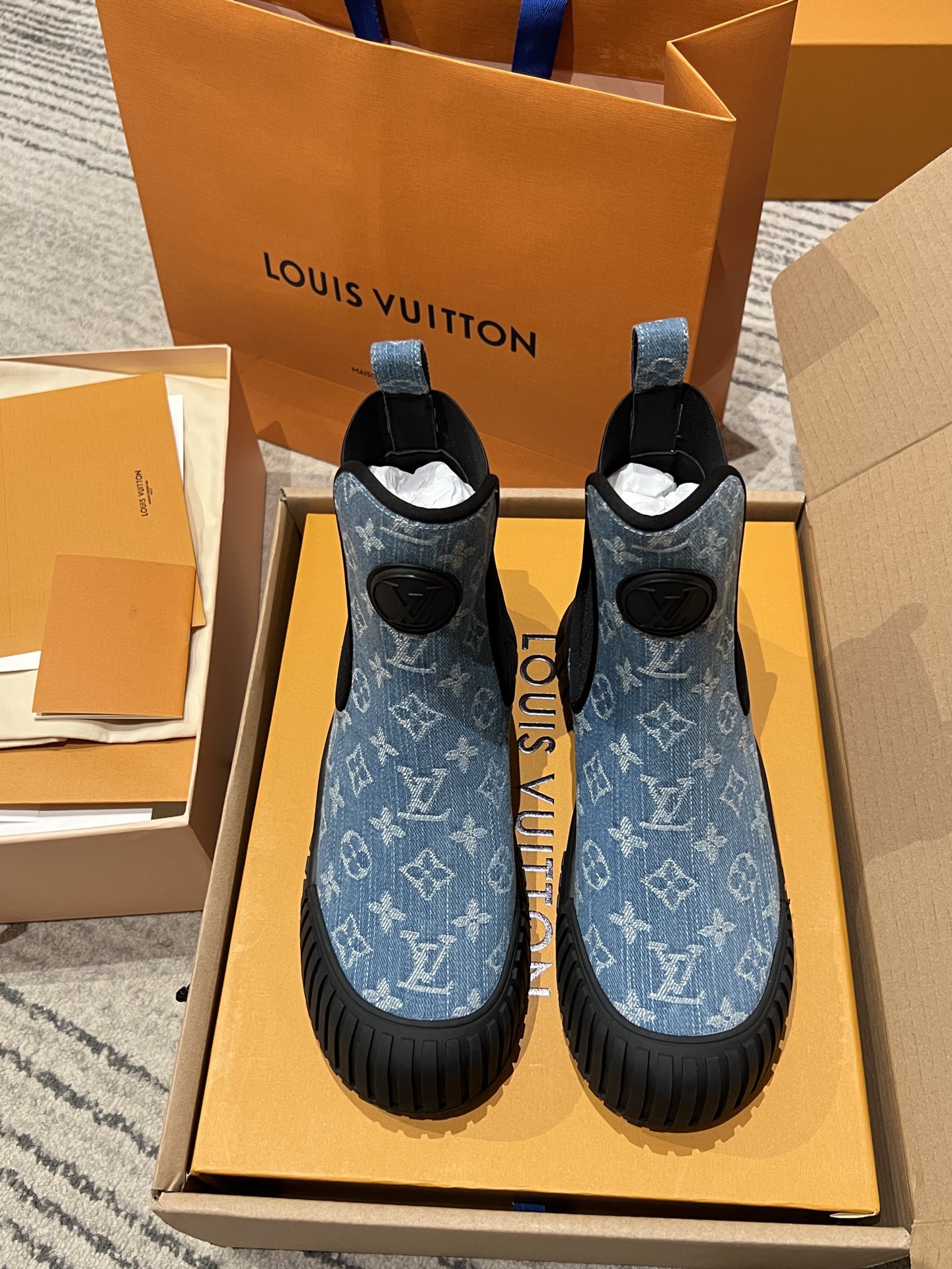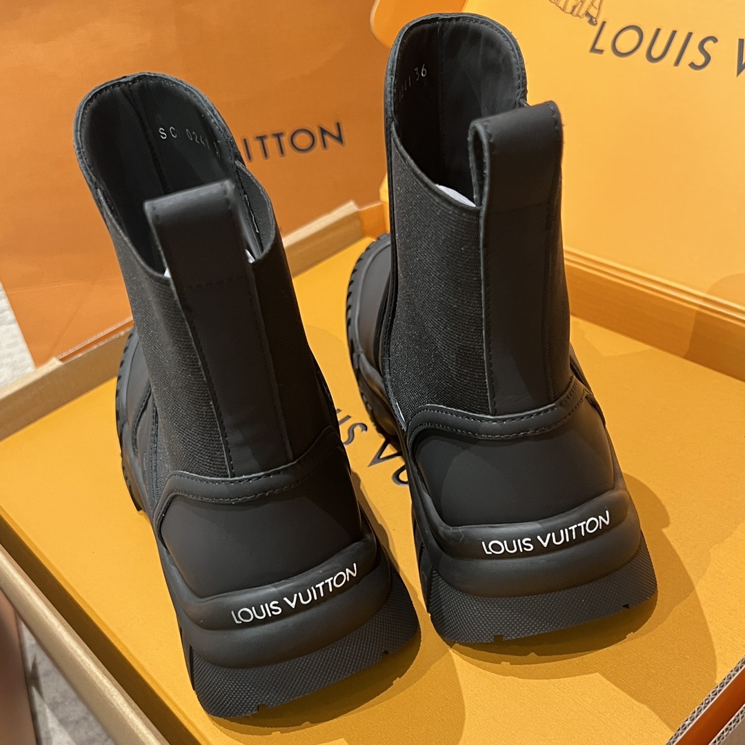 Стильные и современные ботинки Louis Vuitton Ruby — идеальный выбор для создания яркого образа в любое время года. Модель выполнена из натуральной кожи, украшенной тиснением фирменного монограмного узора Louis Vuitton. Контрастная черная эластичная вставка по бокам гарантирует комфортную посадку и легкость надевания.