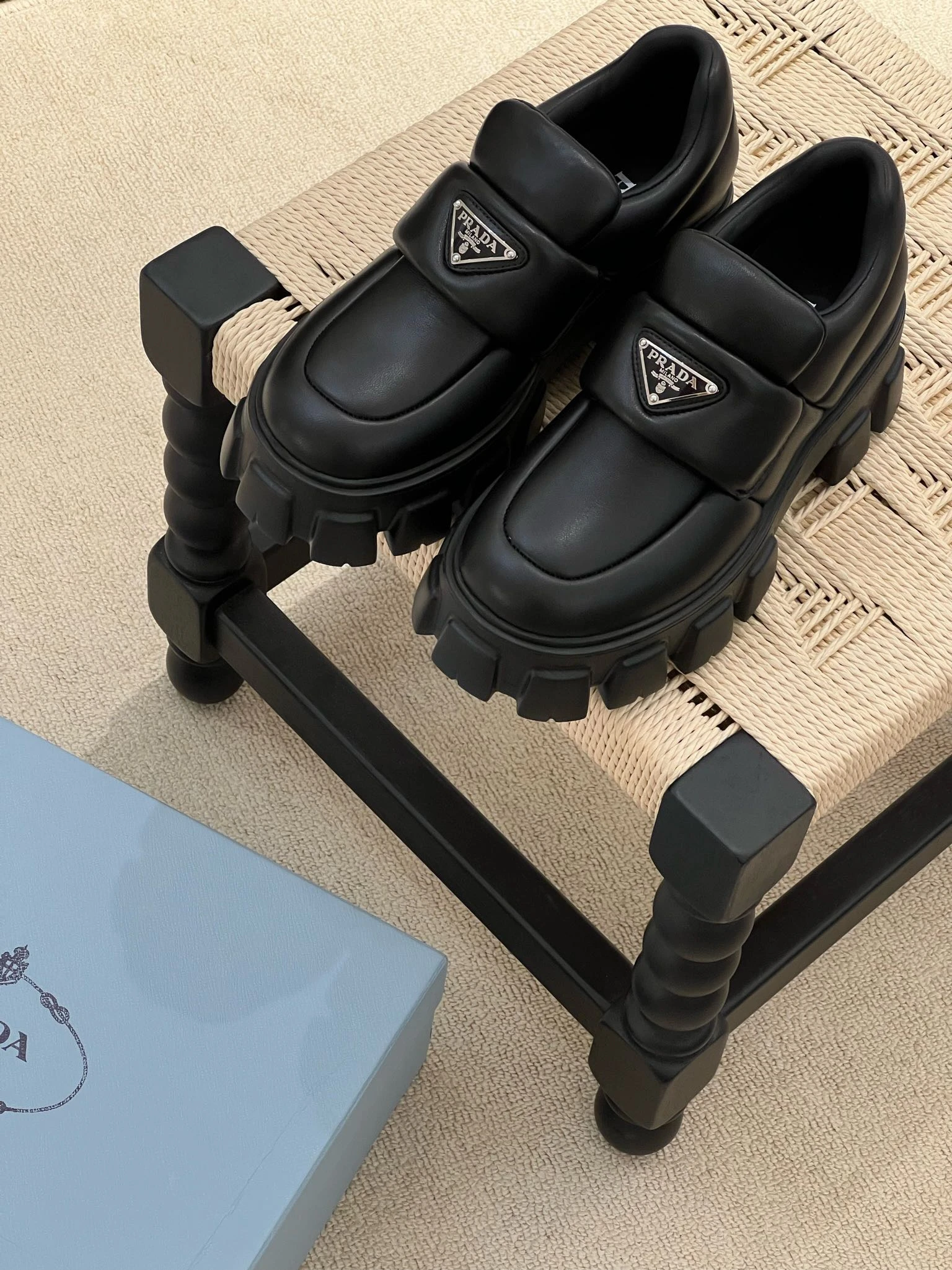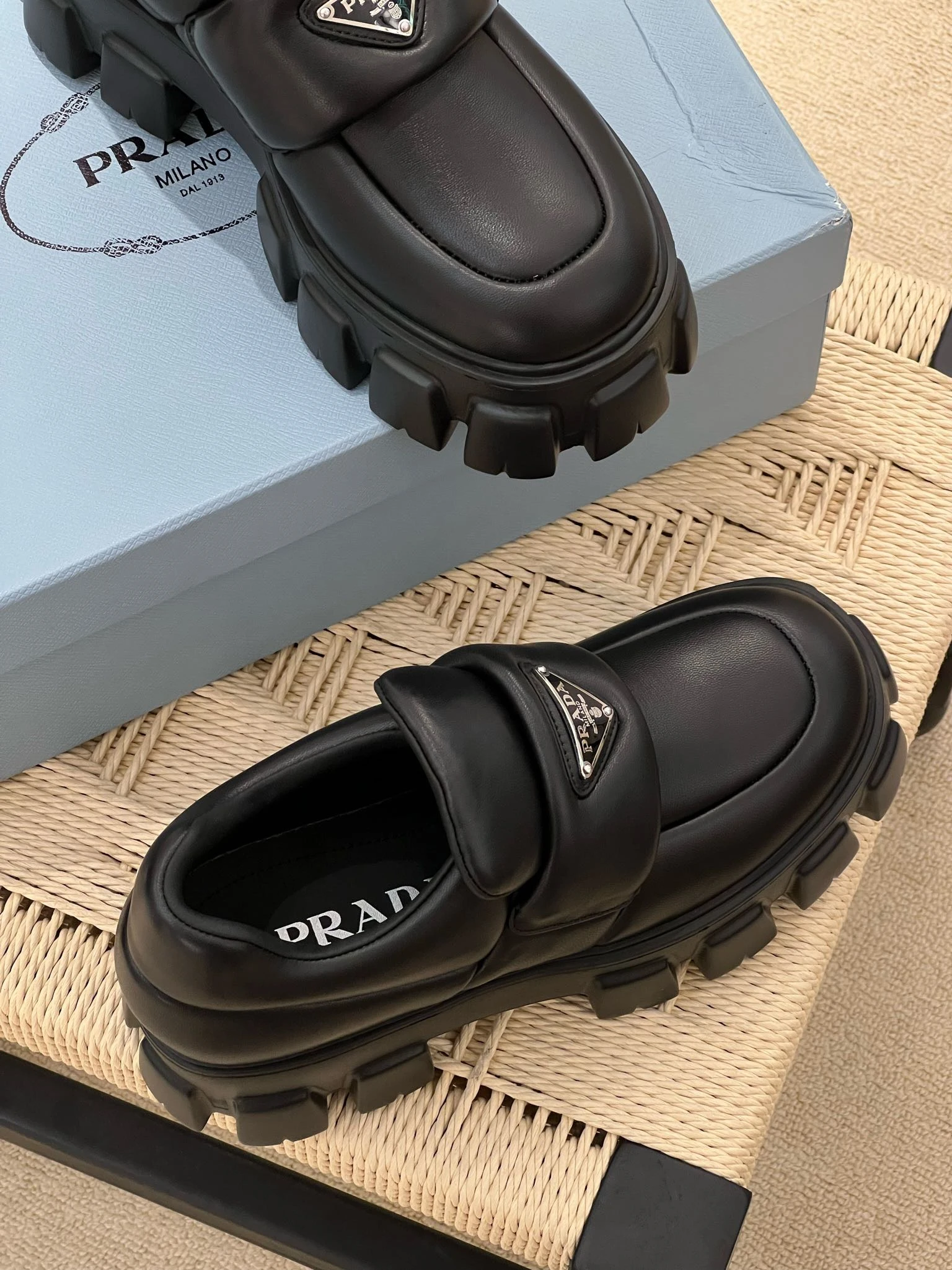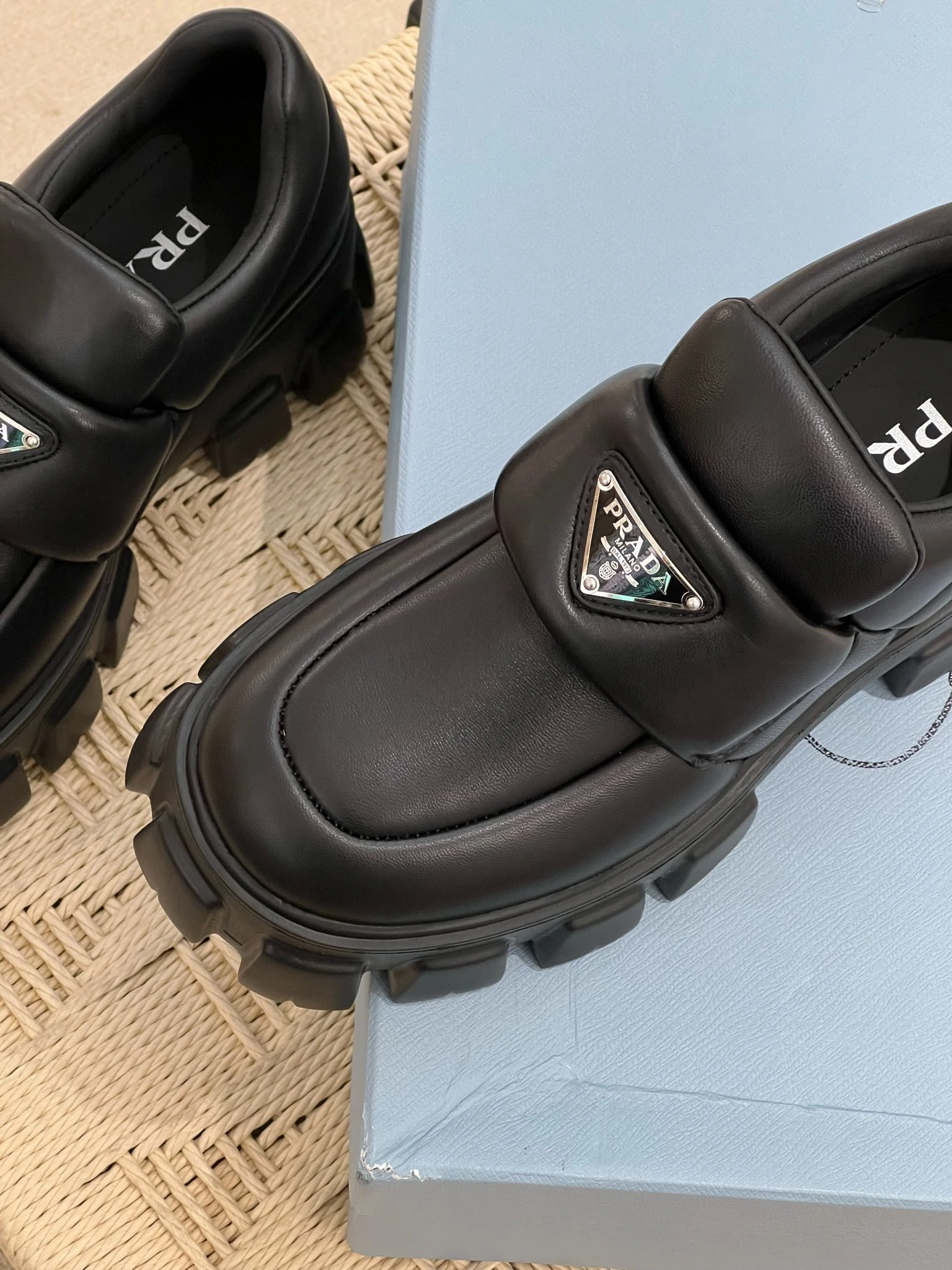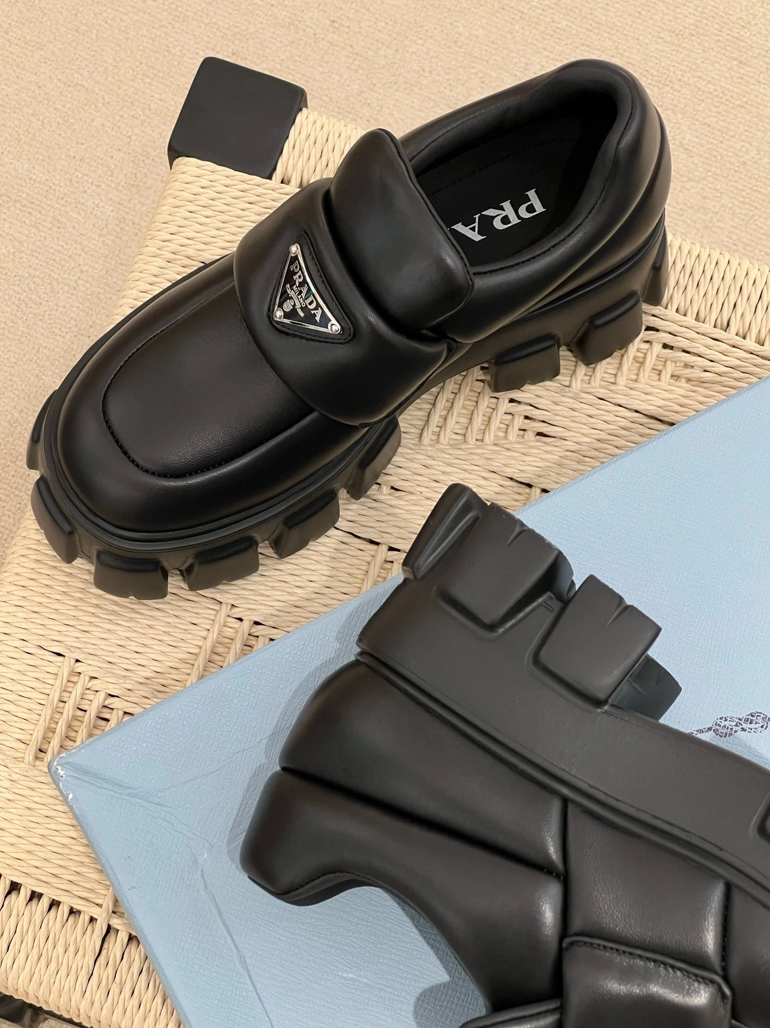Эти стильные ботинки от Prada — идеальное сочетание роскоши, комфорта и современного дизайна. Модель выполнена из натуральной кожи в классическом черном цвете, который легко впишется в любой гардероб. Объемная, массивная подошва придает обуви модный акцент и обеспечивает отличное сцепление и устойчивость. Декорированы фирменным металлическим логотипом Prada на верхней части, что подчеркивает премиальность изделия. Внутренняя отделка гарантирует комфорт даже при длительной носке.