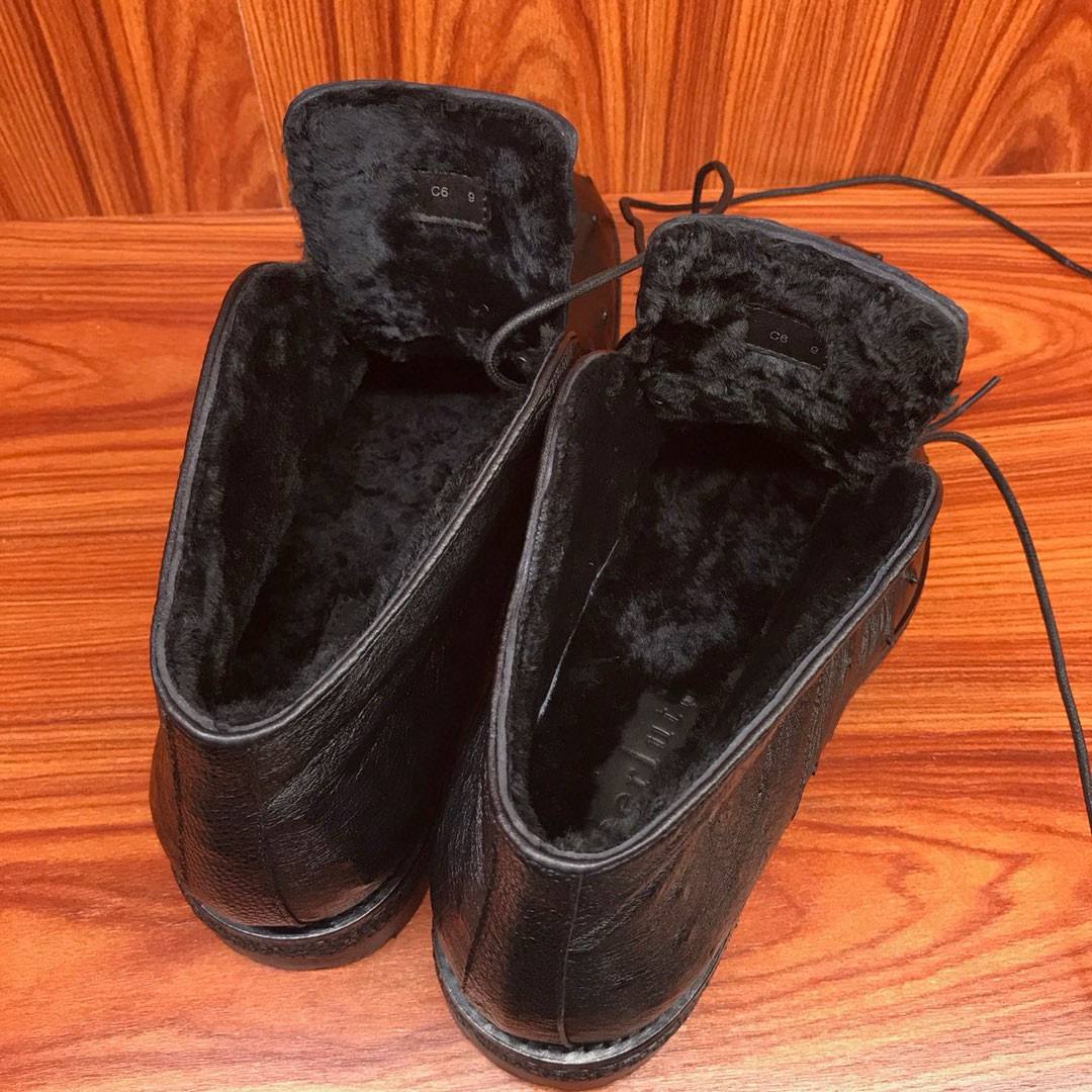 Изысканные ботинки от BERLUTI созданы для ценителей настоящей роскоши и уникального стиля. Модель выполнена из натуральной кожи страуса, которая отличается необыкновенной текстурой с характерными точечными узорами и повышенной износостойкостью. Глубокий черный цвет придает обуви элегантность и универсальность, позволяя сочетать ее как с классическим, так и с современным гардеробом.