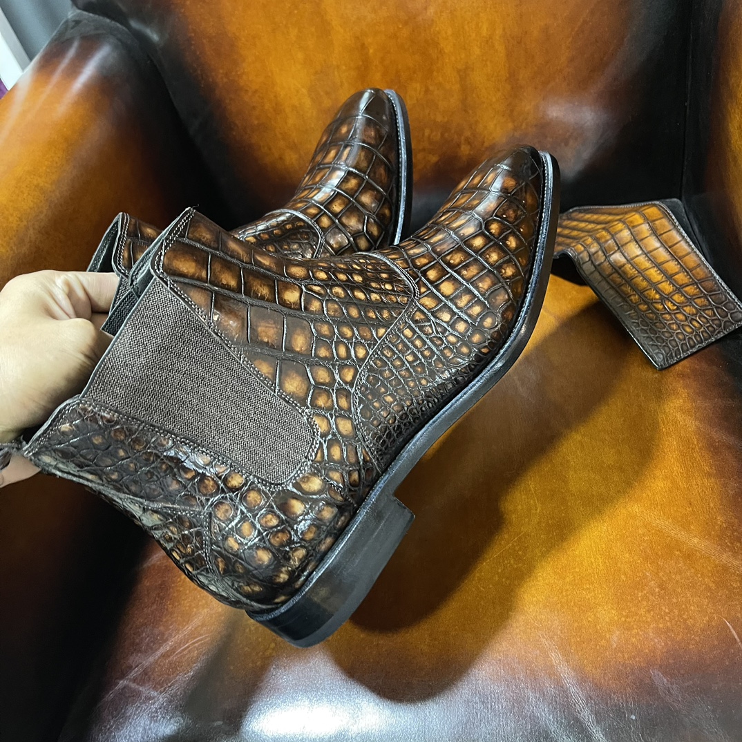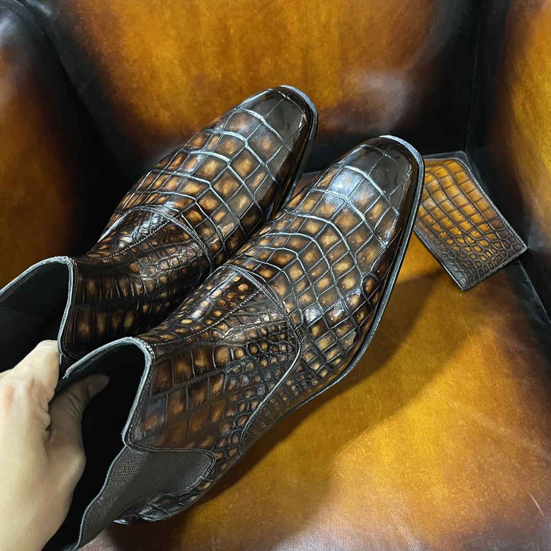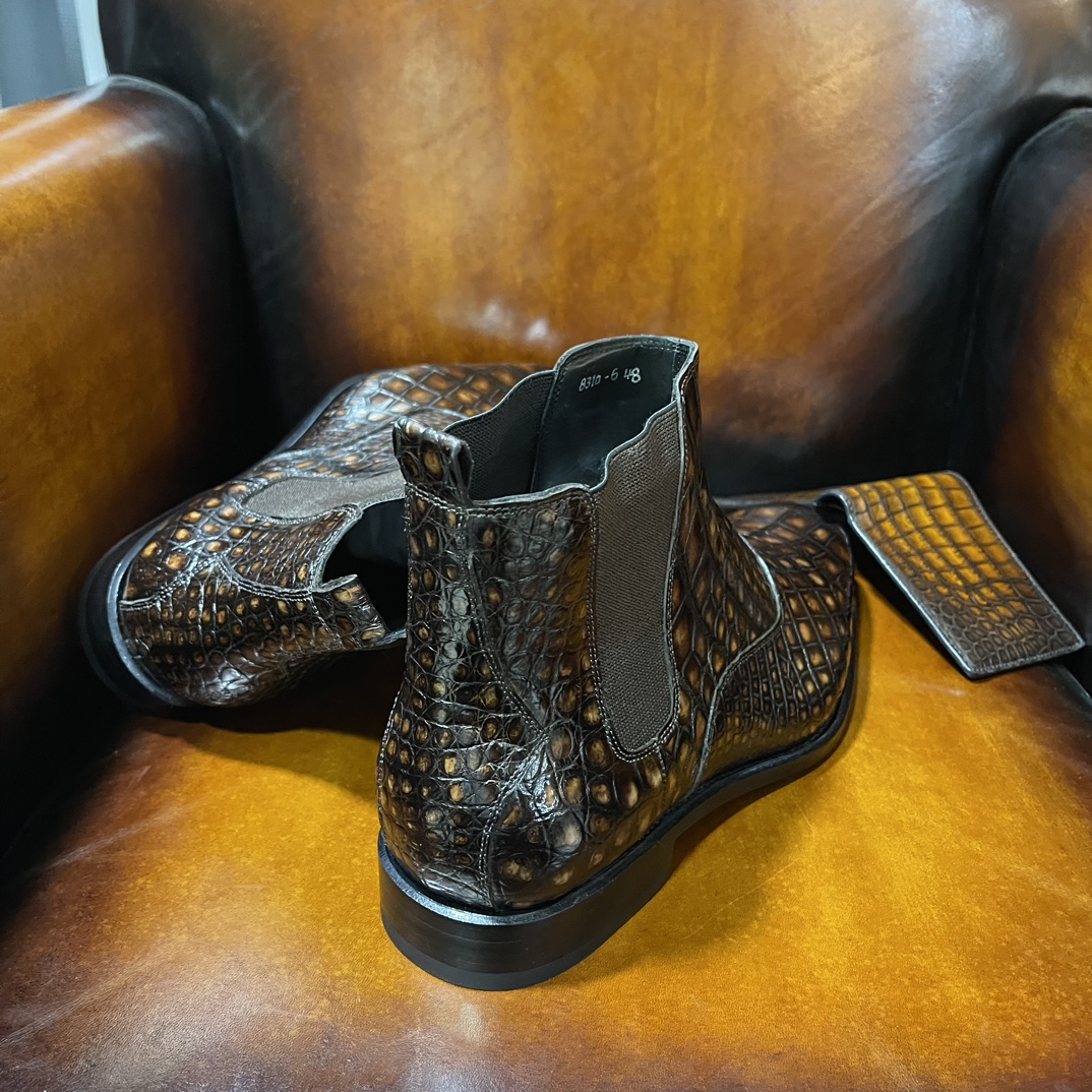 Эксклюзивные ботинки челси из нильского брюшка крокодила, представляют собой настоящий пример роскоши и мастерства. Использование кожи нильского крокодила придает обуви не только уникальный внешний вид, но и невероятную прочность.