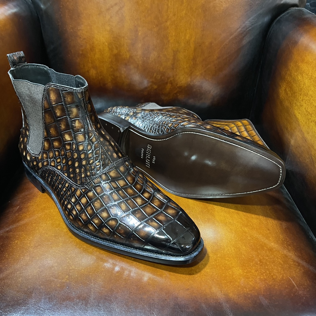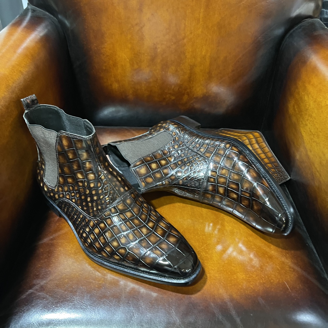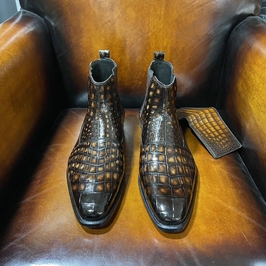 Эксклюзивные ботинки челси из нильского брюшка крокодила, представляют собой настоящий пример роскоши и мастерства. Использование кожи нильского крокодила придает обуви не только уникальный внешний вид, но и невероятную прочность.