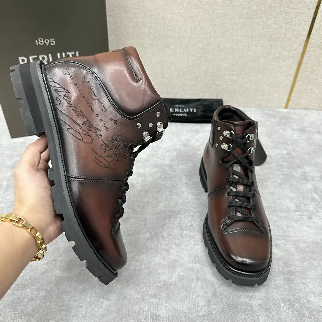Новые ботинки Berluti - это смелое сочетание брутальности и элегантности. Изготовленные из импортной итальянской кожи с узором и обработанные вручную.