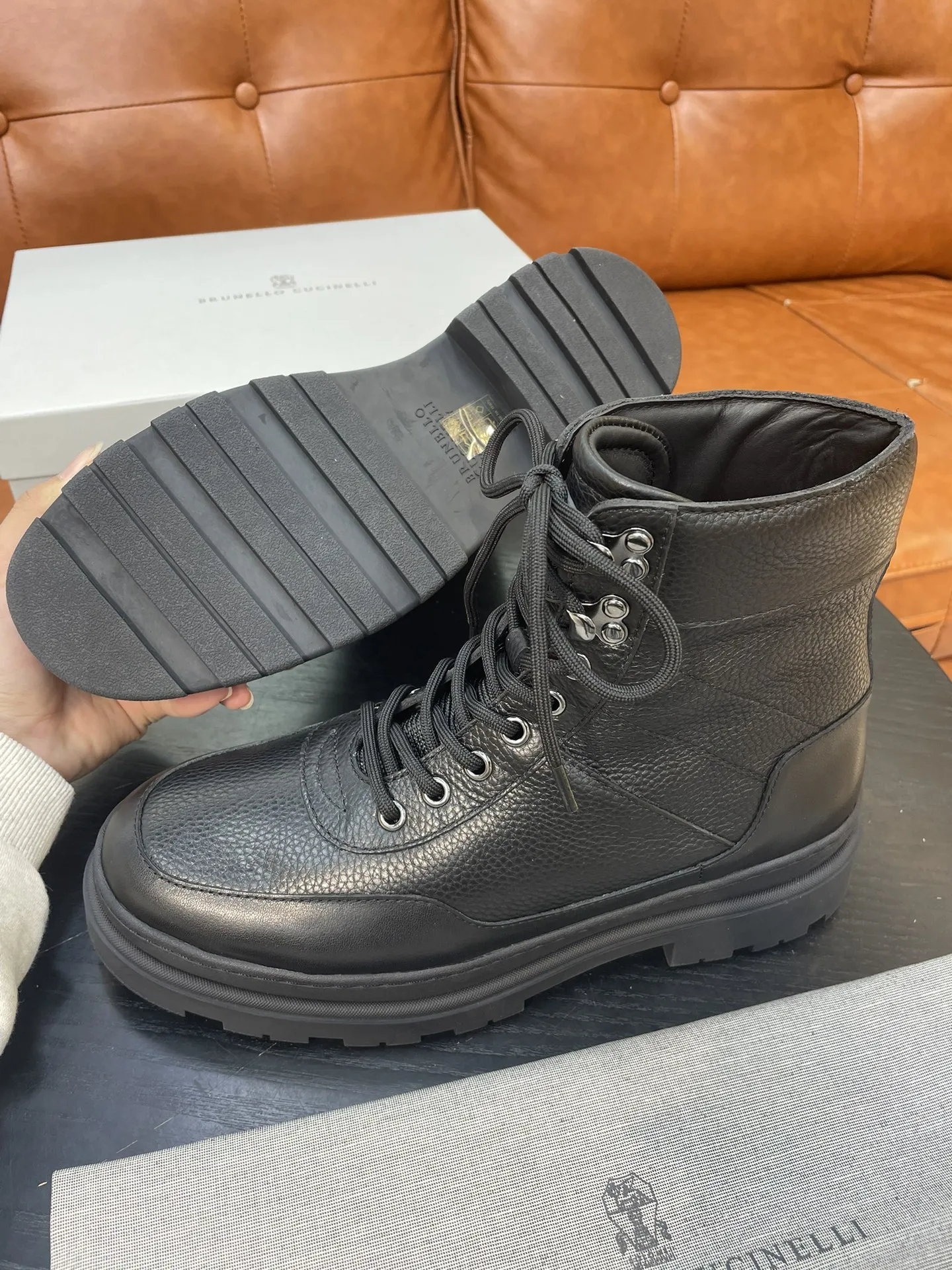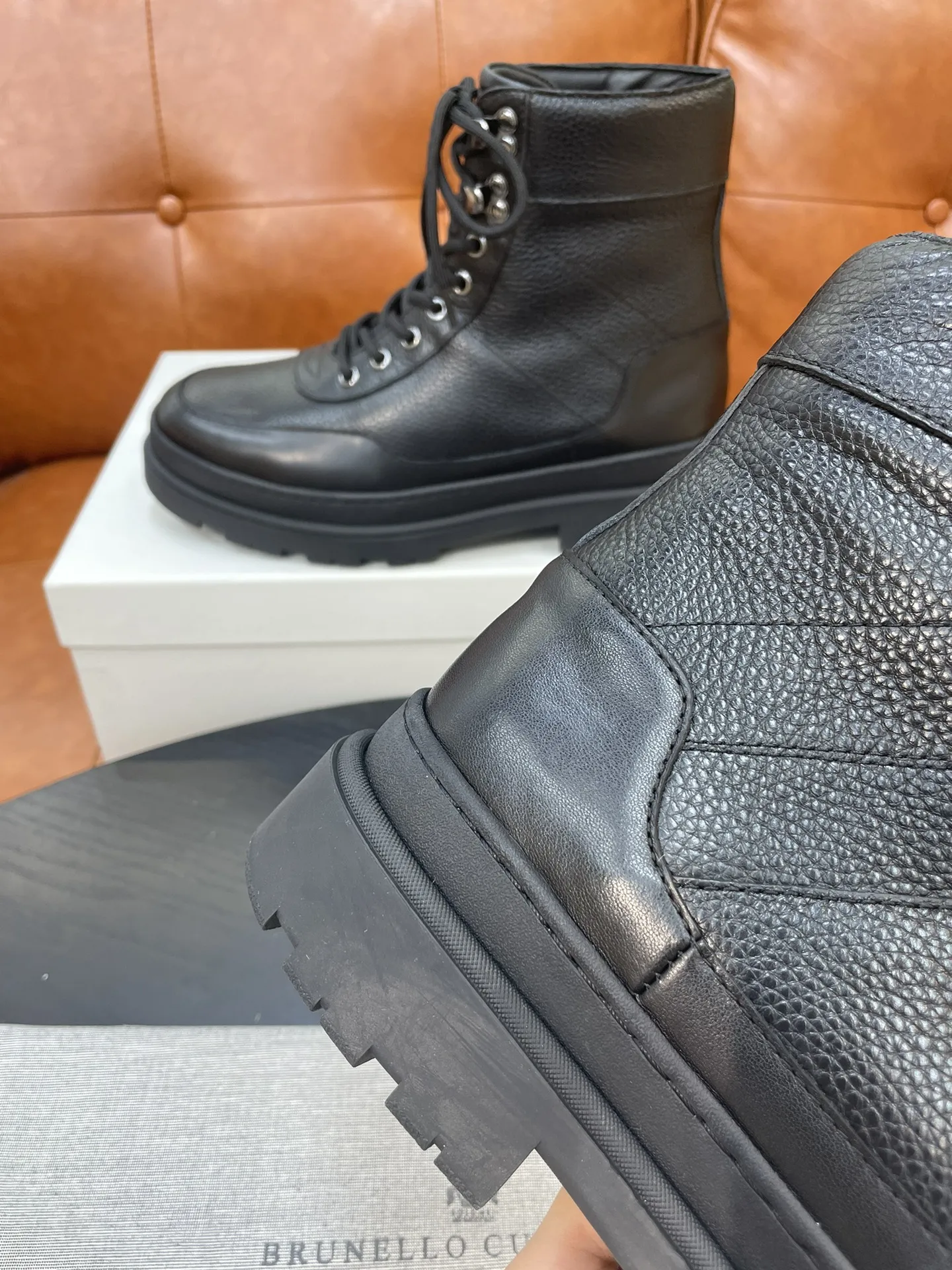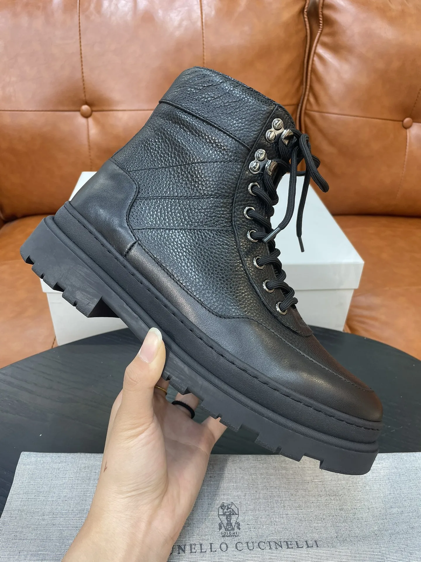 Новые зимние мужские ботинки Brunello Cucinelli 2024 представляют собой идеальное сочетание современного дизайна и традиционного мастерства. Изготовленные из мягкой телячьей кожи, они обеспечивают не только стильный внешний вид, но и высокую износостойкость. Эластичная ткань, применённая с обеих сторон голенища, облегчает процесс снятия, делая эти ботинки практичными для повседневной носки.