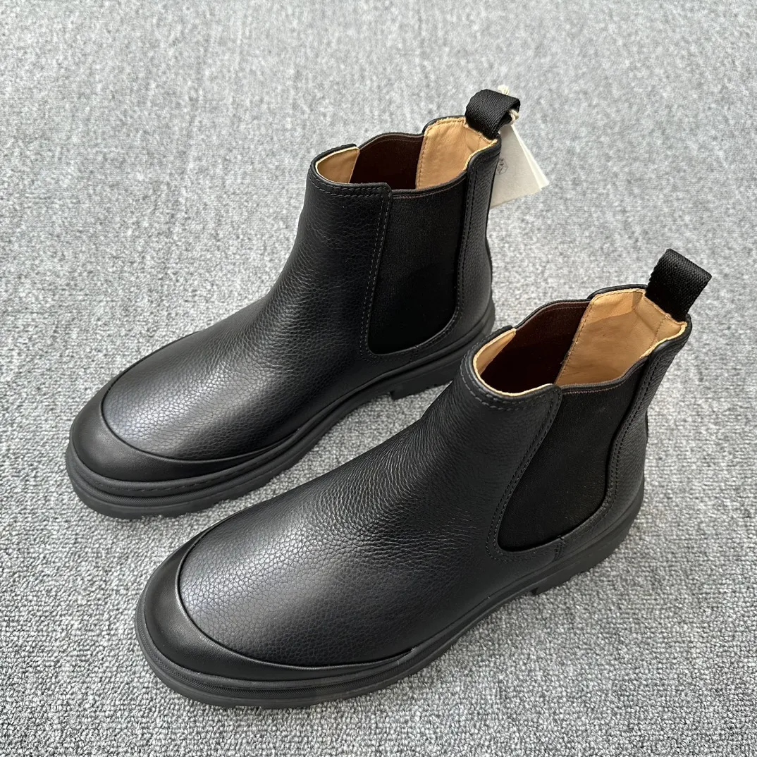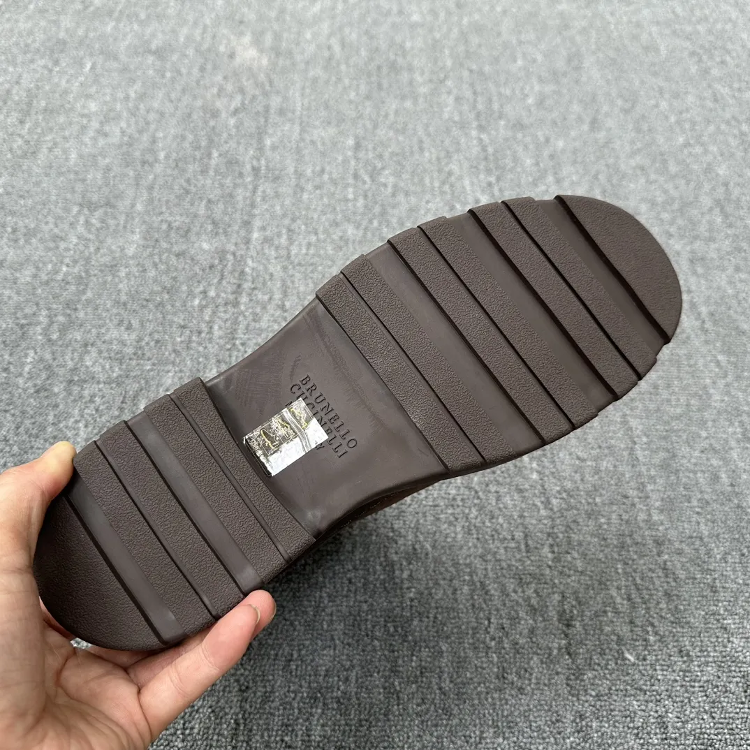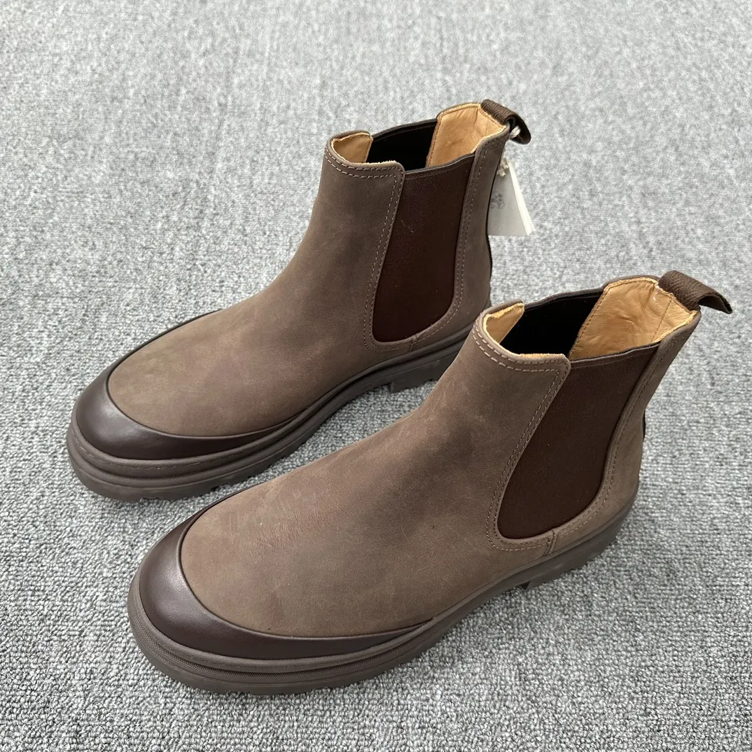 Итальянские мужские ботинки челси Brunello Cucinelli - новинка сезона осень-зима 2024 года. Изготовлены из высококачественной импортной коровьей замши класса А и цельнозерновой шагреневой коровьей кожи первого слоя. Двухслойная эластичная пряжа высокой плотности с обеих сторон облегчает надевание и снятие. Подкладка и стелька из телячьей кожи первого слоя, окрашенной в воду, впитывают пот, пропускают воздух и обеспечивают комфорт.