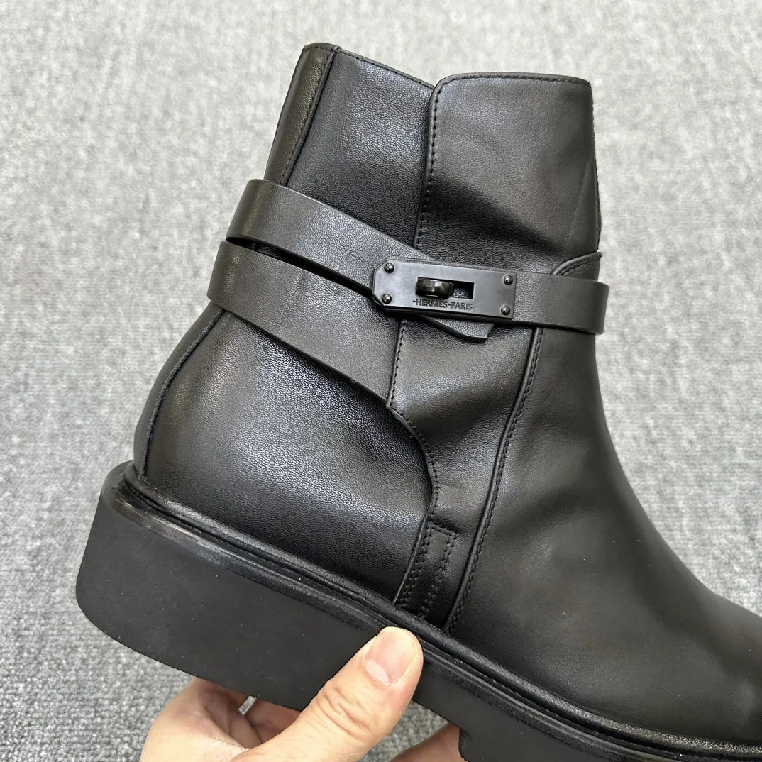 Новые высокие ботинки «Челси» от Hermes - это идеальное сочетание элегантности и комфорта. Верх из мягкой овчины, обеспечивает непревзойденную текстуру и долговечность. Эти ботинки не только стильные, но и удивительно удобные благодаря высококачественной телячьей подкладке, окрашенной в воде. Оригинальная легкая подошва исключает усталость при длительной носке, а продуманный дизайн с пряжкой делает их простыми в надевании и снятии.