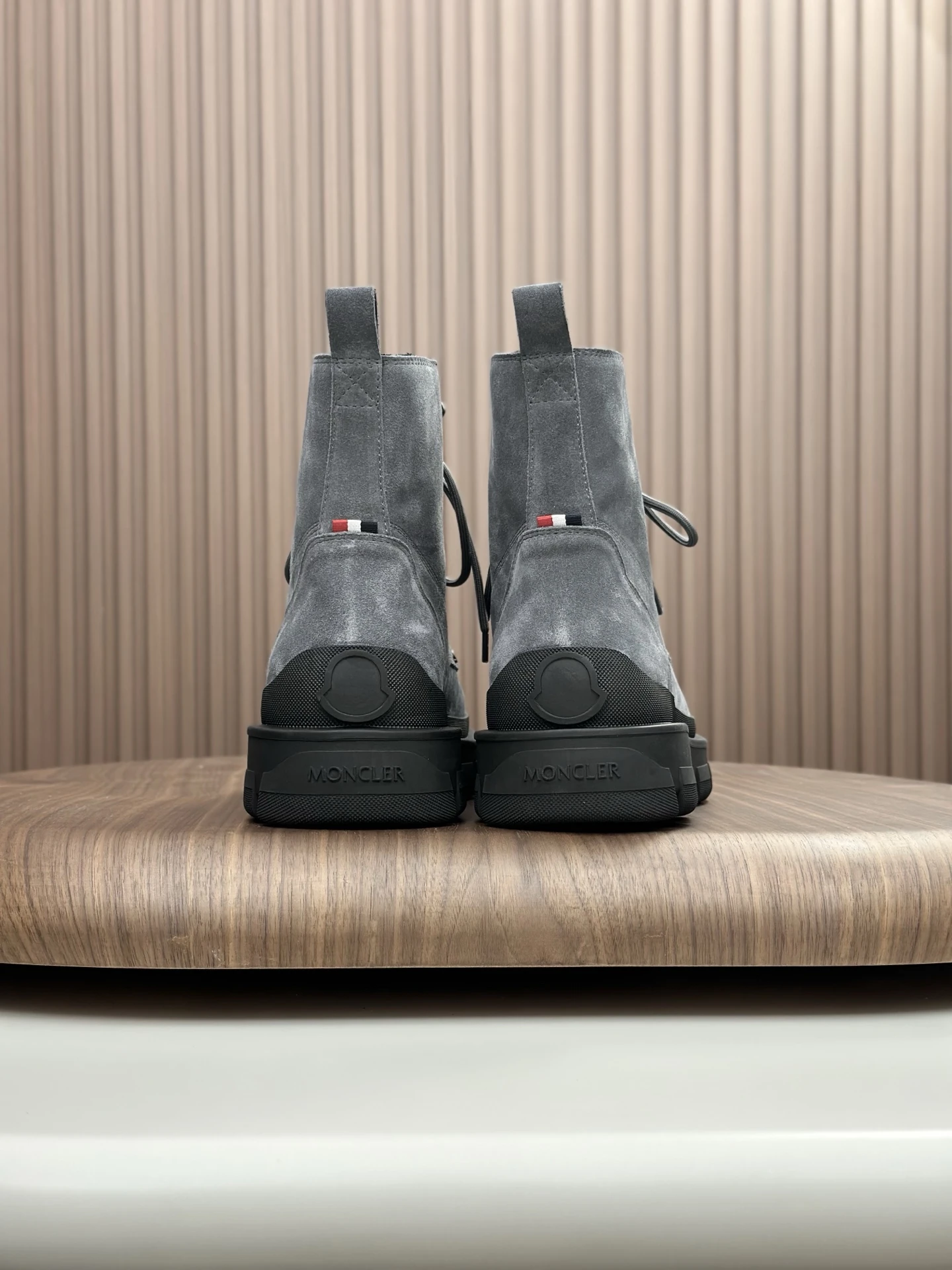 • Декор и фирменные элементы: тиснённый логотип Moncler на язычке, небольшая фирменная деталь на пятке, петля для удобного надевания.