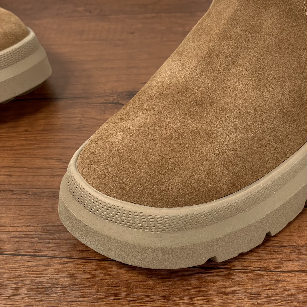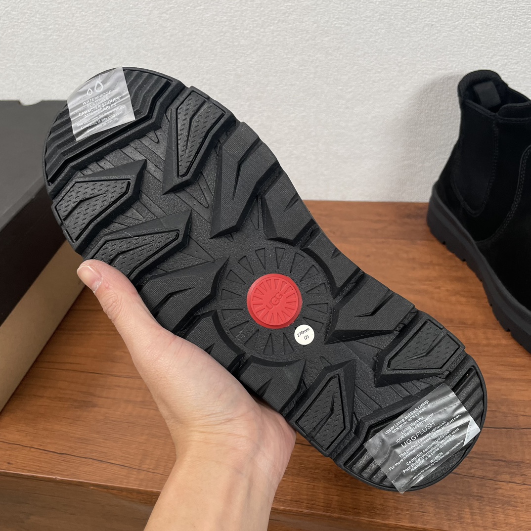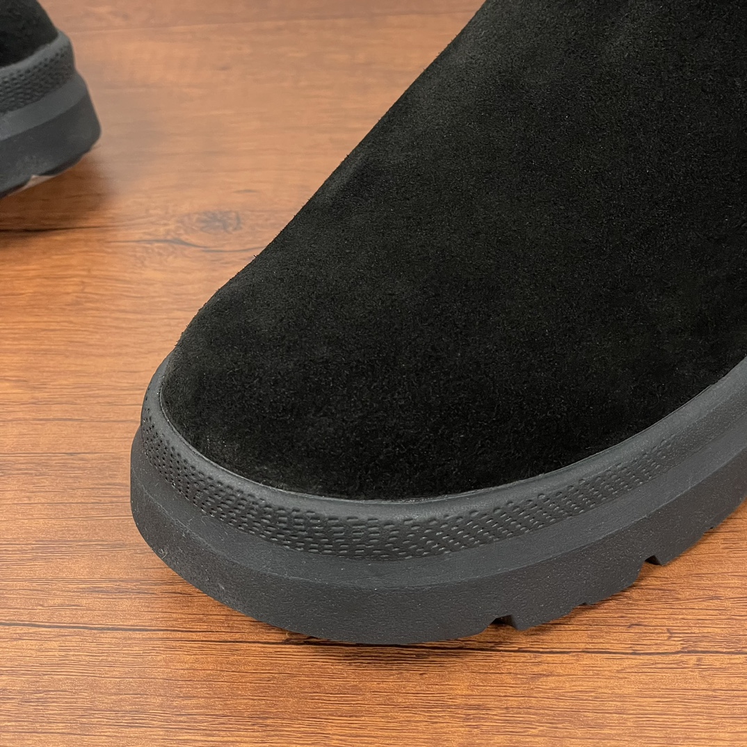 Представляем новые мужские зимние ботинки без шнуровки с меховой отделкой UGG. Изготовленные из высококачественной черной телячьей кожи и замши, они обеспечивают надежность и долговечность. Внутренняя подкладка из импортной шерсти обеспечивает тепло и уют даже в самые морозные дни, а высокоэластичный плетеный носок добавляет дополнительный комфорт.