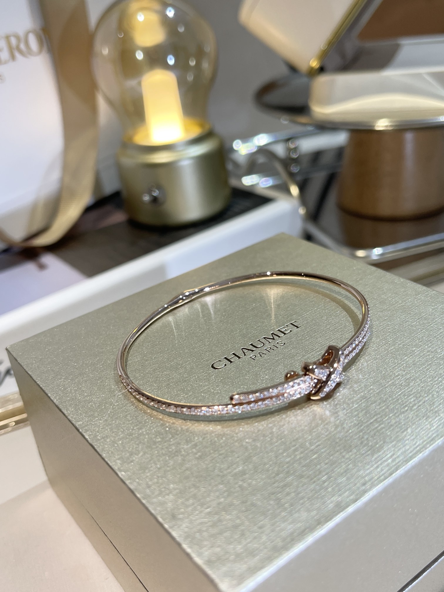 Браслет Chaumet розовое золото с бриллиантами. Основанная в 1780 году, компания Chaumet является одним из старейших ювелирных домов во Франции. Она известна своим богатым историческим наследием, тесными связями с французской знатью и эксклюзивными украшениями, которые носили многие королевские особы.