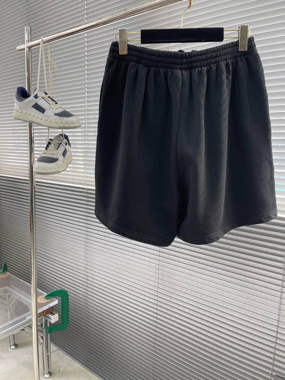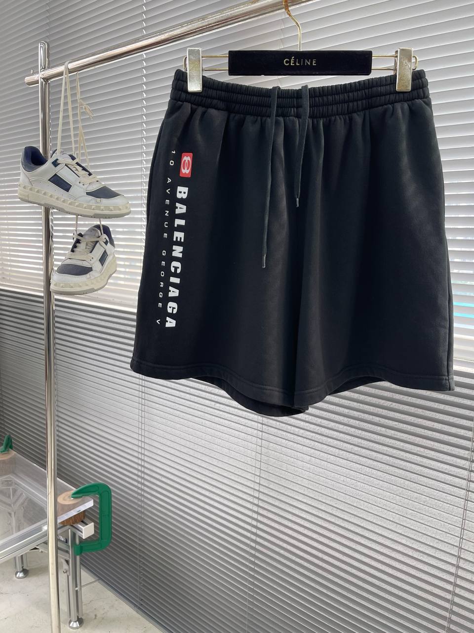 На правой штанине расположен фирменный вертикальный логотип Balenciaga, придающий образу узнаваемость и актуальный городской шарм. Эластичный пояс с регулировкой на шнурке гарантирует идеальную посадку. Лаконичный дизайн делает эти шорты универсальным выбором для отдыха, спорта и прогулок.