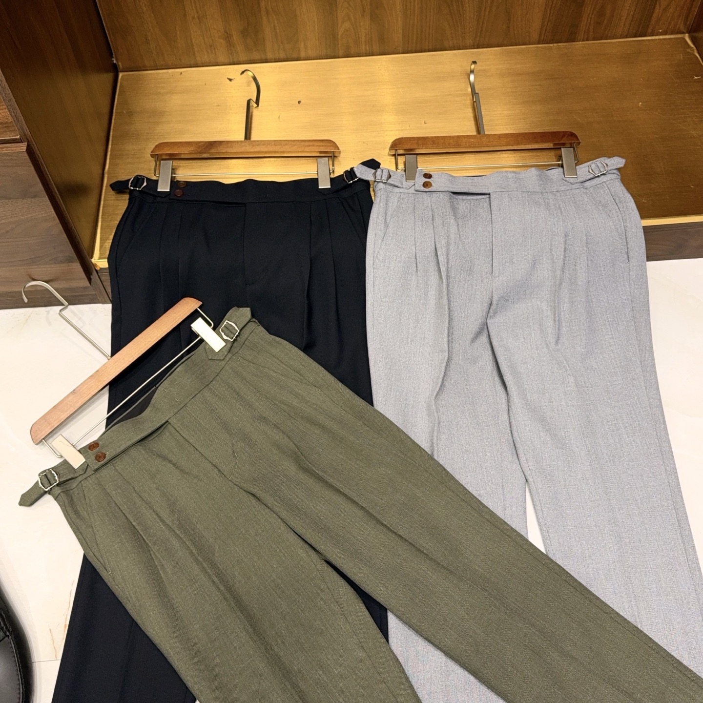 Мужские брюки BRIONI – безупречное сочетание элегантности и современного стиля. Представлены три классические модели, выполненные в базовых универсальных оттенках: светло-серый, оливковый и темно-синий. Каждая пара изготовлена из высококачественной шерстяной ткани с добавлением эластана, что обеспечивает идеальную посадку, комфорт на протяжении всего дня и сохранение формы.