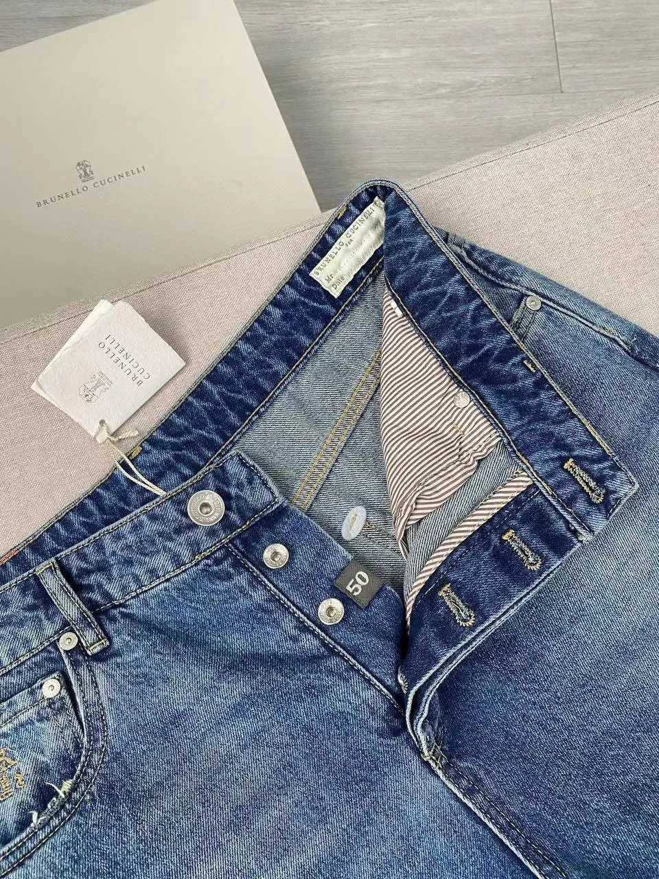 Представляем мужские джинсы от BRUNELLO CUCINELLI — идеальное сочетание классического стиля и современного комфорта. Эти брюки выполнены из высококачественного денима, обладающего плотной текстурой и ретро-оттенком, который придаёт образу уникальность и характер. Ткань отличается прочностью, сохраняя при этом все традиционные характеристики денима. Эти джинсы BC станут универсальным элементом вашего гардероба, идеально подходя для повседневного ношения или более стильных выходов.