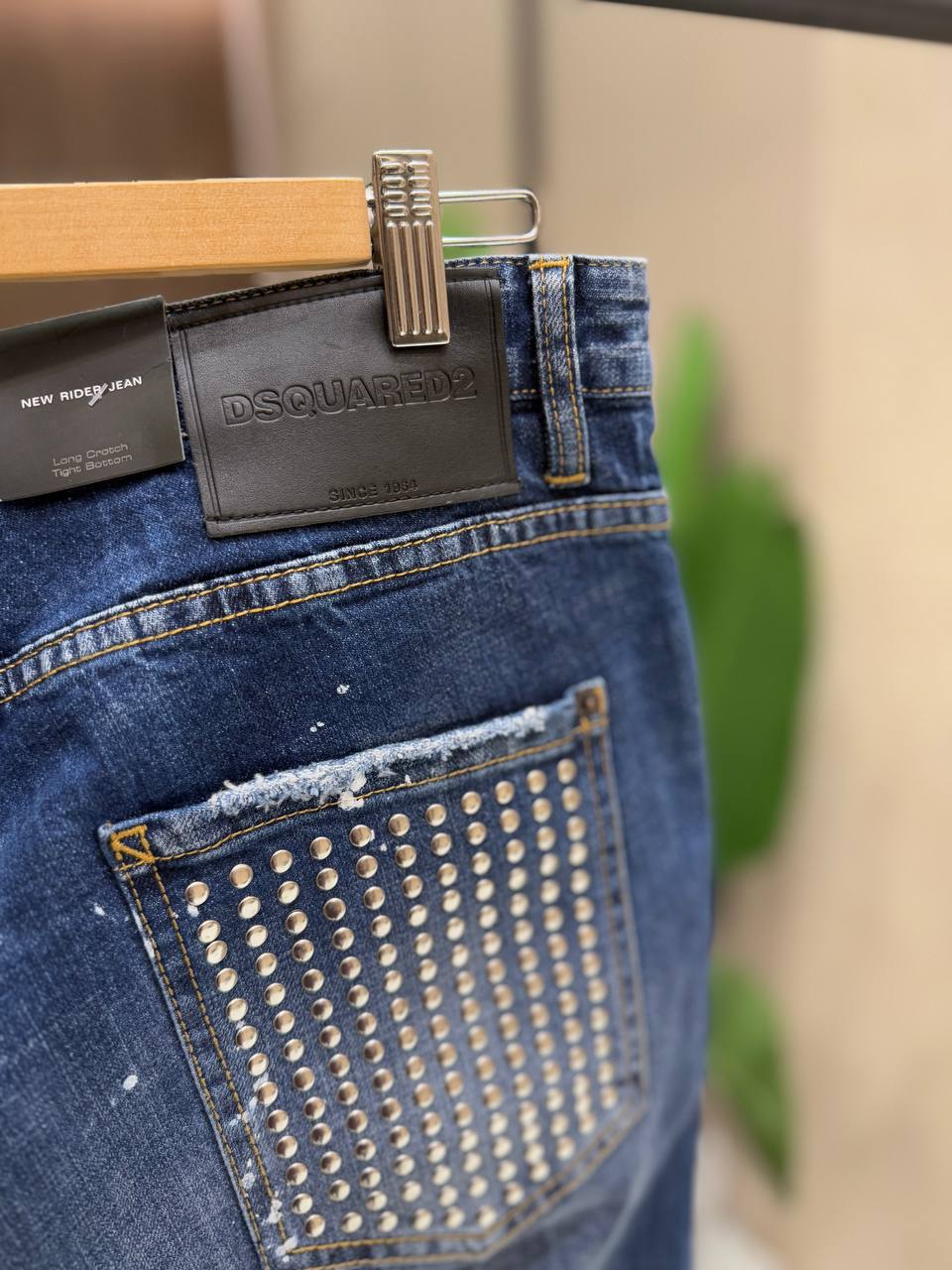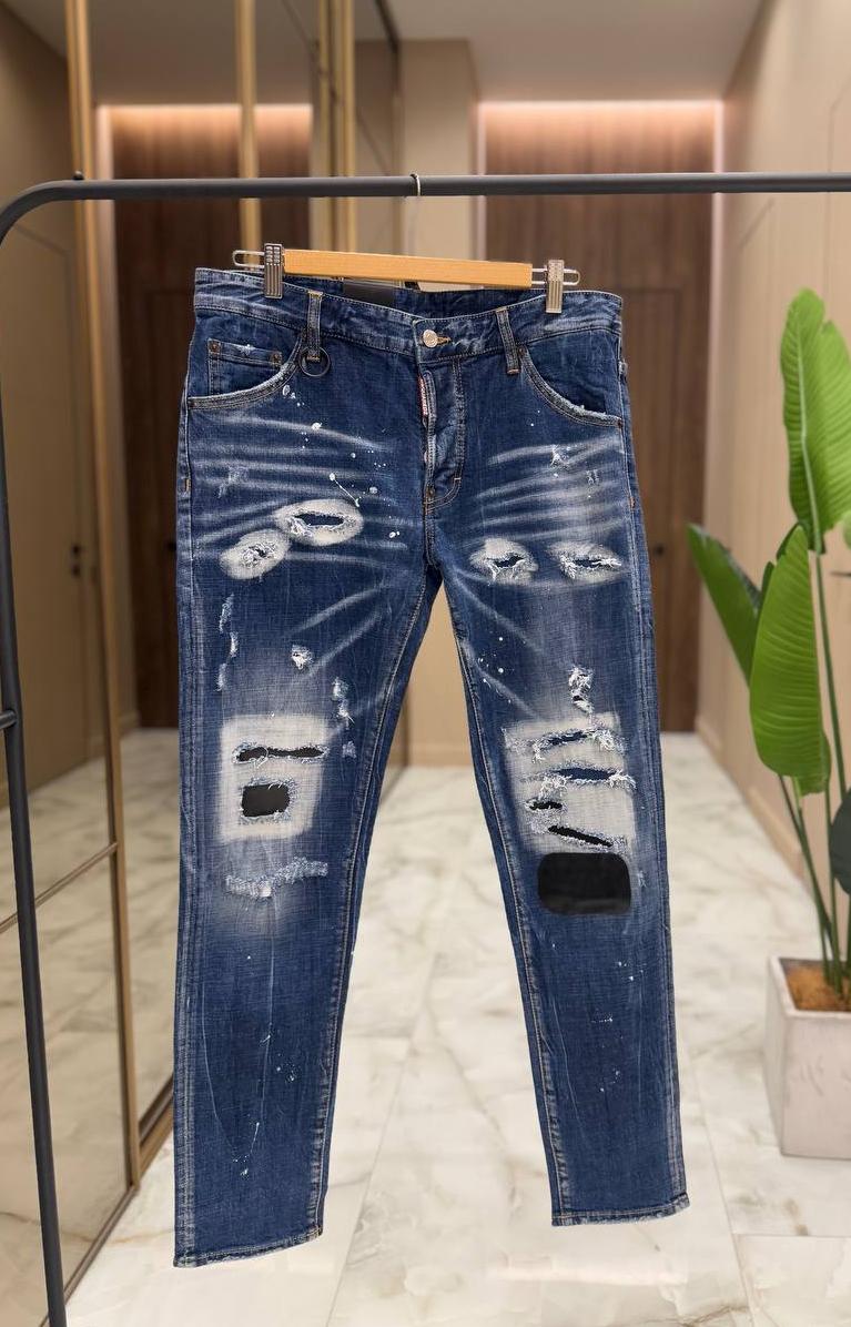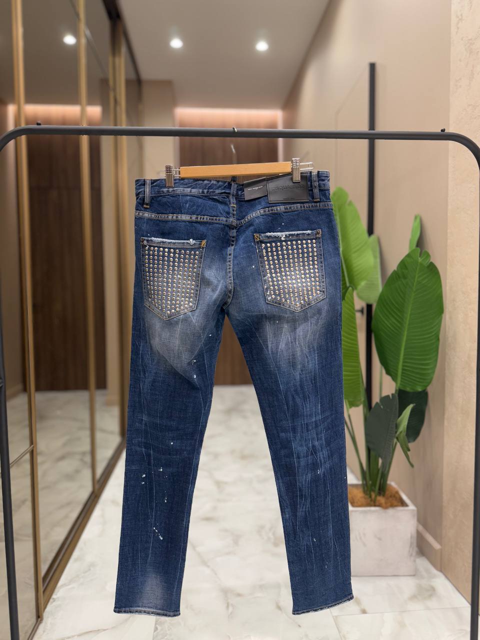Мужские джинсы DSQUARED — это стильная модель с эффектом потертостей и следов краски, которая имеет уникальный и актуальный вид. Эти джинсы идеально подойдут для создания неформального образа: с ними легко создавать комфортный и модный лук. Особое внимание привлекают задние карманы, украшенные декоративными заклёпками, которые добавляют изюминку и характер модели. Крой штанов подчеркивает силуэт, а качественный деним обеспечивает долговечность и удобство в носке.