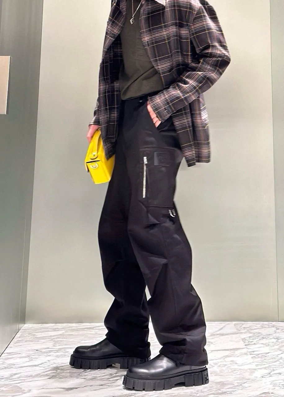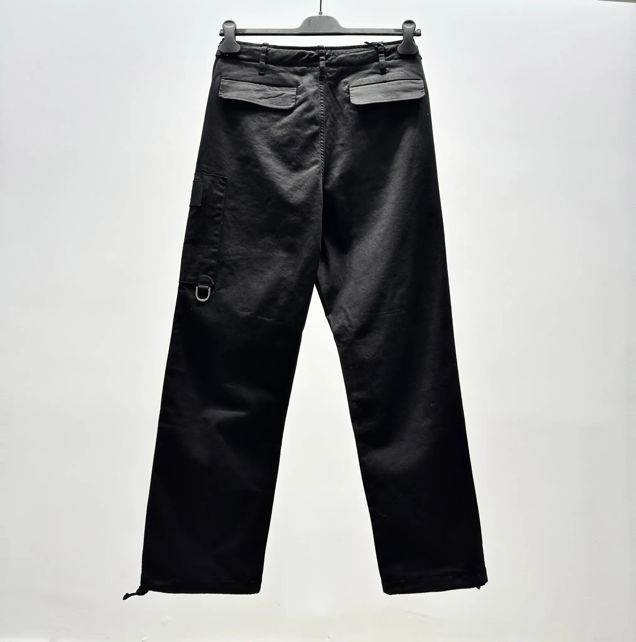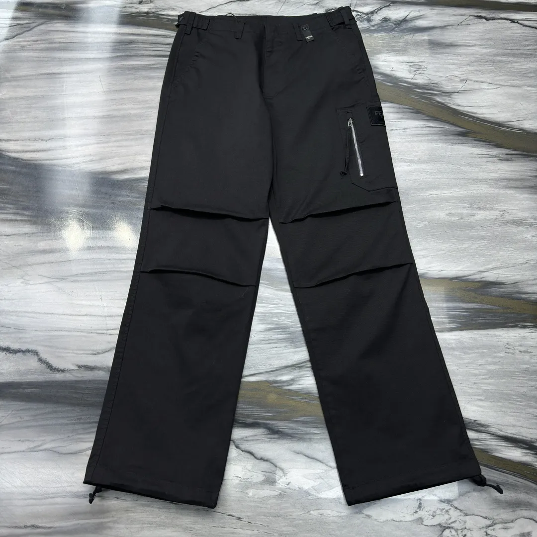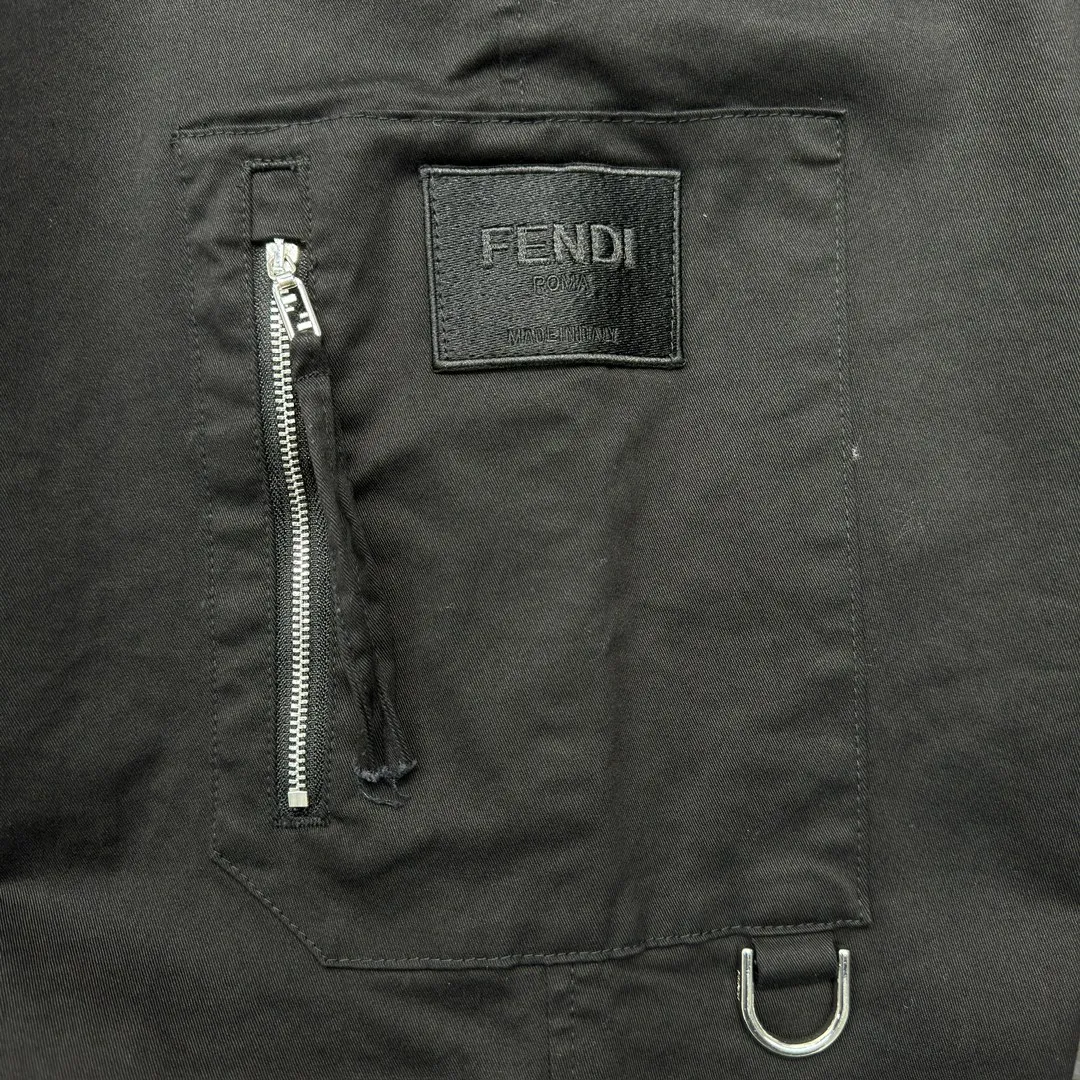 Эти черные брюки-карго Fendi представляют собой стильный и функциональный элемент гардероба. Практичные боковые карманы и прорезной карман с клапаном сзади добавляют универсальности, позволяя удобно хранить мелочи. Регулируемые завязки по бокам и пуговицы на талии позволяют регулировать брюки по фигуре, что делает их подходящими для разных типов телосложения. Потайная застежка-молния придает модели аккуратный вид.