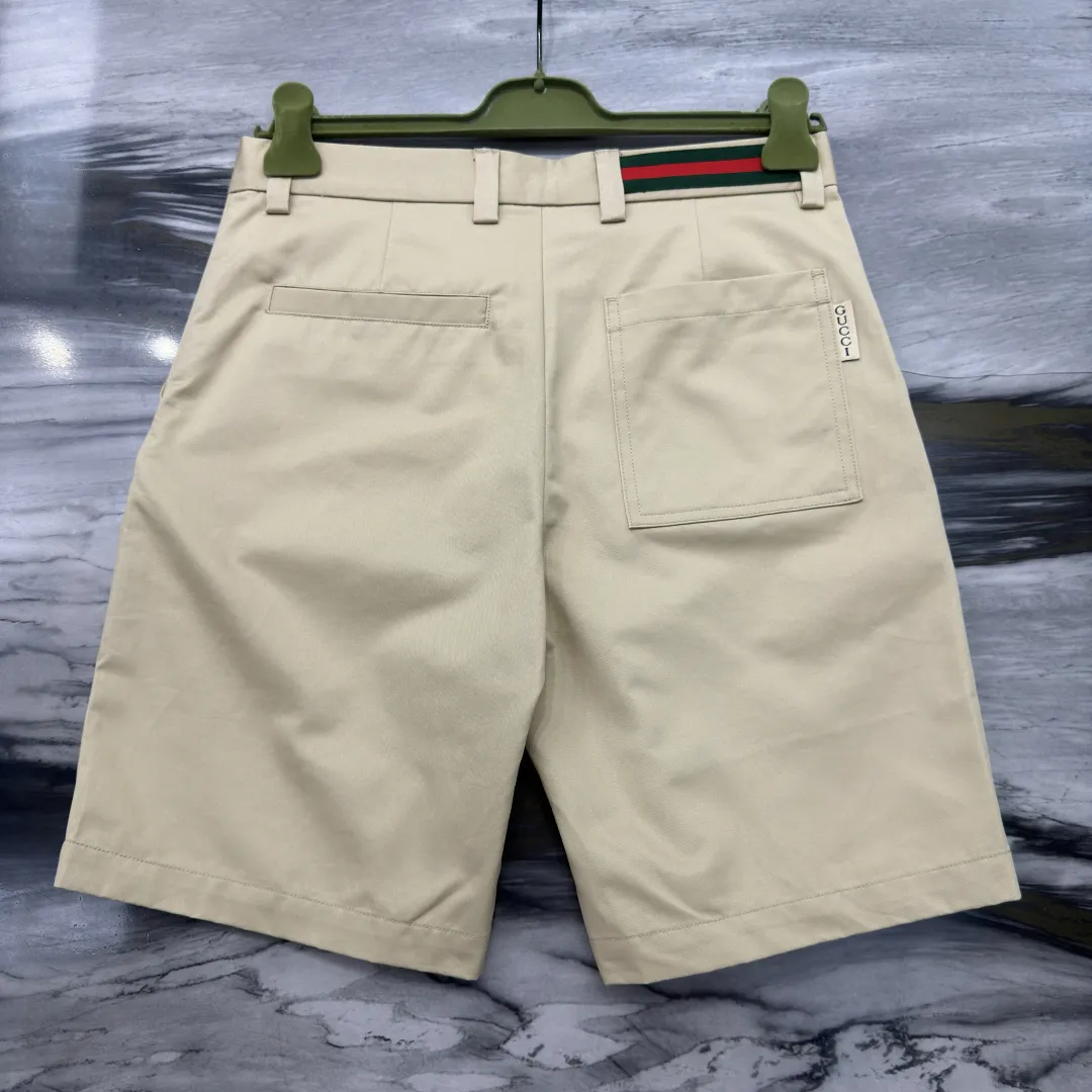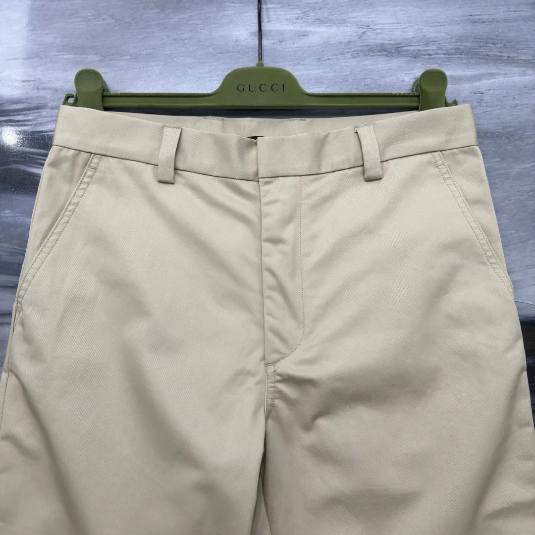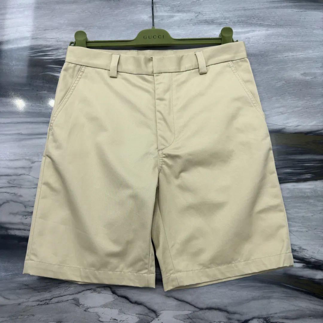 Мужские шорты Gucci выполнены из высококачественного хлопка. Классический прямой крой обеспечивает комфортную посадку и универсальность модели. Шорты имеют шлевки для ремня, два боковых кармана и застежку на молнию с пуговицей.