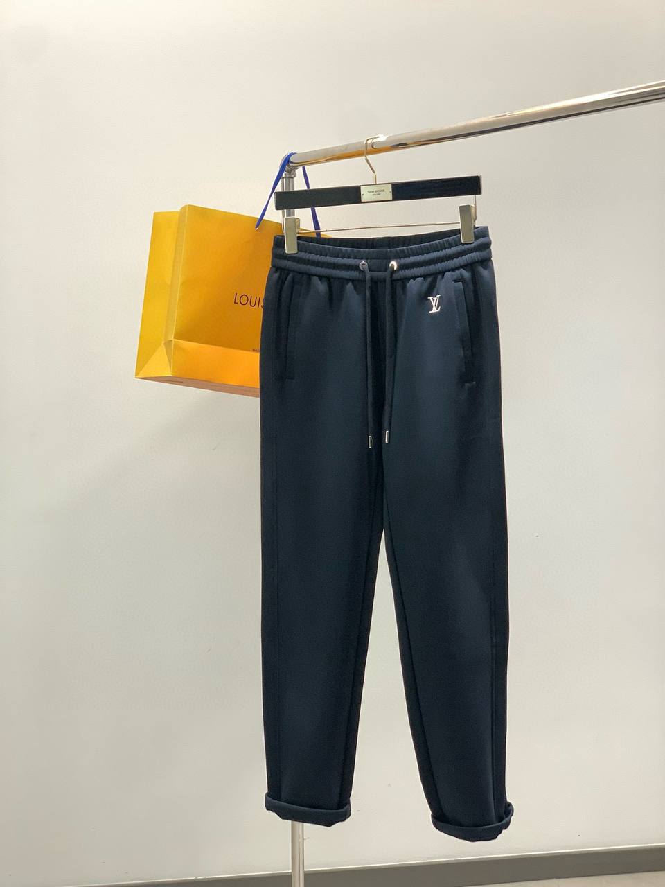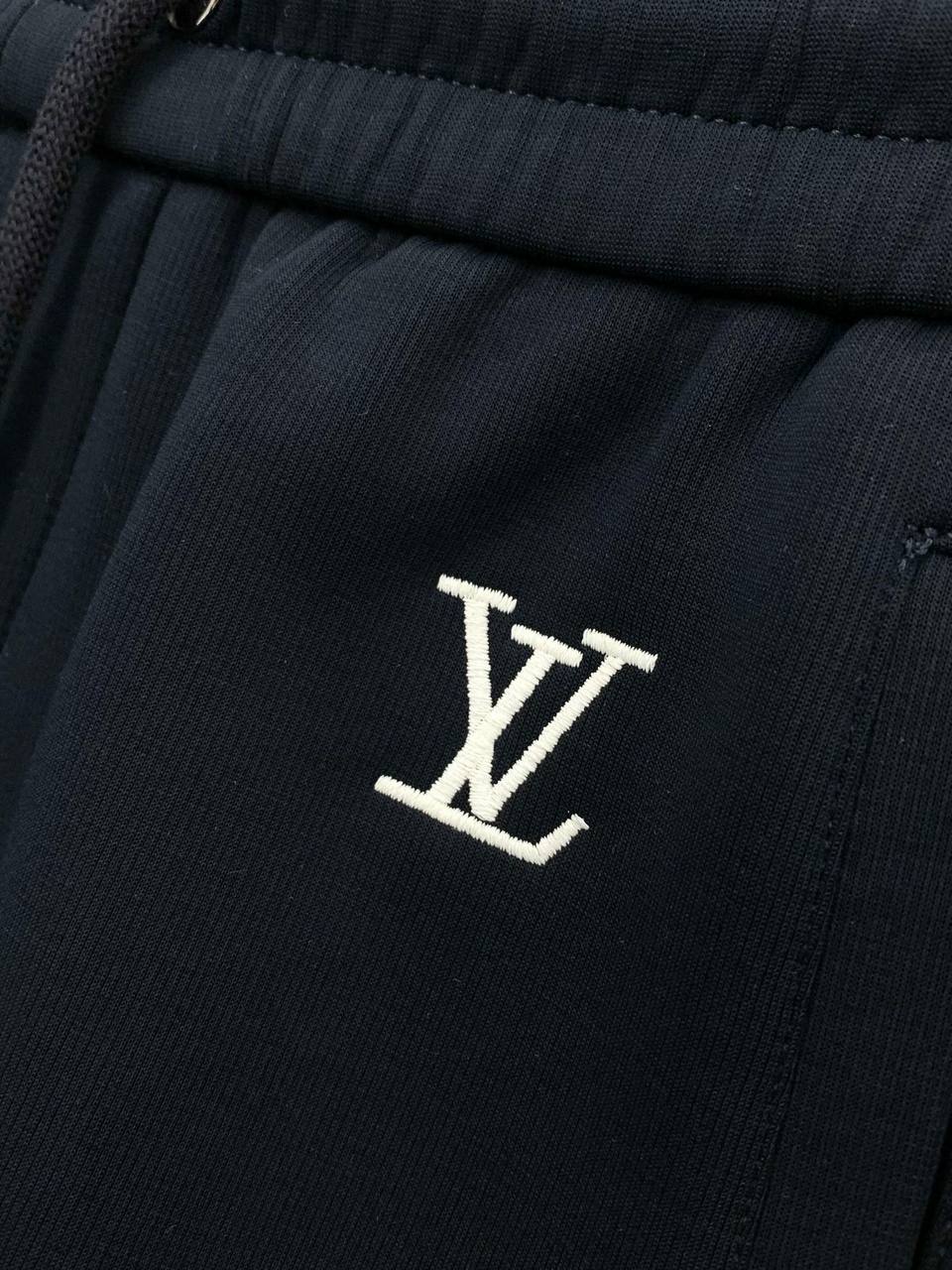 Брюки-джоггеры разработаны для тех, кто ценит комфорт без компромиссов по стилю. Выполненные в глубокo‑тёмном оттенке, они легко комбинируются с кэжуал и более формальными образами. Эластичный пояс с регулируемым шнурком обеспечивает комфортную посадку, а классические карманы по бокам и вытачные швы подчёркивают аккуратный силуэт. Низ брюк оформлен с лёгким подворотом, создающим современный и продуманный вид. Минималистичная белая монограмма LV слева на бедре служит ненавязчивой деталью бренда.