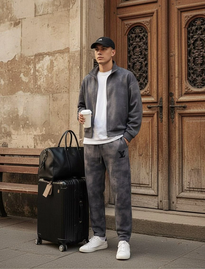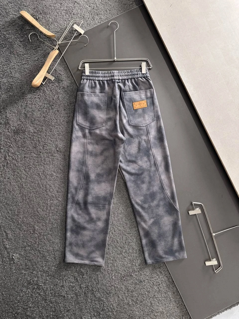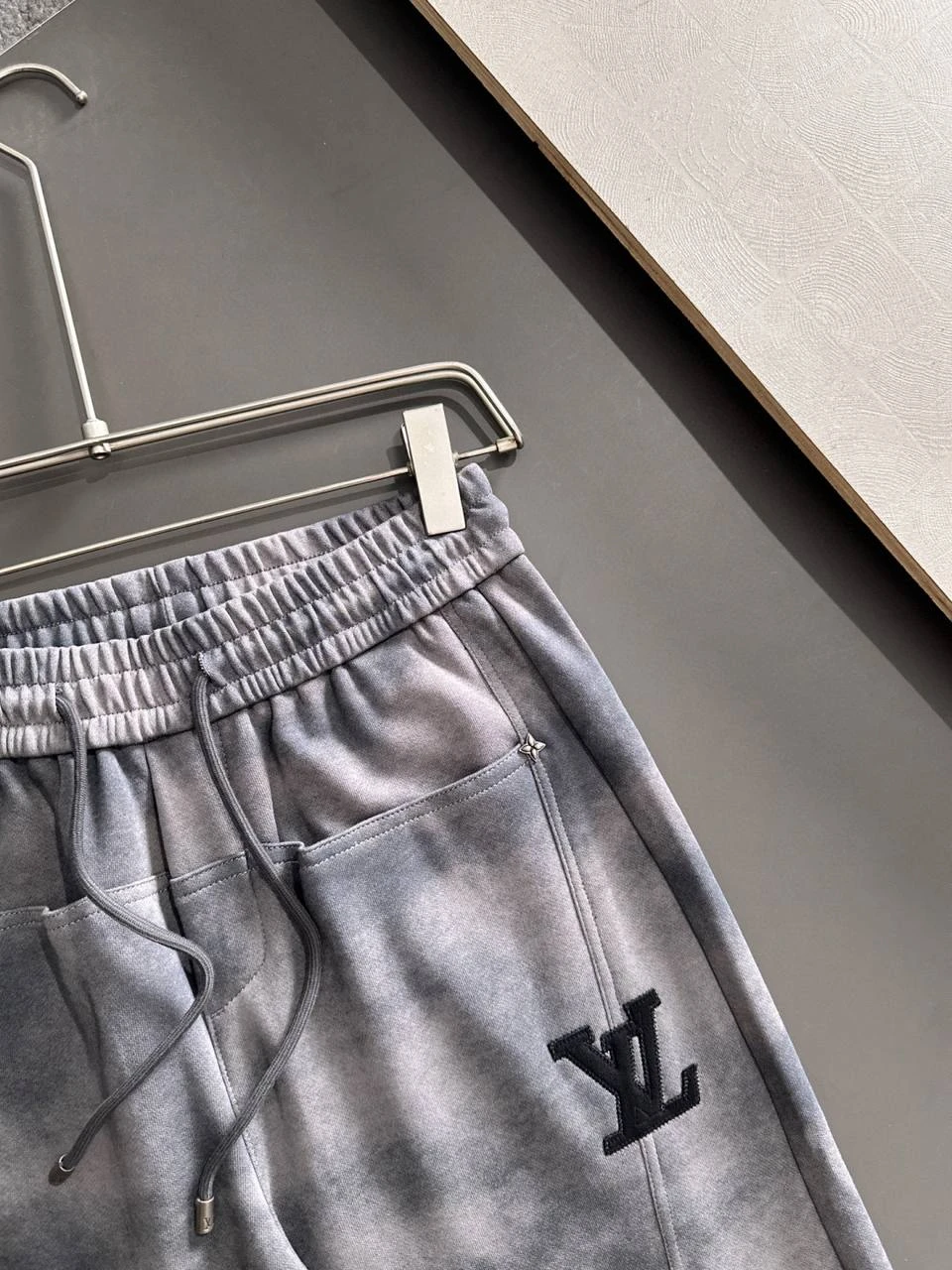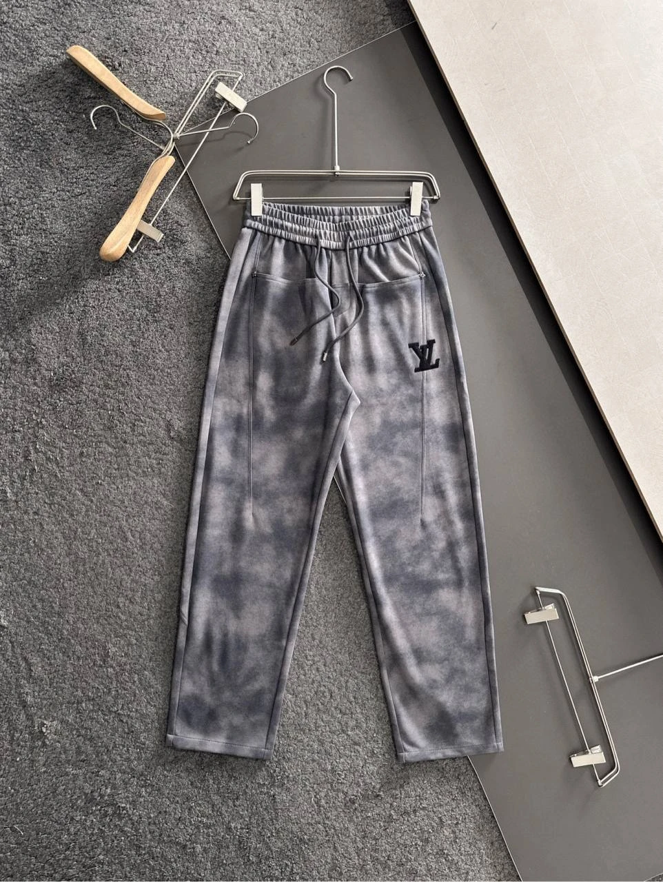 Стильные мужские брюки-джоггеры с мягкой бархатистой фактурой и эффектным дымчатым принтом. Удобная посадка, эластичный пояс со шнурком и аккуратная вышивка логотипа LV на бедре — идеальный выбор для городского гардероба и расслабленного отдыха.