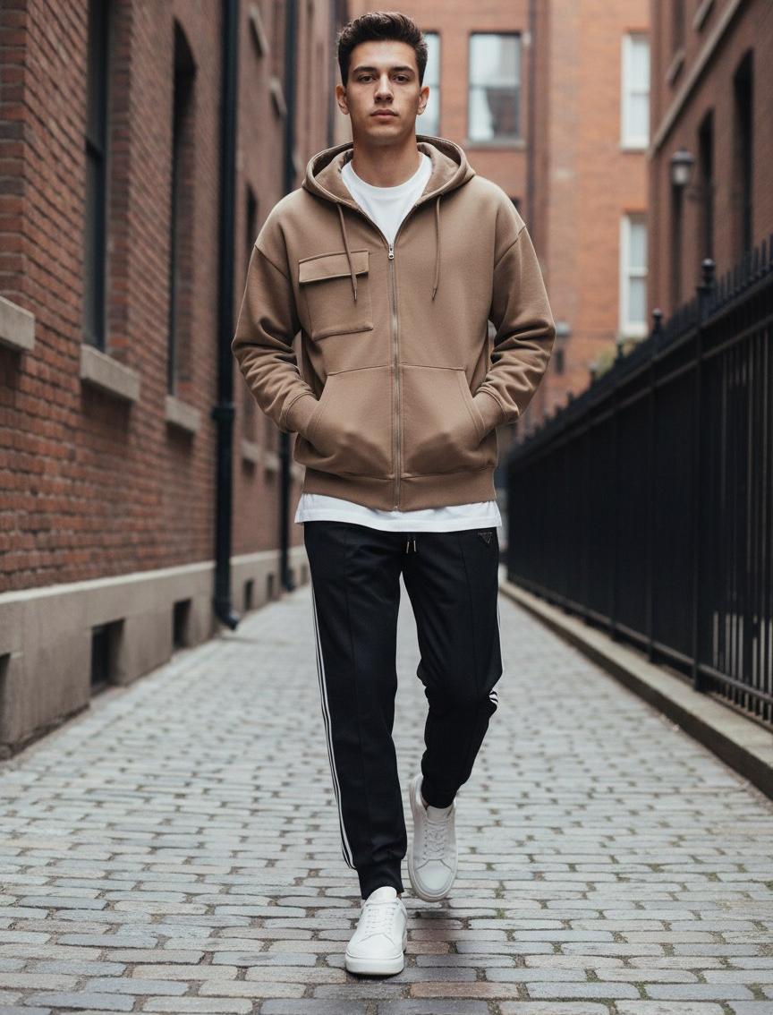 Современные мужские брюки PRADA в спортивном стиле — минималистичный дизайн, аккуратная посадка и фирменный треугольный логотип на бедре. Универсальная модель для повседневной носки и городского гардероба — легко сочетается с футболками, свитшотами и кроссовками.